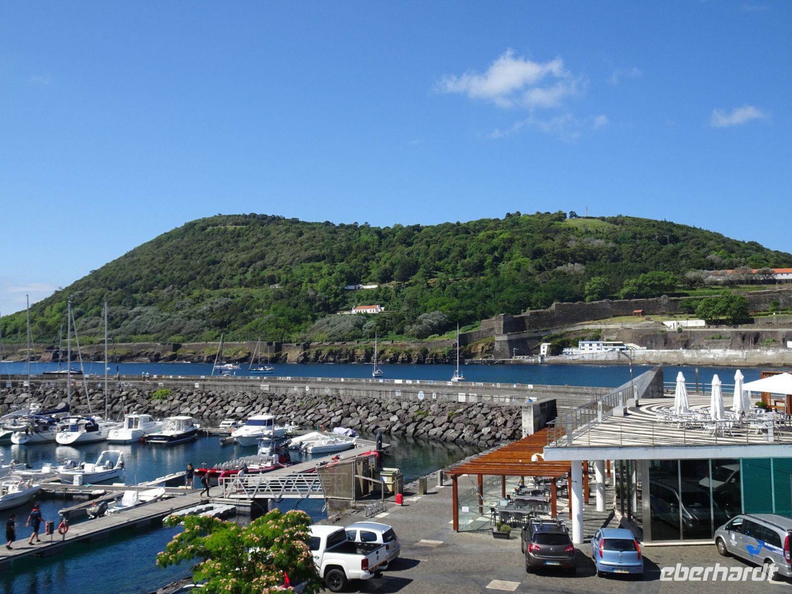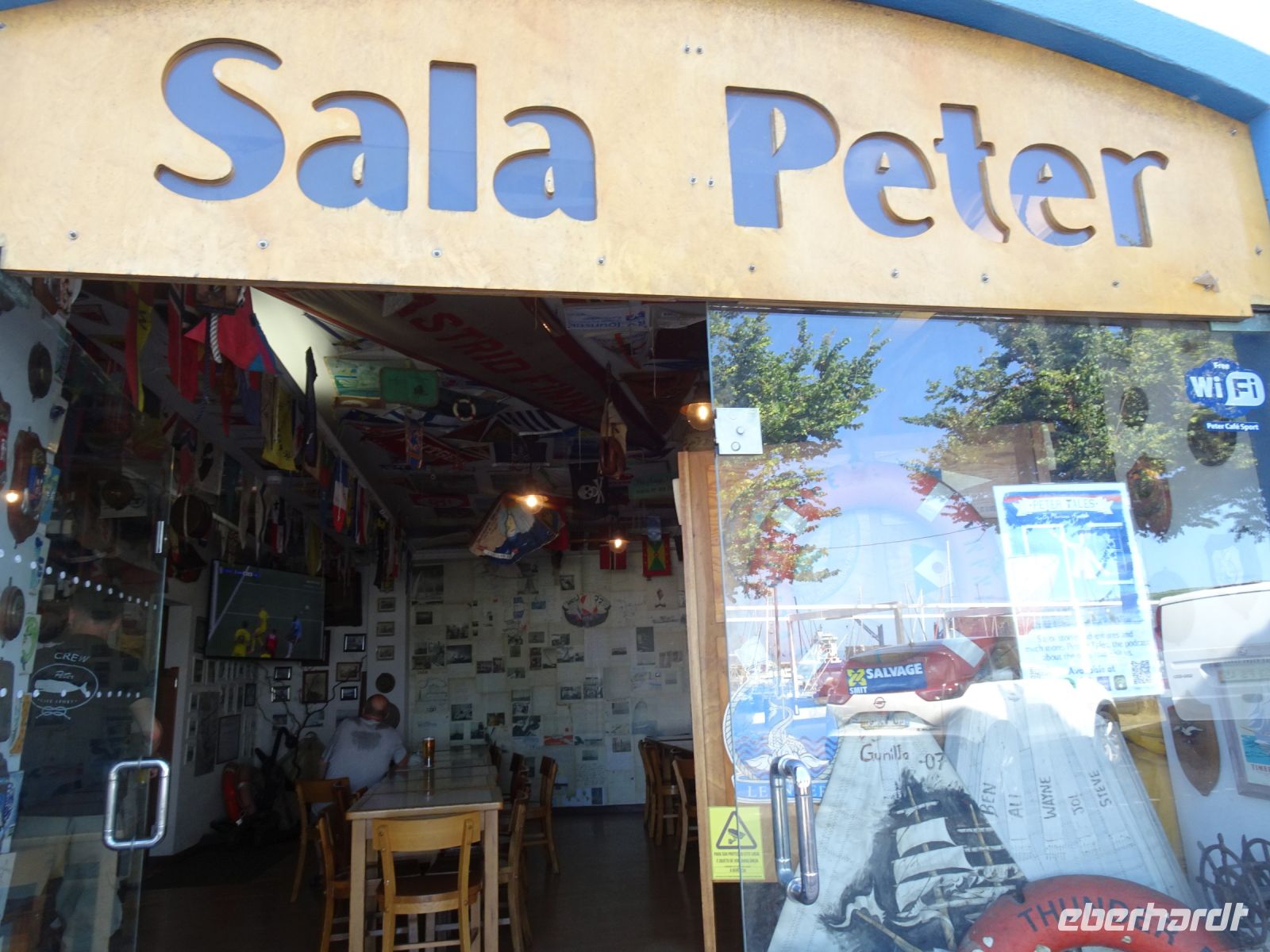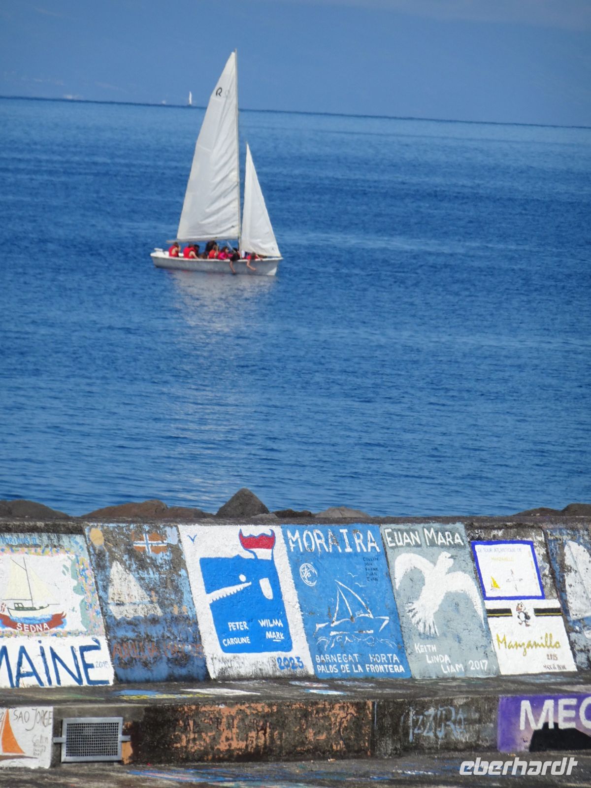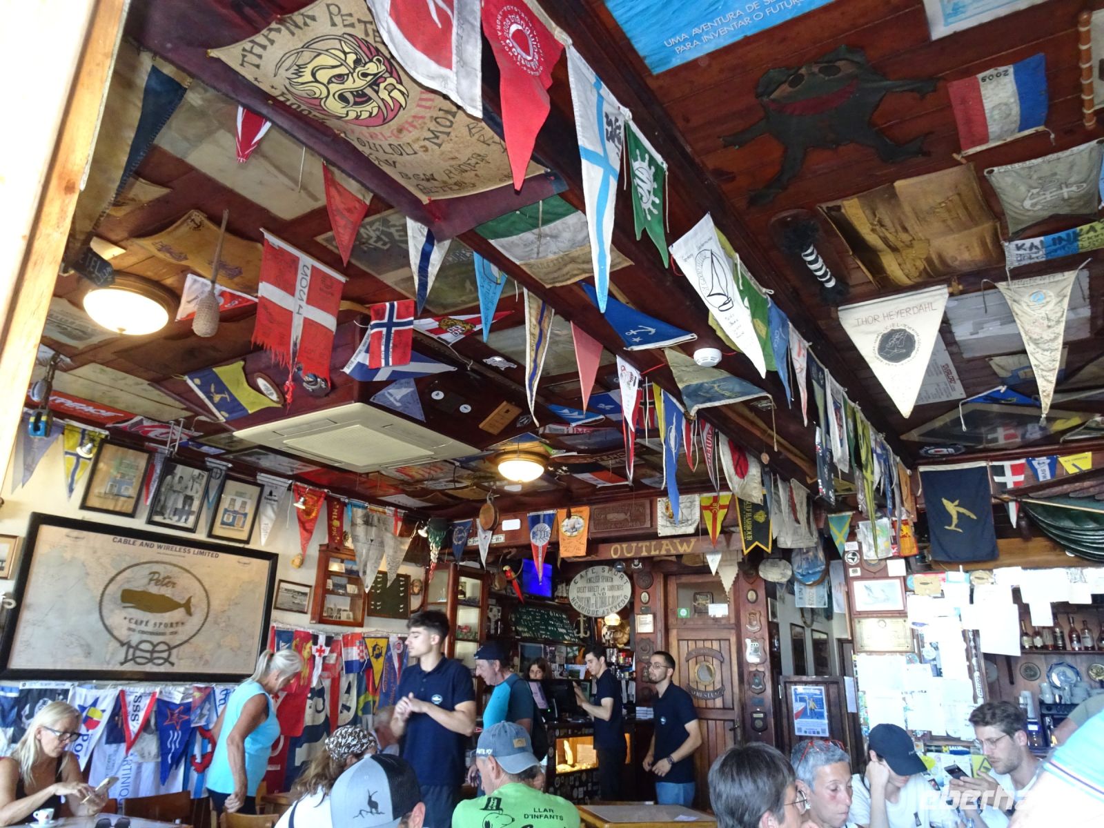 Bekannt ist der Yachthafen durch seine an den Kaimauern angebrachten Wandmalereien der Transatlantiksegler, die sich hier seit den1950er Jahren verewigen. Dazu passen natürlich auch die im Hafen liegenden Segelschiffe und Yachten, manche wohl ein Vermögen wert. Aber so vielfältig können Lebensziele sein. Wer die Menschen hinter den Segelabenteuern erleben möchte, der sollte aufmerksam durch die Kneipen und Geschäfte in Hafennähe gehen. Einen legendären Ruf genießt hierbei Peter Café Sport. Der Spitzname wurde im Zweiten Weltkrieg durch einen englischen Kapitän erteilt, weil dieser den Namen José nicht aussprechen konnte. Wir konnten die Atmosphäre am kommenden Abend genießen, aber ohne rechtzeitige Vorbestellung ist da kein Reinkommen.
