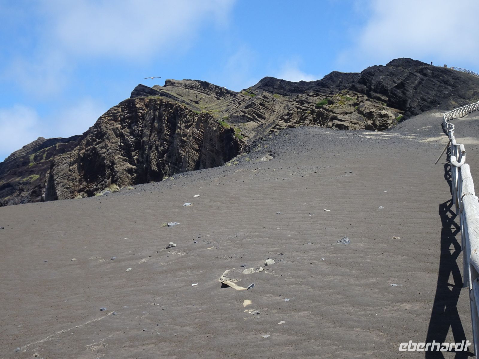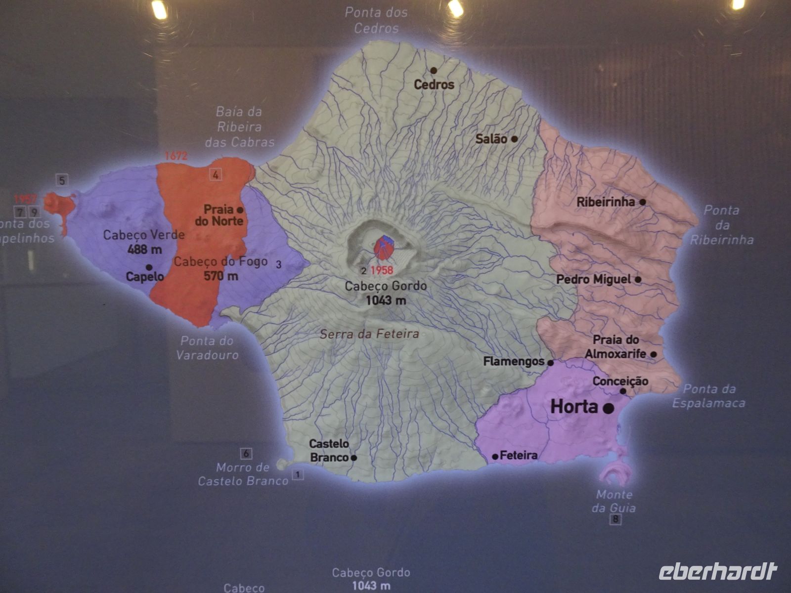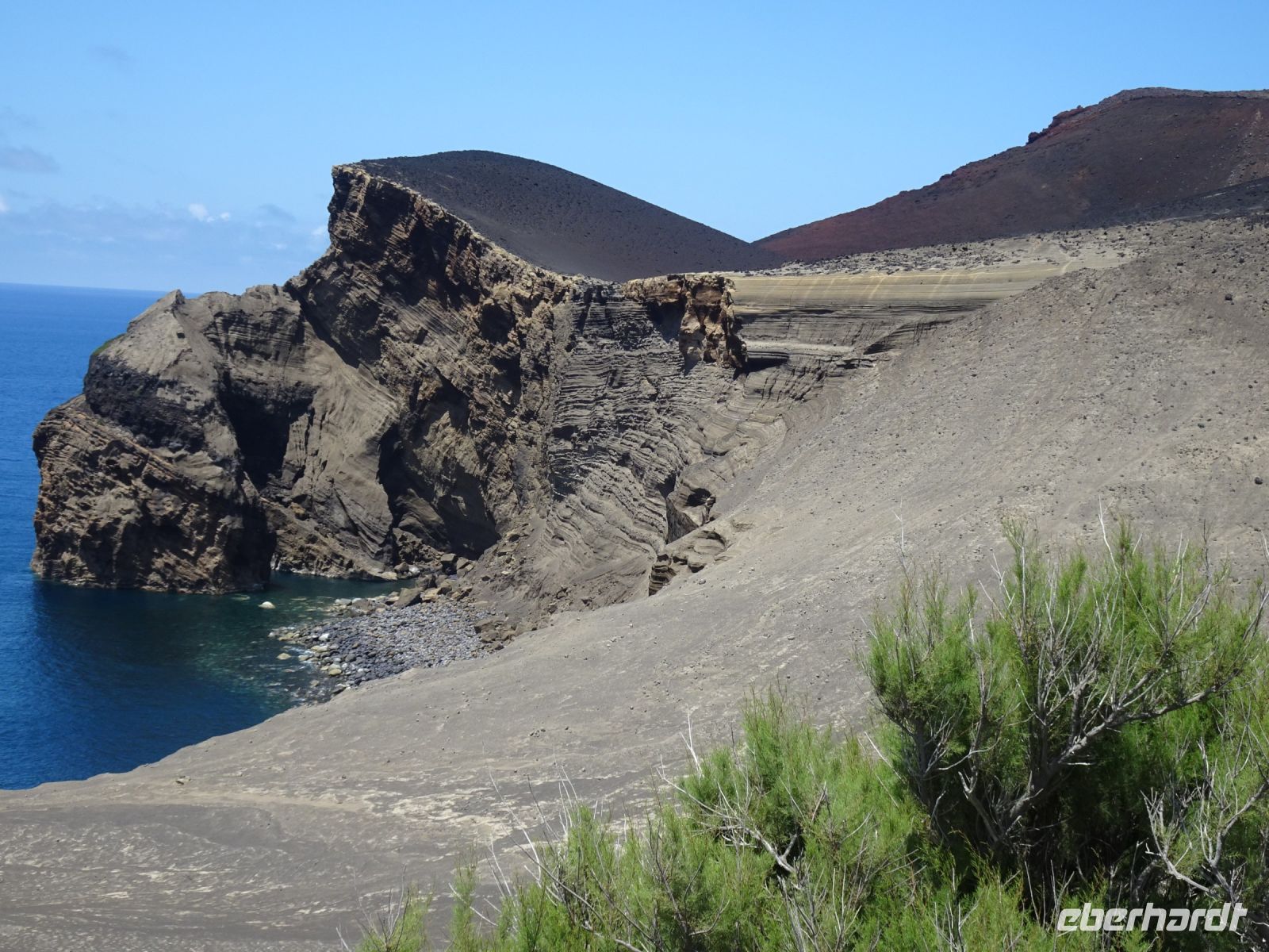 Höhepunkt des Tages war der Besuch am westlichsten Rand der Insel, dem Vulcão dos Caphelinhos, der erst durch einen untermeerischen Vulkanausbruch im Zeitraum September 1957 bis Oktober 1958 entstand und nun durch Erosion wieder abgetragen wird. 500 Häuser wurden zerstört, durch Erosion des weichen Tuffgesteins ist diese "Erweiterung" mittlerweile auf ein Drittel abgetragen. Ganz konkret das ehemalige Gebäude des Leuchtturmes und historische Fotos zeigen die Geschehnisse in beeindruckender Weise.