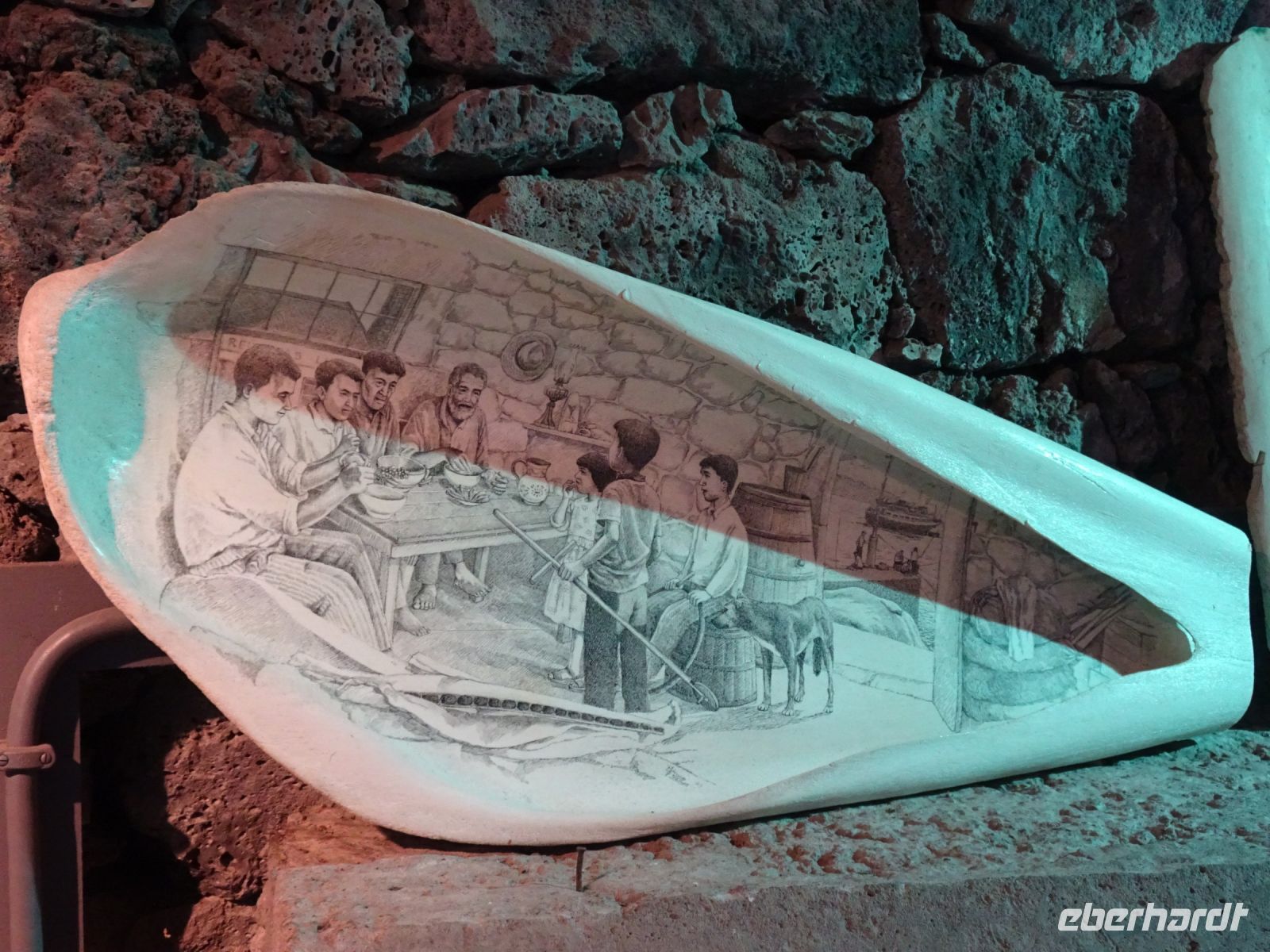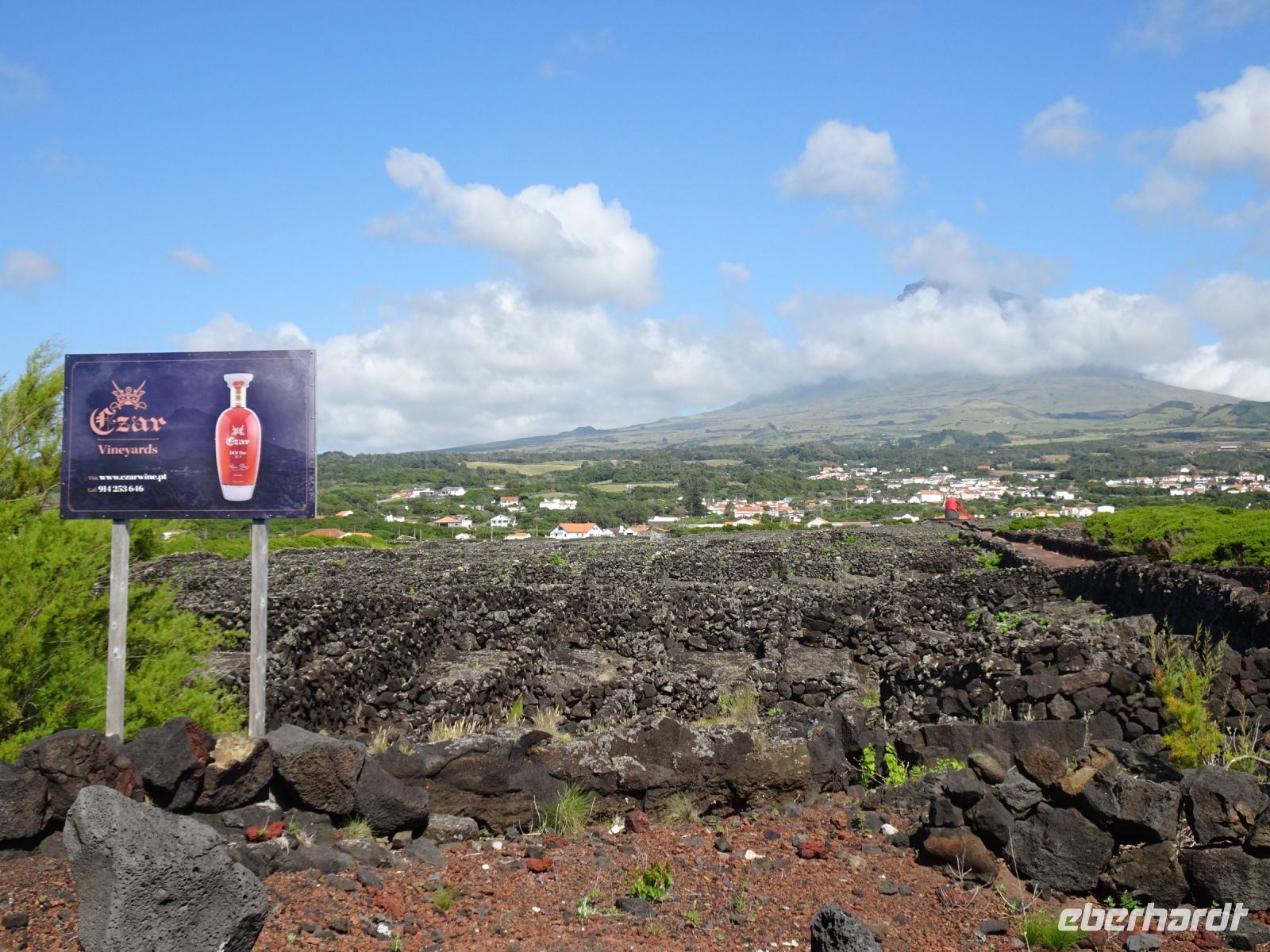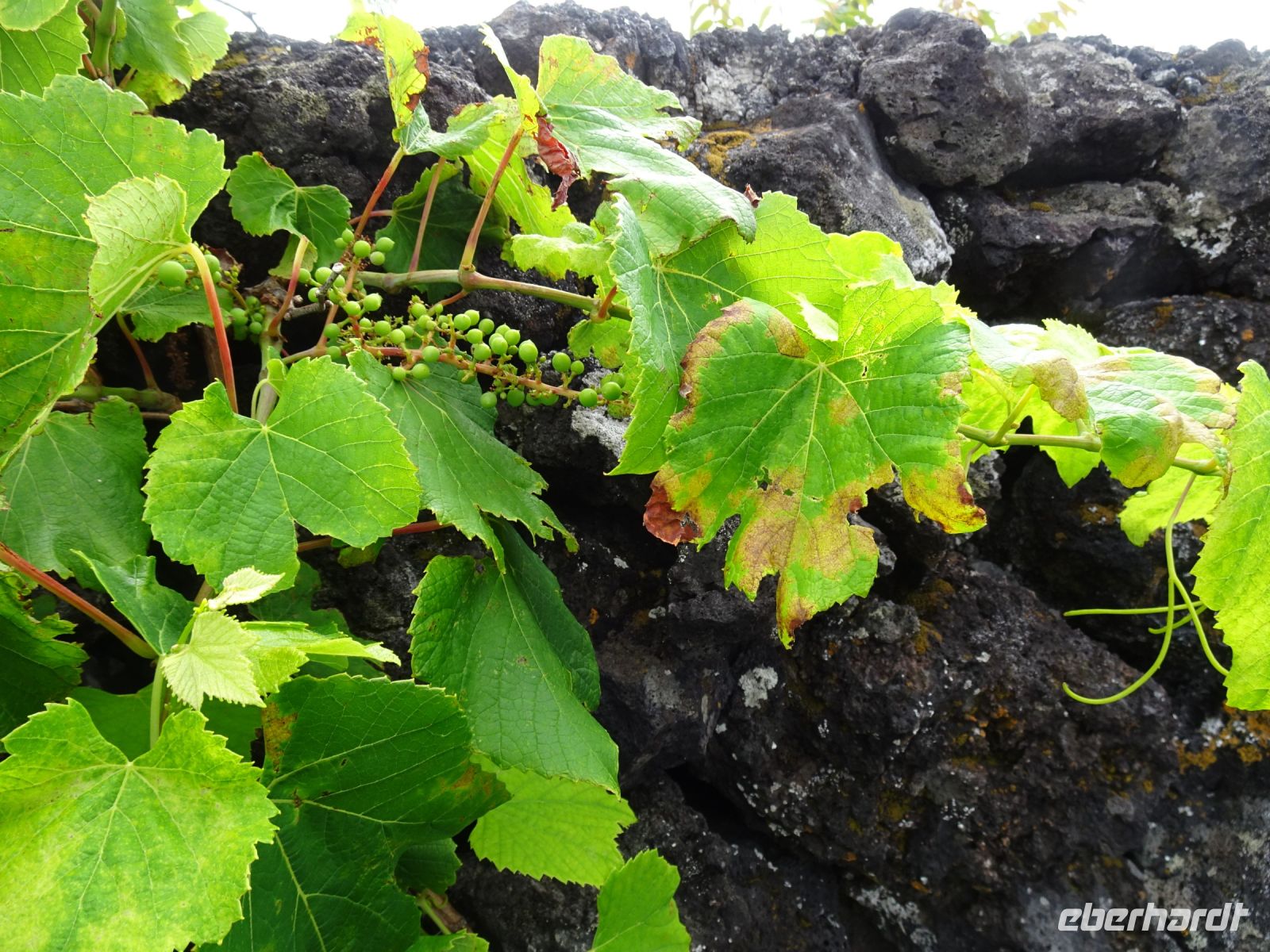 Das Ergussgestein und die Verwitterung ließen eigenartige Gebilde entstehen. Wir besuchten an einem Küstenabschnitt das Hündchen - Caccharro - und die benachbarten Orte Santa Luzia und Sao Roque. Erstaunt nahmen wir zur Kenntnis, das hier und insgesamt auf Pico der Weinanbau eine bedeutende Rolle spielt und der UNESCO auch ein Welterbetitel wert war. Die vier bis fünf Weinpflanzen werden dabei in Carrees mit durch Lavagestein abgegrenzten Mauern angebaut. Das als Mauern aufgeschichtete Lavagestein schützt vor Wind und Meeresgischt und speichert darüber hinaus auch die Wärme. Eigenwillig für Kenner des deutschen Weinanbaus in Steillagen, funktioniert aber und sorgt für eine ausgezeichnete Qualität. Dementsprechend gibt es auch Gebäude für die Weinerzeugung und ein Weinbaumuseum in dieser Zona de Adegas (Winzerhäuser).. Charakteristisch ist beim Anbau die Verdelho-Traube, die hier gekeltert wird und Bestandteil des UNESCO Welterbetitels ist. Deren Wein konnten wir später auch kosten. Typisch auch die zweirädrigen Transportkarren, deren Stahlreifen auf den Rädern im Gestein deutliche Spuren hinterließen.