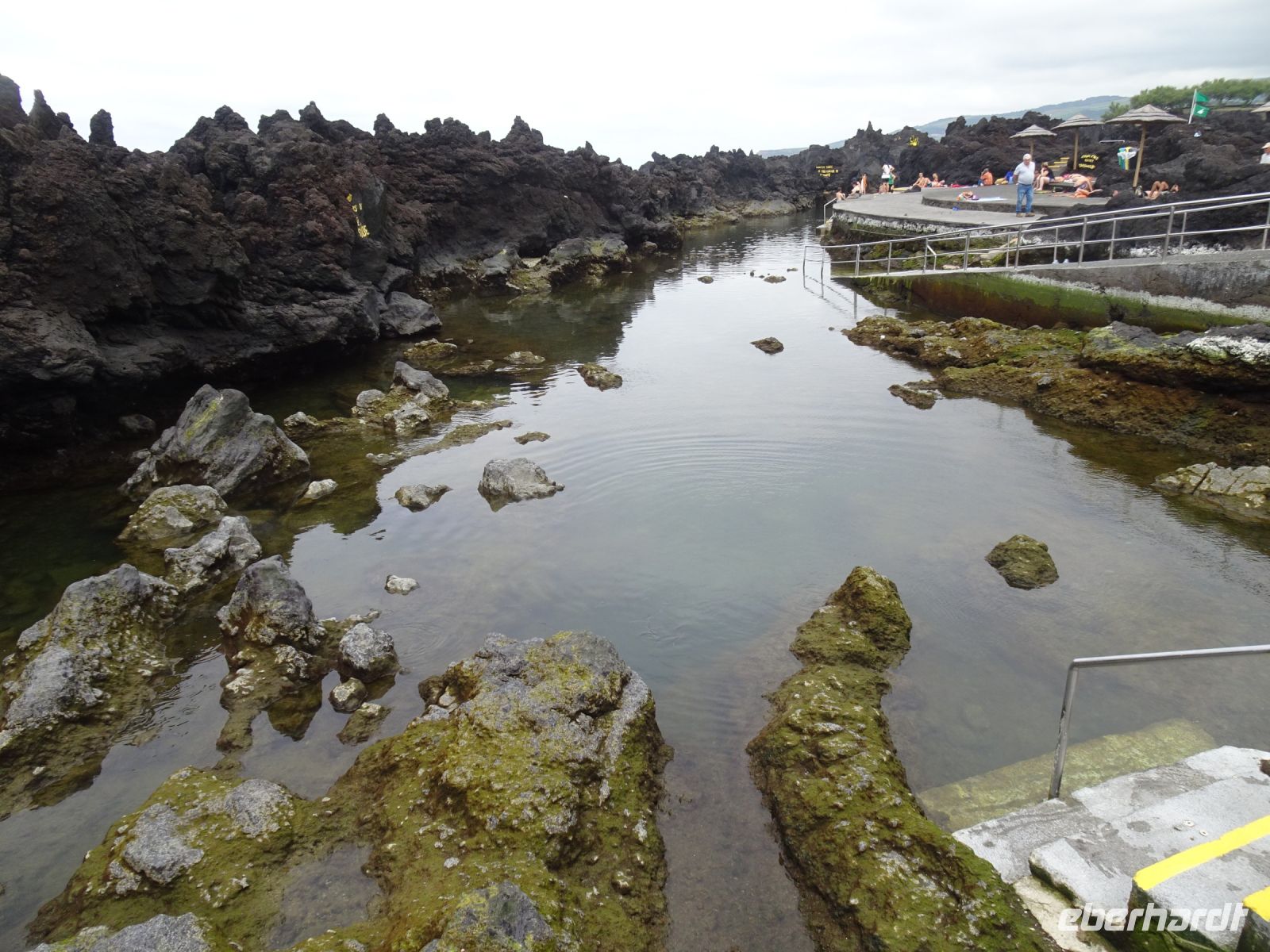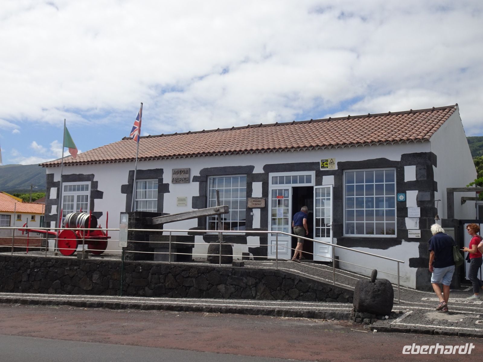 Unsere Erkundung der Insel ging weiter. Vorbei an einer Farm zur Stierzucht war unser nächsten Ziel der Küsten- und Weinanbauort Biscoitos. Um nicht nur den mühsamen Weinanbau kennenzulernen, besuchten wir eine extra für uns geöffnete Adega ( Weinstube). Wir verkosteten zwei Weine, mit unserer aber durch die Verkostung auf Pico geschulten Kehle hielt sich die Begeisterung in Grenzen. Wir haben für die aufstrebende Cooperative trotzdem einen Beitrag zu deren weiterer Entwicklung geleistet. Unser anschließender Besuch in einer Meeresbadestelle mit Bewachung unterstrich einmal mehr, dass durch die vulkanische Tätigkeit Badestrände oft nur mit Badeschuhen besucht werden sollten. Tolle Fotomotive ergaben sich allemal.