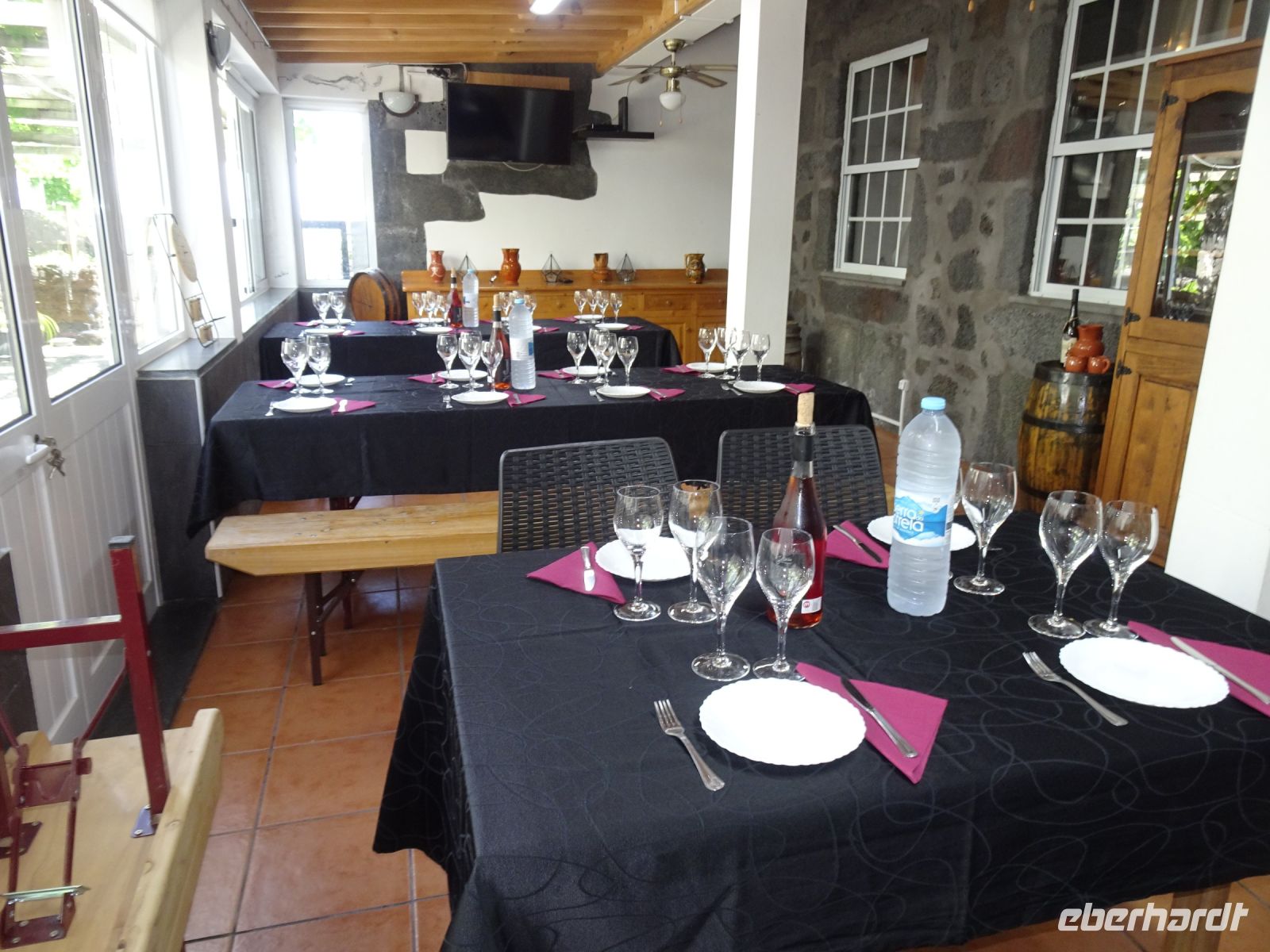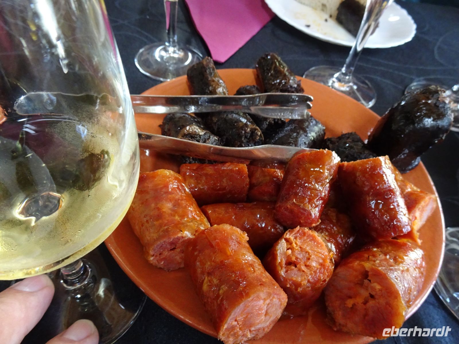 Doch vorher gab es als das für Eberhardt-Reisende bekannte WOW einen Mittagssnack in einer ortstypischen Adega " A Buraca".(Weinstube). Die nun schon bekannten Würste durften nicht fehlen und zwei eigene Weinsorten sowie eine Likörprobe und Kaffee rundeten unseren Mittagssnack ab. Auch in diesem Familienbetrieb wurden historische Gerätschaften des Weinanbaus und des Dorflebens ausgestellt. Ein guter Einblick in das frühere Leben und die Orientierung auf touristische Nutzung heute.