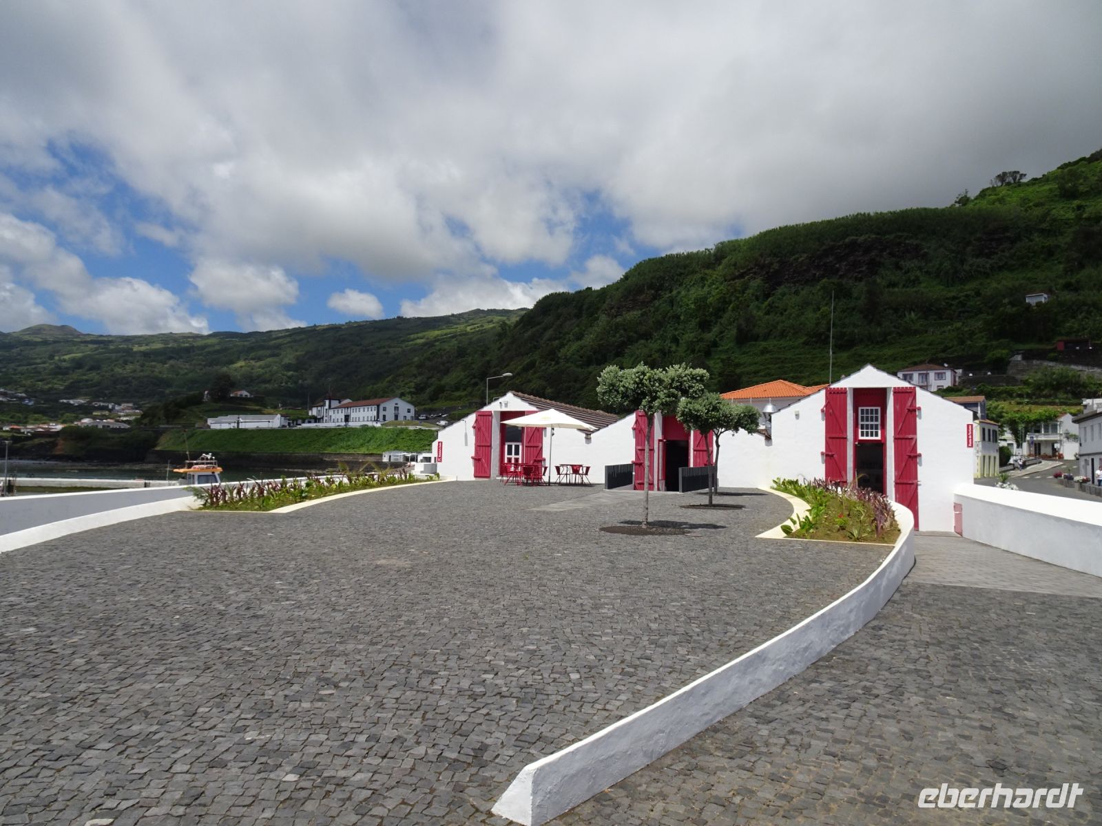 Auf den noch immer sehr gläubigen Azoren-Inseln ist der Sonntag ein kirchlicher Höhepunkt der Woche. Bei unserem Reisetermin wurde aber darüber hinaus noch das Johannisfest zur Würdigung des Kirchenheiligen Johannes dem Täufer gefeiert. Bereits in unserem ersten Besuchsort Vila Franco do Campo erwarteten uns festlich geschmückte Straßen und Plätze. Ein kleiner Ortsrundgang gab uns einen ersten Einblick in diese frühere Hauptstadt der Insel. Nach einem Erdbeben im Jahr 1522 ging die Hauptstadtfunktion 1546 an Ponta Delgada über. Und natürlich prägte der kleine Hafen den Eindruck des Ortes.