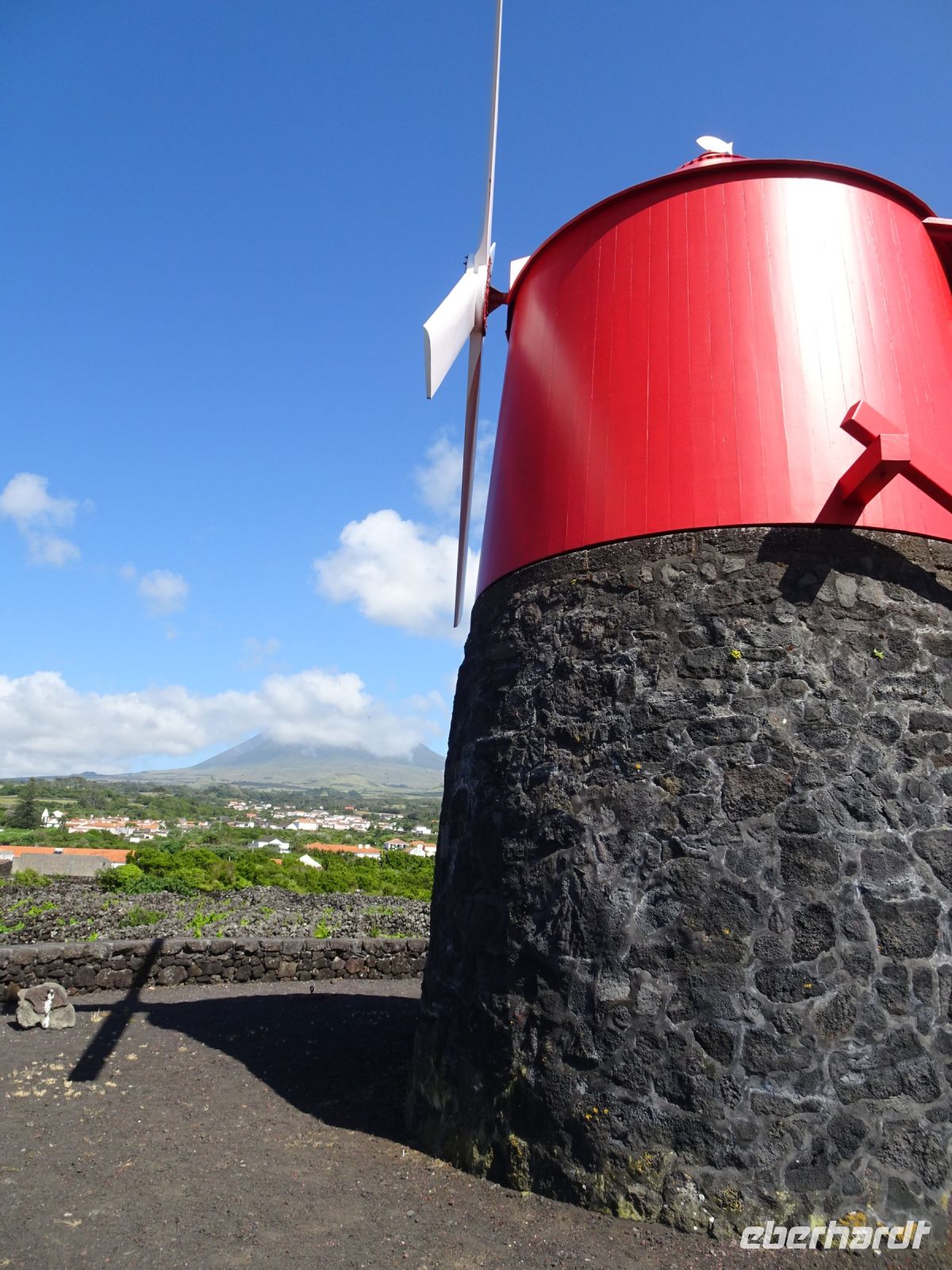 Anschließend dann noch ein gemütlicher Gang durch die charakteristischen Weinfelder. In guter Lage dann eine der auf den Inseln häufig anzutreffenden Windmühlen. Typisch, aber wohl eher für die Vermahlung eigener kleiner Erträge geeignet und nicht mit den sonst bekannten Ertragswindmühlen zu vergleichen.