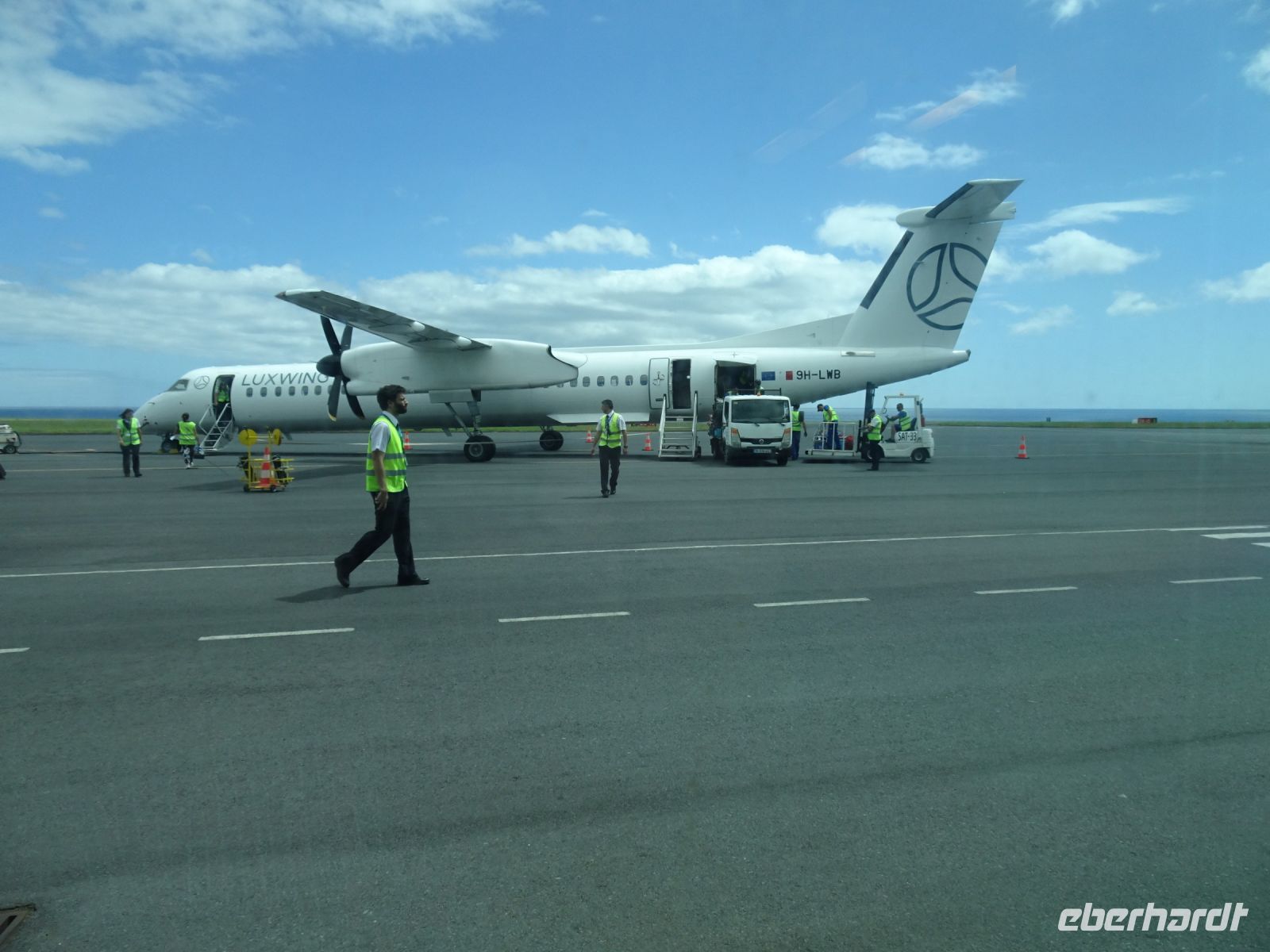 Am Nachmittag verlief unser kurzer Flug vom überschaubaren Flughafen Horta nach Terceira eher unspektakulär mit einer Propellermaschine. Ein letzter Blick zum nur leicht verhüllten Berg Pico, vorbei an der nächsten Azoreninsel Saõ Jorge und schon landeten wir in Terceira.