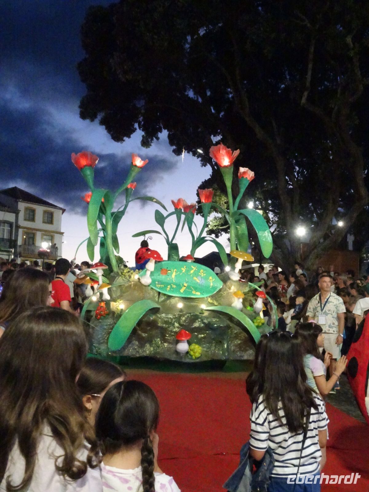 Und tatsächlich war ein buntes Treiben mit Verkaufs- und Gastronomieständen in der unserem Hotel benachbarten Altstadt zu erleben. Selbstredend beginnen die Feiernden erst spät am Nachmittag, dafür aber bis spät in die Nacht. Selbst ein Kinder-Umzug auf extra ausgelegtem roten Teppich konnte verfolgt werden. Und natürlich gab es sehr gut besuchte Gottesdienste. So konnten wir an beiden Wochenendtagen Lebensfreude ala Azoren pur erleben.