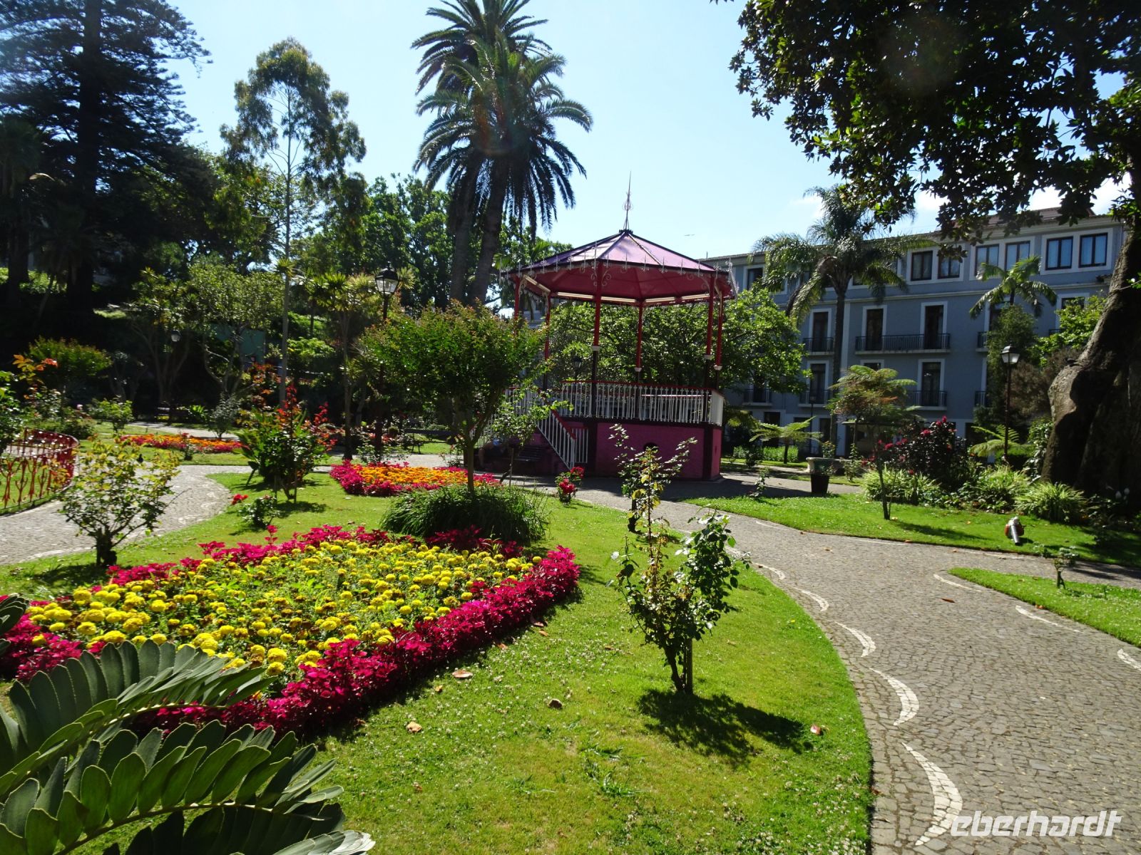 Am späten Nachmittag bot unser Reisebegleiter Hartwig dann noch einen Gang durch den Botanischen Garten von Ponta Delgada (gegründet wohl 1840 durch den heutigen Namensgeber José do Canto) an. Beeindruckend vor allem der mächtige aber offensichtlich kranke Gummibaum, gepflanzt wohl 1845.. Vielfältige Bäume, Sträucher und einige Grotten ließen uns staunen, bevor es zurück in unser Hotel ging.
