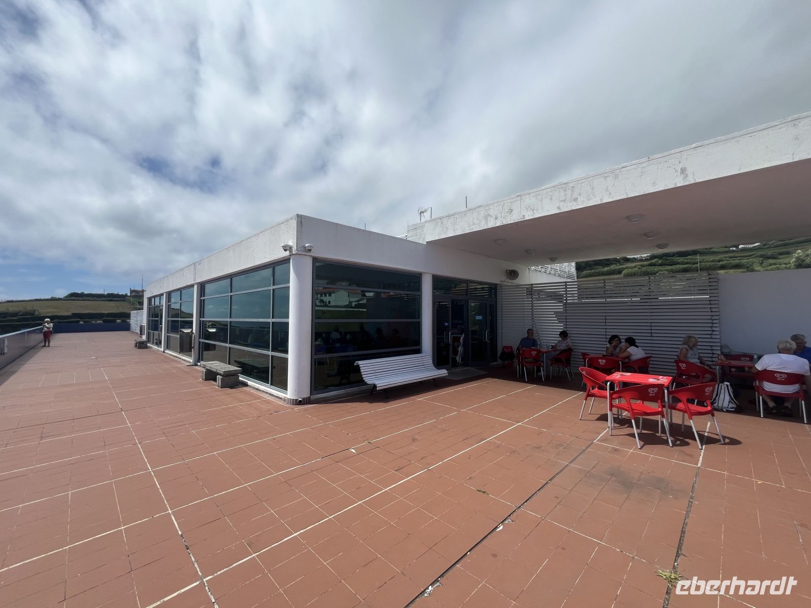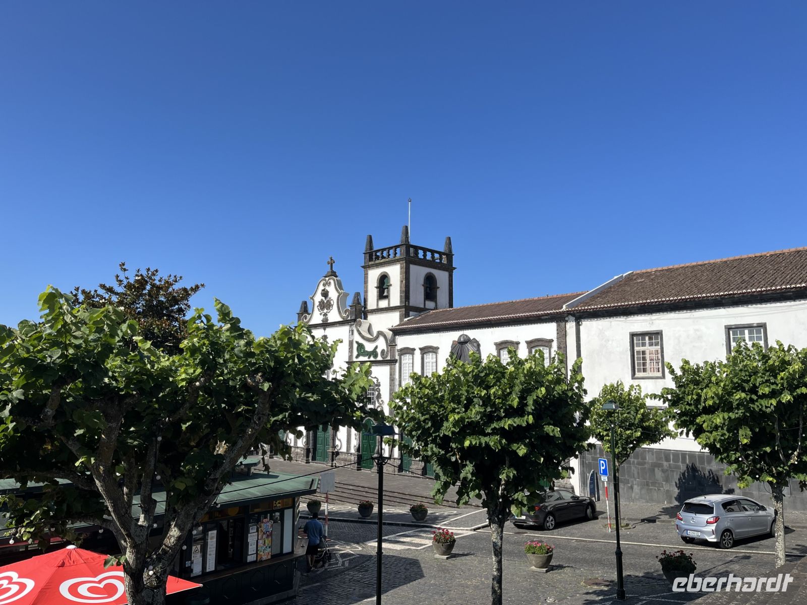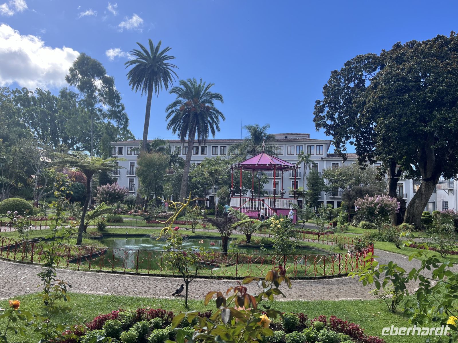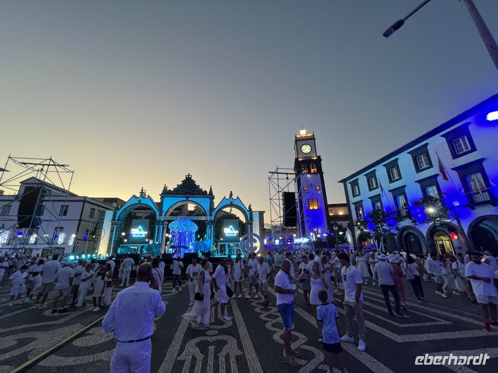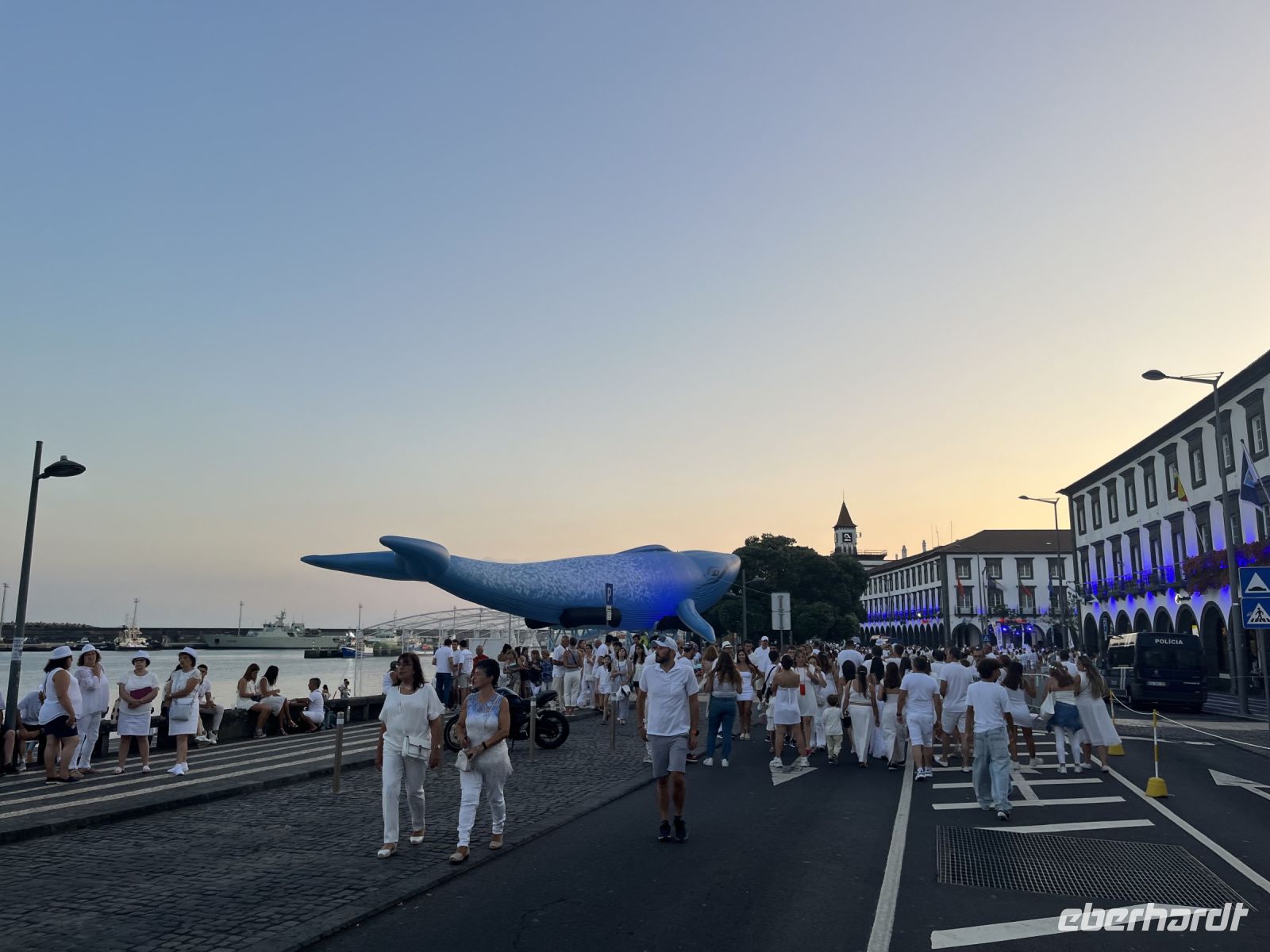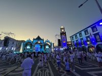 Sehr früh am Morgen treffe ich mich mit einem Teil der Gruppe am Flughafen BER in Berlin. Nach dem Check-in geht es pünktlich los in Richtung Lissabon. Dort treffen wir auf die anderen Gäste, die aus ganz Deutschland angereist sind. Gemeinsam fliegen wir weiter nach Ponta Delgada auf den Azoren. Am Flughafen dann der erste Schock, ein Koffer und ein Rucksack kommen nicht an. Nach langem Warten bleibt uns nichts anderes übrig, als zum Lost and Found Schalter zu gehen und das verlorene Gepäck zu melden. Der nette Mitarbeiter der TAP teilt uns mit, er können nicht sagen wie lange das Gepäck brauchen könnte, aber er würde uns informieren, sobald es Neuigkeiten gibt. Dennoch lassen wir uns davon nicht den ersten Tag verderben und treffen am Flughafen auf unsere Reiseleiterin Serafina, die uns die nächsten Tage über die Insel Sao Miguel führen wird. Gemeinsam fahren wir zum Hotel, das direkt am Atlantik liegt. Da leider noch nicht alle Zimmer bezugsfertig sind, erkunden wir erstmal individuell die Stadt. Heute findet in Ponta Delgada, der Hauptstadt der Azoren, ein großes Fest statt, bei dem alle ganz in weiß gekleidet herumlaufen. Wir sehen schon die ersten Vorbereitungen und die ganze Stadt ist in den Farben blau und weiß geschmückt. Spät am Abend beginnt das das Fest mit viel Musik, Essen und Getränken. Eine wirklich eindrucksvolle Kulisse.