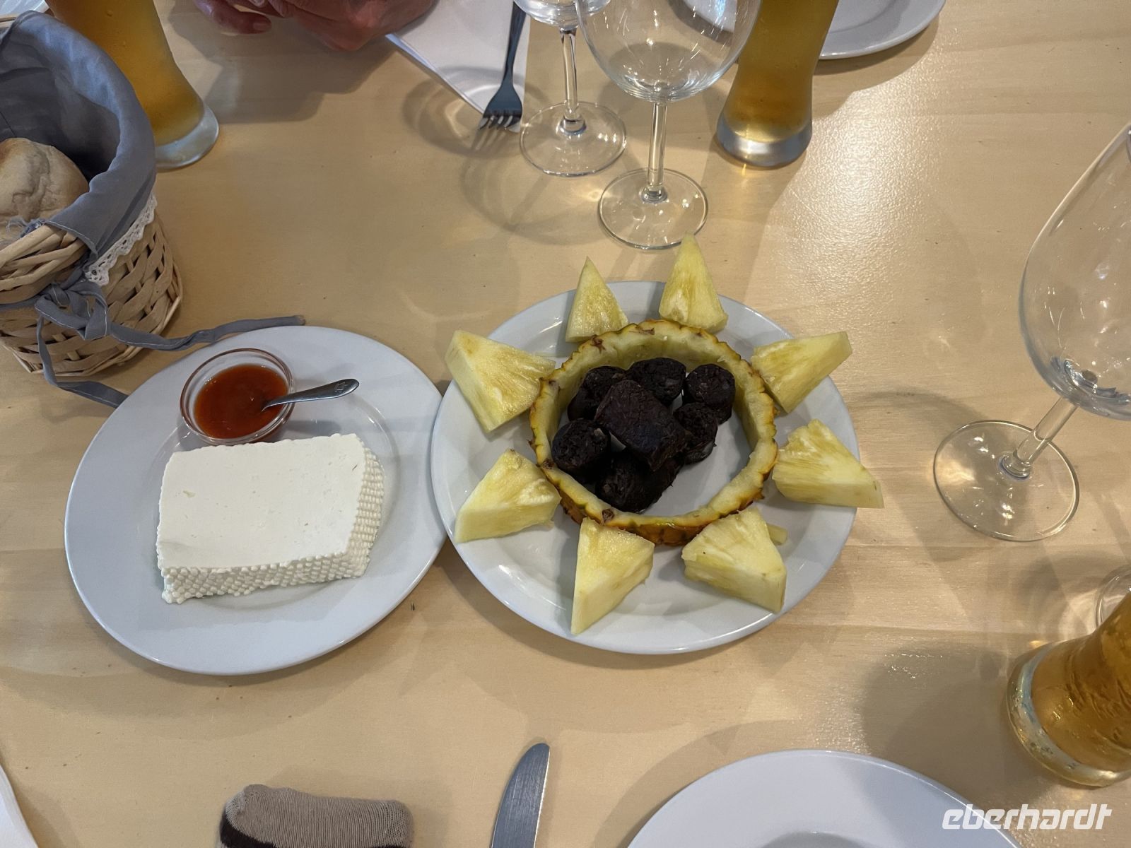 Unser zweiter Tag auf São Miguel beginnt mit einem Stopp am Fischerhafen von Lagoa. Wir sehen wie ein Fischer seinen Fang auslädt...leider ist es heute nur eine sehr kleine Ausbeute. Weiter geht es zur Keramikfabrik "Viera“. Ein Familienbetrieb, der bereits seit mehreren Generationen besteht und sich einen Namen im ganzen Land gemacht hat. Unsere Reiseleiterin erklärt uns allerhand Wissenswertes zur Geschichte und zur Herstellung von Keramik. Besonders beeindruckt uns die Tatsache, dass hier noch alles per Handarbeit gemacht wird. Egal ob Rohlinge formen, fertige Stücke brennen und bemalen - hier wird selbstgemacht. Nach einem kurzen Rundgang und Besichtigung der Töpferkunst, hat jeder noch die Möglichkeit ein kleines Souvenir zu erwerben. Danach fahren wir zu zwei Aussichtspunkten am Lagoa do Fogo (auch Feuersee genannt), einem Kratersee im Inneren der Caldera des Schichtvulkans Água de Pau, der 1563 nach einem Ausbruch des Pico da Sapateira entstand, den es seitdem nicht mehr gibt. Hier haben wir einen fantastischen Ausblick auf den tiefblauen See, ein tolles Fotomotiv. Für viele gilt dieser als schönster See der Azoren und sieht somit jährlich tausende von Besuchern an, so auch unsere Reisegruppe. Bei der üppigen Vegetation wird uns hier auch klar, warum São Miguel den Beinamen "grüne Insel" trägt. Unsere Route führt uns weiter in das schöne Städtchen Ribeira Grande im Norden der Insel, die zu den ältesten Ortschaften der Azoren gehört. Da wir alle schon ein bisschen Hunger haben, machen wir hier erstmal eine kleine Mittagspause. Danach erkunden wir die Innenstadt zu Fuß, vorbei am Rathaus, dem alten Gefängnis, der Kirche und dem Fluss Ribeira Grande. Zwischendurch stoppen wir noch an einem Spirituosengeschäft und machen eine Likörverkostung. Vollgepackt mit kleinen Fläschcen machen wir uns danach auf den Weg zurück zum Hotel. Heute haben wir unser Willkommensabendessen mit der gesamten Reisegruppe im "Momentos" Restaurant mit gutem Thunfisch und netten Gesprächen.