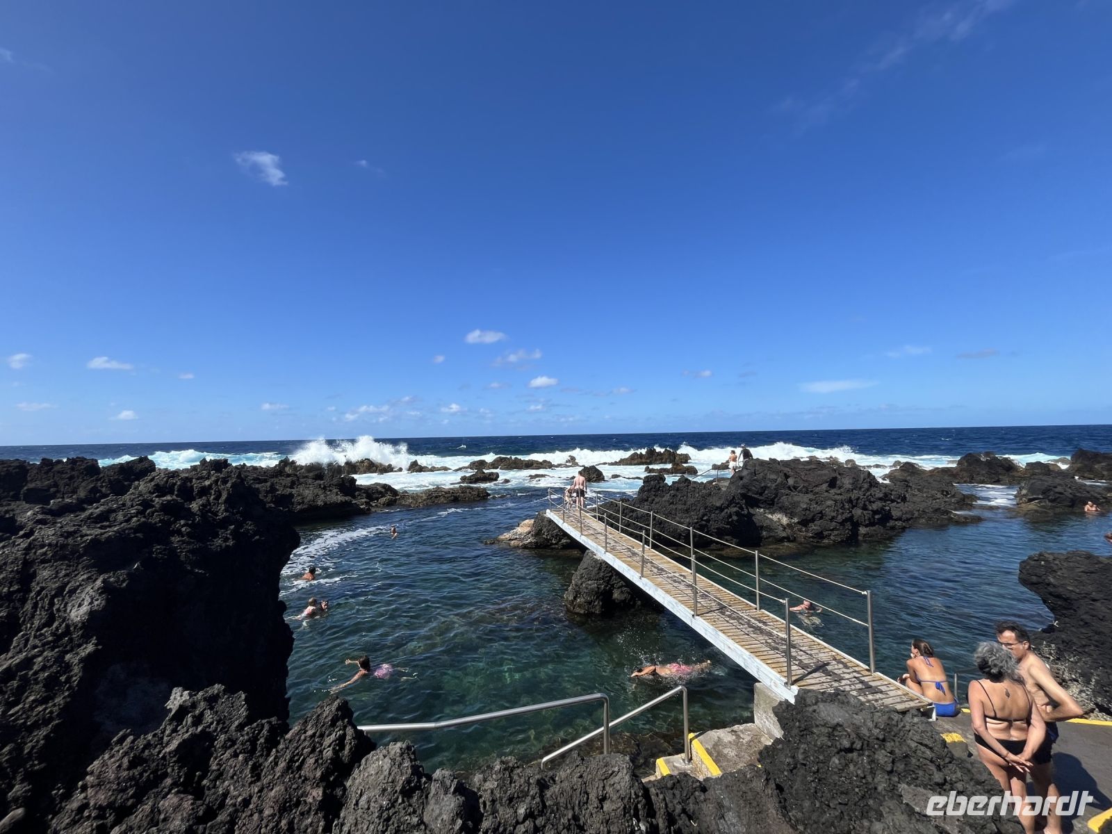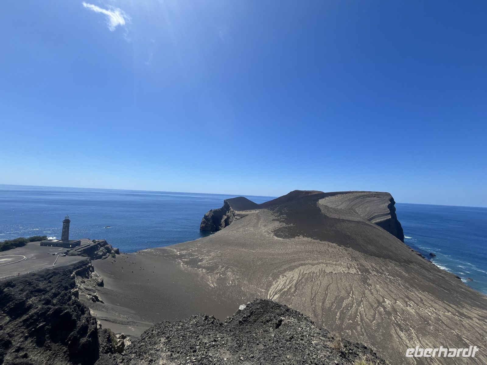 Heute lernen wir die "blaue Insel" bei einer ganztägigen Inselrundfahrt kennen. Anja holt uns vom Hotel ab und wir fahren zuerst auf eine Erhöhung im Norden von Horta. Hier haben wir einen tollen Blick auf die Stadt und können sogar die Inseln Sao Jorge und Terceira in der Ferne erkennen. Im Anschluss fahren wir zur Caldeira von Faial und werfen einen Blick in den 400 Meter tiefen Krater, der einen Durchmesser von über zwei Kilometern besitzt. Die Caldeira ist von Vulkankegeln umgeben (Cabeços dos Trinta, dos Verde, da Fonte, Fogo und do Canto), die sich nach Westen hin ausdehnen, während sich der markante Cabeço Gordo nach Süden hin erstreckt. Weiter geht die Fahrt in Richtung Westen und wir machen einen kleinen Stopp im Park "Reserva Florestal Natural do Parque do Capelo" in der Nähe der ortschaft Cruzeiro. Hier besichtigen wir ein traditionelles Haus aus Basalt im azorianischen Baustil. Danach fahren wir an die Südküste, vorbei am Örtchen Varadouro und machen unsere Mittagspause. Einige Gäste nutzen die Zeit, um in den tollen Meeresschwimmbecken zu baden, andere genießen ein Kaltgetränk bei traumhafter Landschaft. Gestärkt fahren wir weiter zur Westspitze der Insel, zum Capelinhos-Vulkan. Die Landschaft hier, die durch den Vulkanausbruch im Jahr 1957 entstanden ist, erinnert an eine Reise zum Mond. Im Gegensatz zu dem sonst so grünen Teil der Azoren, welchen wir bereits besichtigen konnten, wird diese Landschaft von Trockenheit und den dunklen Tönen der Vulkanasche geprägt. Quasi das vollkommene Kontrastprogramm, aber nicht minder sehenswert. Unsere Freizeit nutzen wir, um das Gelände auf eigene Faust zu erkunden. Egal ob bei einem Besuch des Informationszentrums oder bei einer kleinen Wanderung zu verschieden Aussichtspunkten, hier kam jeder auf seine Kosten. Erschöpft von der heißen Sonne machen wir uns auf den Rückweg nach Hort und ein weiterer ereignisreicher Tag geht zu Ende. Der Großteil der Gruppe isst im Restaurant "Canto da Doca" zu Abend, in dem wir unser Essen selbst auf einem heißen Lavastein zubereiten können, ein echtes Erlebnis!