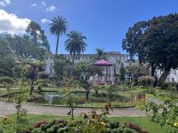 Um Punkt 9 Uhr werden wir von Serafina und unserem Busfahrer Carlos abgeholt und unternehmen unseren ersten Tagesausflug auf den Azoren. Unseren ersten Stopp machen wir an einem Aussichtspunkt kurz vor der Stadt Vila Franca do Campo. Hier können wir die Insel von Vila Franca do Campo sehen, einen ehemaligen eingestürzten Vulkankrater. Danach machen wir einen kleinen Spaziergang durch das Stadtzentrum von Vila Franca, vorbei an der Kirche und dem ehemaligen Kloster der Stadt. Früher war Vila Franca do Campo die Hauptstadt der Azoren, wurde aber nach einem schweren Erdbeben im Jahr 1522 von einem Erdrutsch weggespült. Danach wurde die Hauptstadt in das nicht weit entfernte Ponta Delgada verlagert. Weiter geht unsere Fahrt nach Furnas (auf Portugiesisch Furnasch ausgesprochen), einem Ort, der von geothermischen Aktivitäten geprägt ist. Hier besuchen wir den berühmten Park Terra Nostra, einen botanischen Garten, der eine der größten Sammlungen von Kamelien in der Welt mit über 600 verschiedenen Arten und auch Europas größte Sammlung von Sagopalmfarnen beinhaltet. Wir schlendern durch den 12 Hektar großen Park und alle sind begeistert von der riesigen Pflanzenvielfalt. Das Herzstück des Parks ist das große Thermalbecken, das immer eine Wassertemperatur von 38 Grad Celsius hat. Leider ist es momentan wegen Bakterien im Wasser zum Baden gesperrt, aber dafür bleibt uns mehr Zeit, die Pflanzen zu genießen. Hier könnte man wirklich einen ganzen Tag verbringen, aber wir müssen weiter, da der nächste Programmpunkt ansteht. Wir fahren zum Lagoa das Furnas, einem Kratersee in der Caldeira von Furnas. Hier werden wir Zeuge, wie unser Mittagessen zubereitet wird. Am Ufer des Sees treten heiße Quellen aus der Erde aus, in denen in großen Kochtöpfen der auf den Azoren berühmte Eintopf "Cozido das Furnas" zubereitet wird. Die lokalen Restaurants lassen ihre Töpfe hier über 6 Stunden in den heißen Quellen stehen, bevor der Topf wieder gehoben und zum Restaurant transportiert wird. In Tony's Restaurant in Furnas genießen wir im Anschluss unser Mittagessen. Der Eintopf, der aus Gemüse, Fleisch, Würstchen, Reis und Kartoffeln besteht, schmeckt wirklich lecker, aber macht auch sehr satt. Frisch gestärkt besichtigen wir danach den Park "Jardim Público da Courela", in dem man die heißen Quellen hautnah erleben kann. Außerdem probieren wir das Mineralwasser, das hier direkt aus den Brunnen kommt. Um uns ein noch besseres Bild von Furnas machen zu können, fahren im Anschluss auf den Rand der Caldeira, von wo aus wir einen fantastischen Blick auf den Kratersee und heißen Quellen haben. Ein einmaliger Blick! Als nächster Programmpunkt steht der Besuch einer der einzigen Teeplantagen Europas an. Auf der Plantage "Cha Gorreana" wird grüner, schwarzer und weißer Tee produziert. Die Teekultur kam im Jahr 1878 durch zwei Chinesen aus Macau auf die Azoren. Außerdem haben wir hier die Möglichkeit den Tee zu probieren und bei Bedarf auch etwas zu kaufen. Unsere Reiseleiterin Serafina erklärt uns die verschiedenen Sorten des Tees und wie sie schmecken und wirken. Hier endet unser erster Tag und wir fahren zurück zum Hotel. Am Abend geht ein Teil der Gruppe im Restaurant "Mercado do Peixe" essen und trotz des trockenen Thunfischs haben wir ein schönes erstes gemeinsames Abendessen.