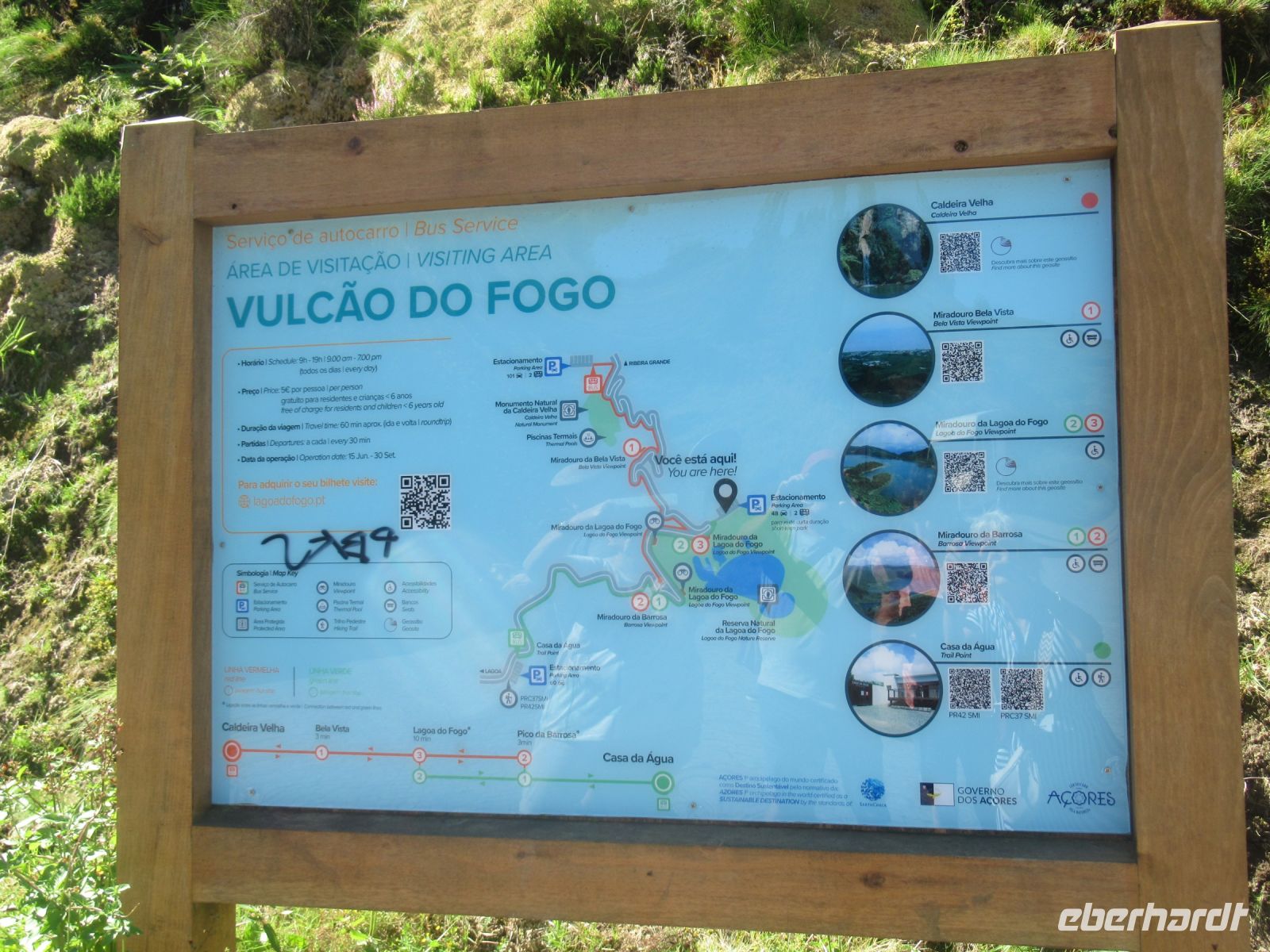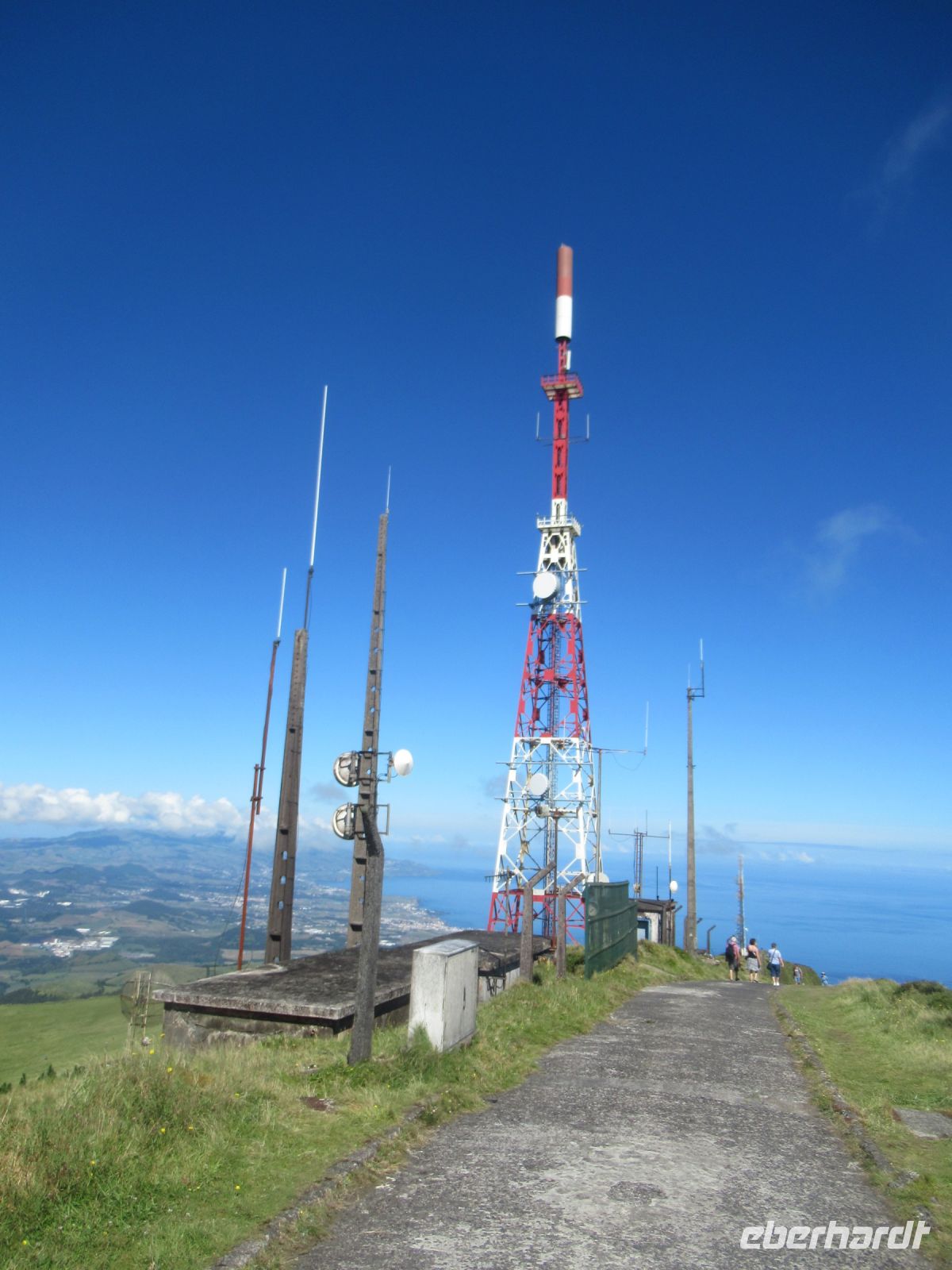Wir laufen nach oben zu den Pico mit dem roten Funkmast, aber das eigentliche Highlight ist der Aussichtspunkt auf dem Weg, wo man den Lagoa do Fogo in aller Schönheit von oben sehen kann. Und dass bei diesem Traumwetter – Sonne pur, klare Sicht, wie aus dem Bilderbuch. Einige Gäste laufen bis nach oben, einige kehren langsam zurück. Die Bergkulisse rundum ist wunderschön und man kann auch den Pico da Vara sehen, der mit 1.103 m der höchste Berg von São Miquel ist. Wir fahren dann weiter zum Miradouro da Fogo. Von da können wir den See näher und in voller Größe sehen. Die Fotoapparate, bzw. Mobiltelefone klicken, hier noch mal die Momente verewigen. Für viele gilt der Lagoa do Fogo – Feuersee – als der schönste See der Azoren und auch wenn wir noch nicht alles gesehen haben, stimmen wir dem jetzt im Nachhinein zu.