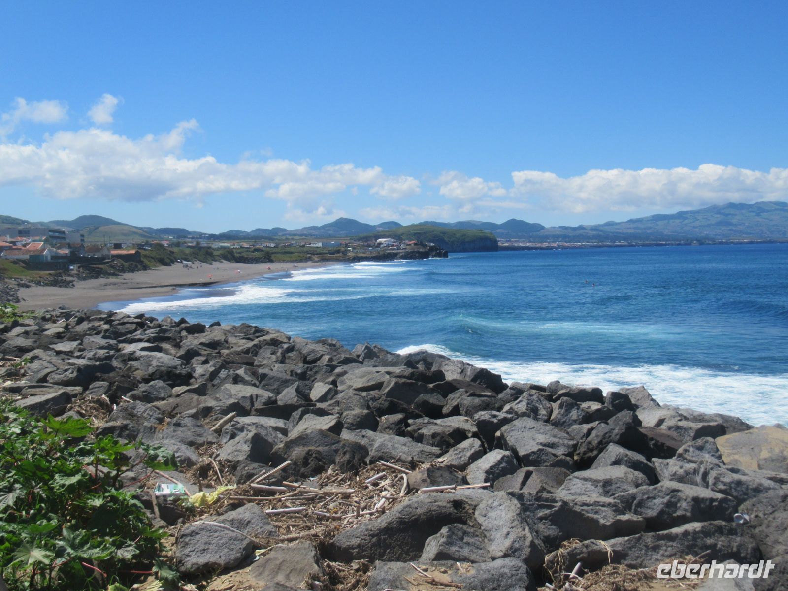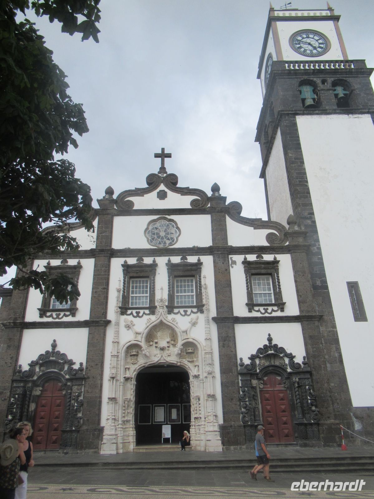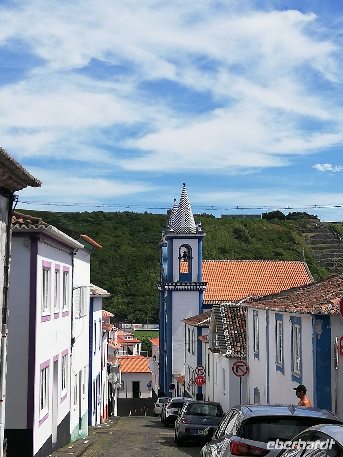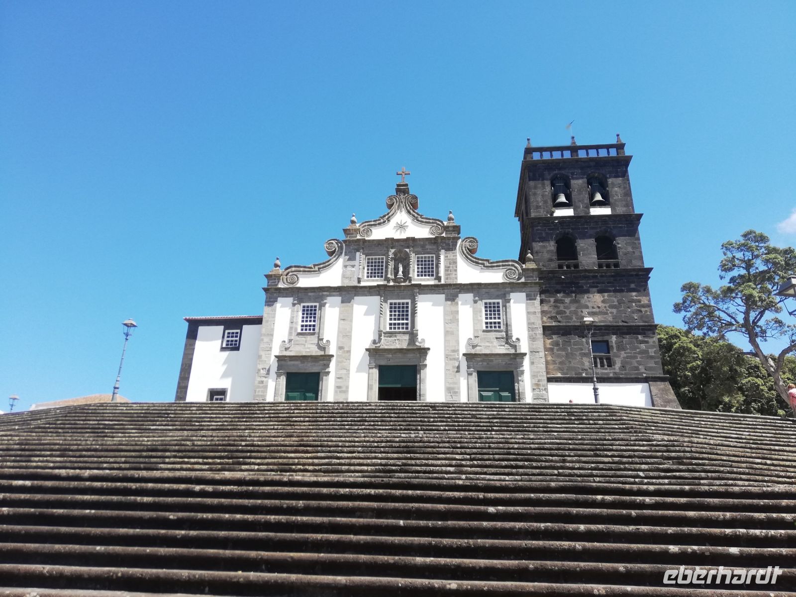 Einige von uns machen noch einen kleinen Spaziergang zum Strand oder erkunden die örtlichen Kirchen und kleine Gässchen. Auf dem Rückweg werfen wir noch Blick in die imposante Kirche Igreja Matriz Ribeira Grande aus dem 15. Jh. die majestätisch über der Stadt thront.