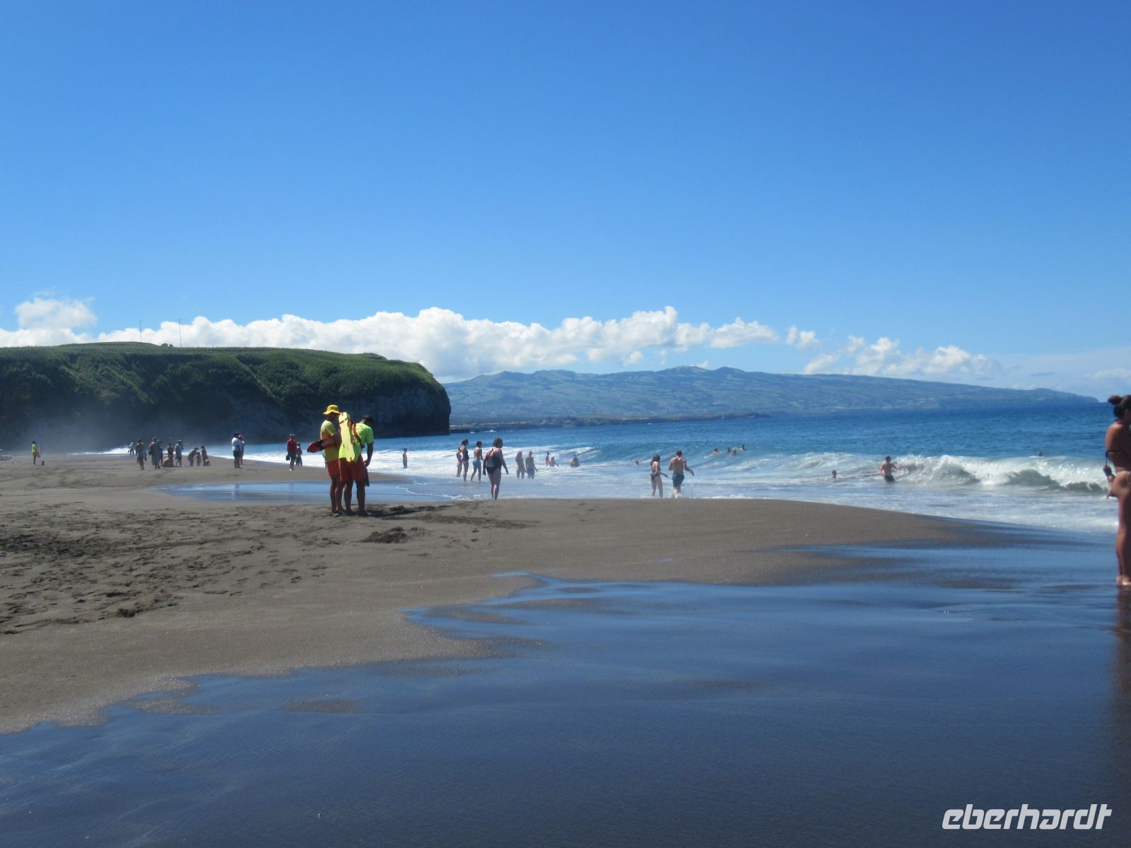 Nun geht es an den bekannten Surfer Strand – Santa Barbara. Hier tobt der Atlantik und einige mutigen von uns wollen es einmal erfahren, sich in die Welle zu stürzen. Es ist sicher erfrischend bei diesen Temperaturen über 30 Grad, aber auch etwas anstrengend… Aber das Erlebnis hat sich wohl gelohnt …die anderen Gäste suchen eher den Schatten…