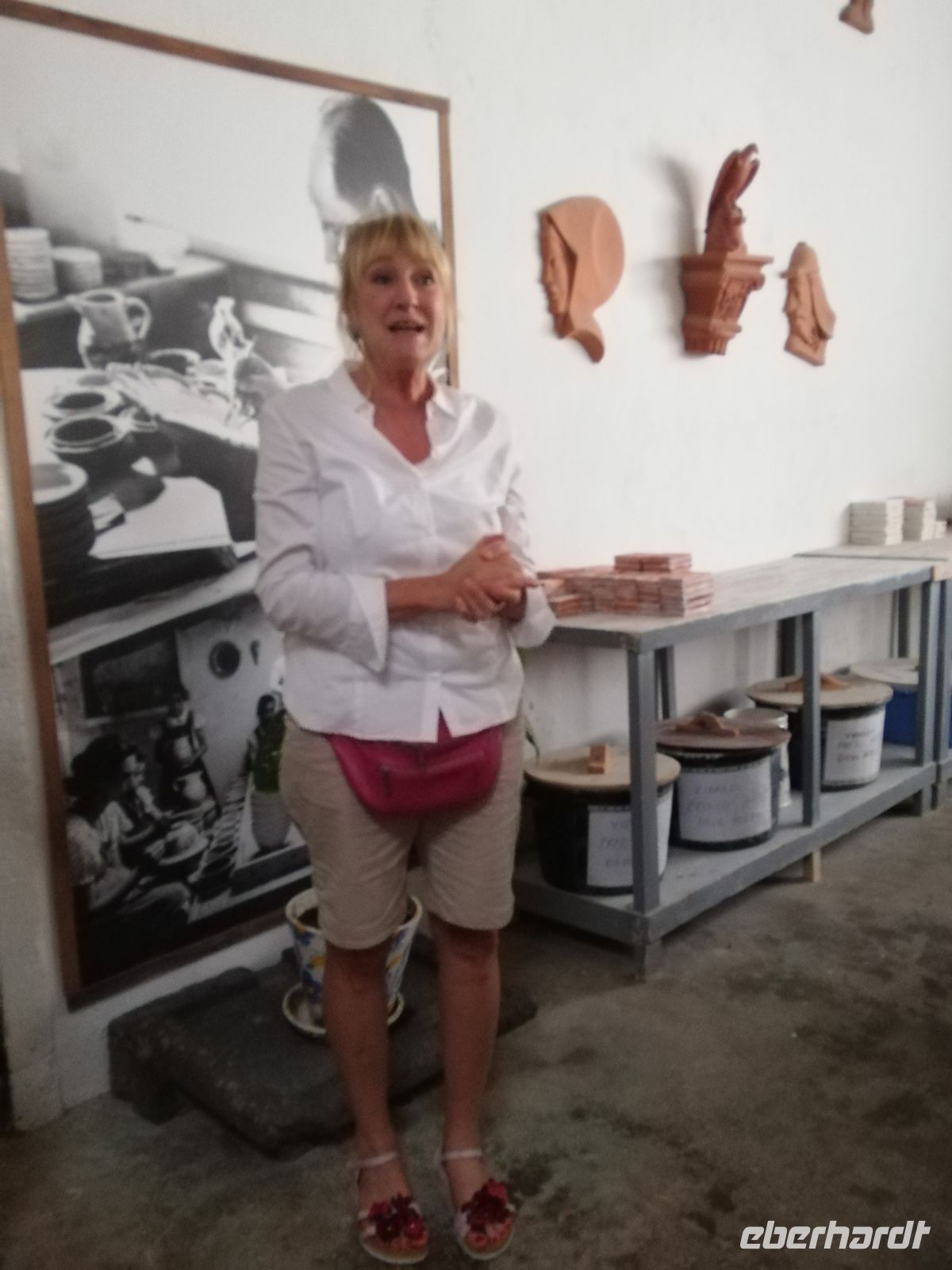 Nur einige Kilometer weiter besuchen wir eine Keramikmanufaktur – „Vieira. Die Manufaktur „Cerâmica Vieira“ ist eine der ältesten und renommiertesten Töpferwerkstätten der Azoren, mit Sitz in Lagoa. Das 1862 von JM Vieira gegründete Familienunternehmen stellt seit über anderthalb Jahrhunderten traditionelle azorische Keramik her. Unsere Reiseleiterin Christina führt uns durch die Manufaktur und erklärt uns die Arbeitsprozesse, bis vom Ton, (der von der Insel Santa Maria eingeführt wird), die schönen Teller, Krügelchen, Fliesen – Azulejos, Bilder etc. fertiggestellt werden.