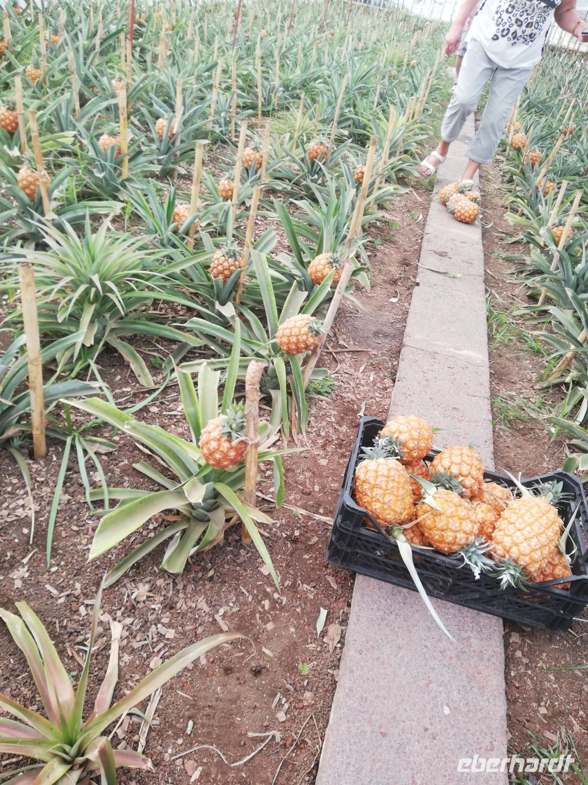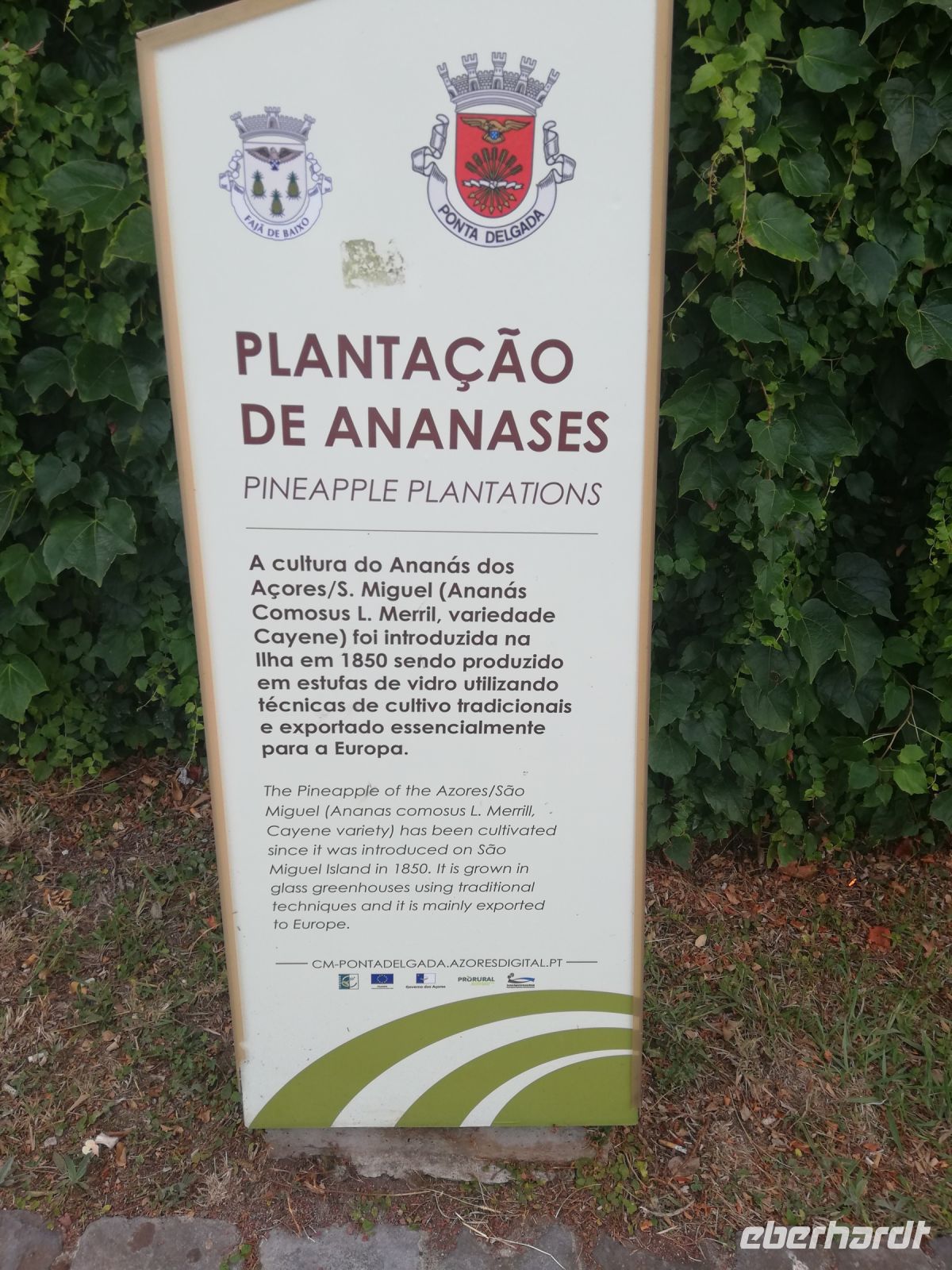 Durch die relativ kleinen Mengen der Produktion werden fast alle Früchte ausschließlich für den Konsum auf Azoren behalten, da es zu wenig für ein Export wäre. Zudem ist die azorische Ananas etwas teurer, als die eingeführte Ananas aus Costa Rica. Dafür aber sehr süß, saftig und schmackhaft. Wir schauen uns die einzelnen Phasen der Ananas Pflanze an, bis zu der reifen Frucht. Anschließen können wir in einer kleinen Bar eine Ananassaft kaufen oder in der Boutique, wo sich fast alles um Ananas dreht, ein Souvenir kaufen.