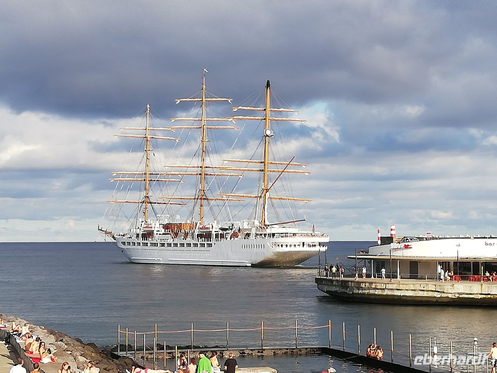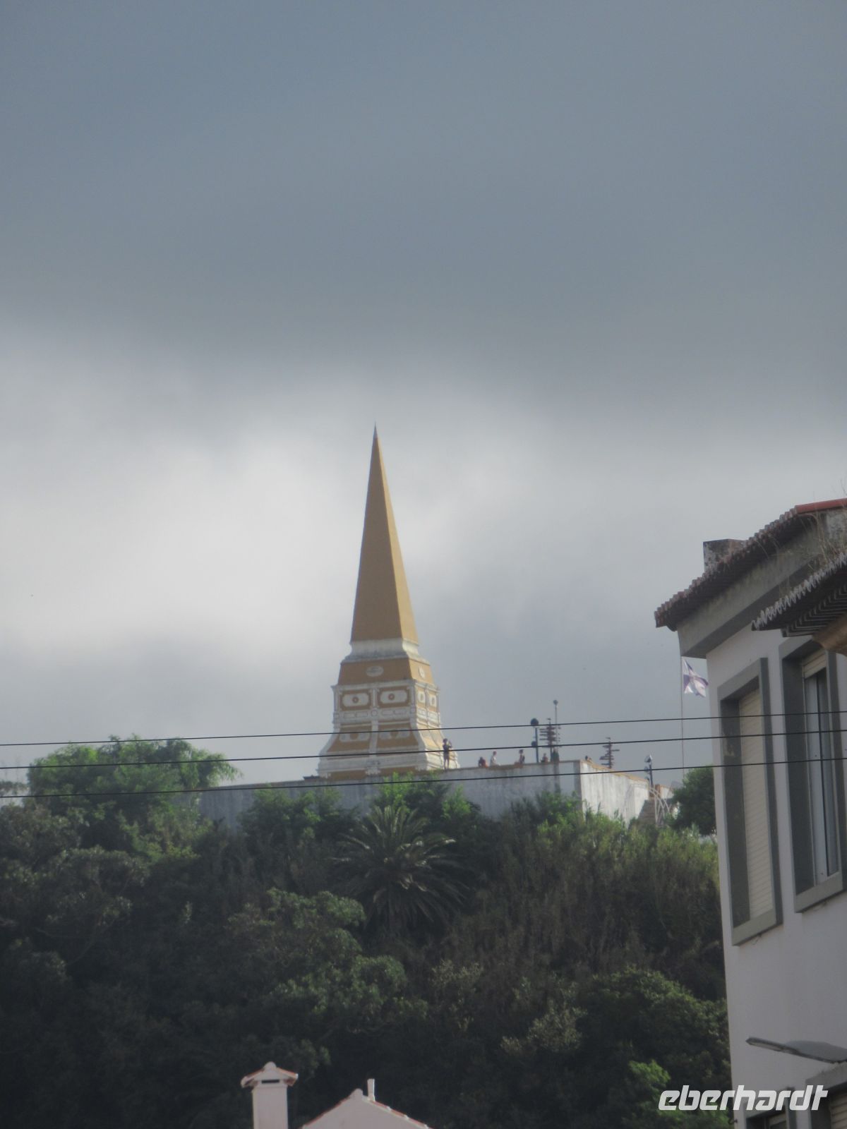 Oben auf dem Berg angekommen stehen wir an der Säule mit einem Kreuz - Miradouro do Pico das Cruzinhas – von hier haben wir einen wunderbaren Blick auf die Stadt, die Bucht und auch auf unser Hotel. Auf der anderen Seite der Stadt ist eine gelbe Zitadelle zu sehen - Memória a D. Pedro IV ist dem Anführer des Bürgerkrieges in den Jahren 1828–1834 gewidmet. Zusätzlich zu vielen historischen Fakten, hält uns Thomas mit vielen Anekdoten und Witzen bei guter Laune.