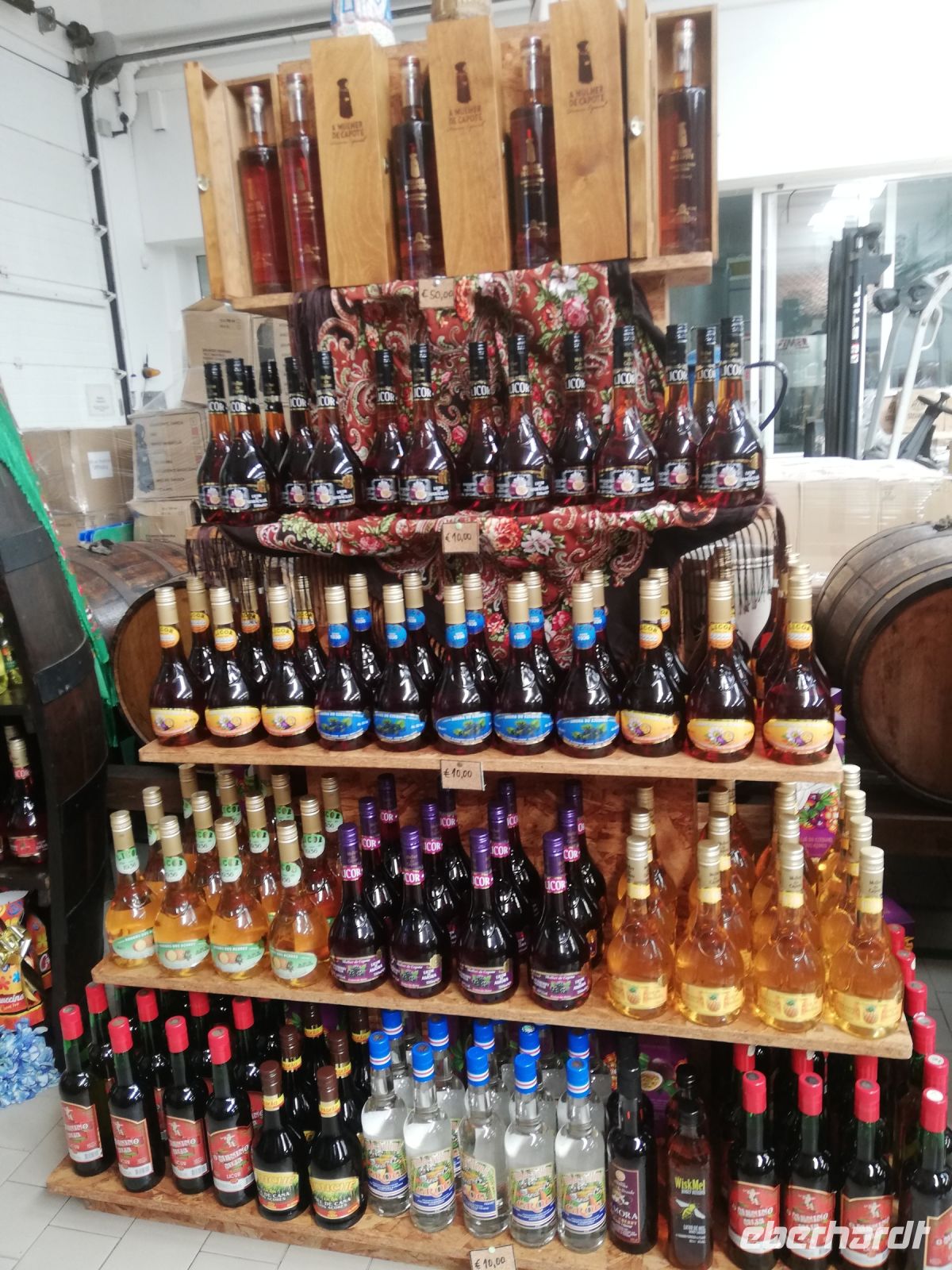 Die Erklärung der Mitarbeiterin der Fabrik und kleine Präsentation der Produkte wird von Christina übersetzt und wir schauen uns einige Räume der Produktion, die Lagerung in den Holzfässern und Verpackung an. Was wäre ein Besuch einer Likörfabrik ohne Verkostung? Wir dürfen also einige Liköre probieren, einer der bekannteste Geschmackrichtungen ist Maracuja Likör, oder auch Likör-Brandy, aber es gibt auch einen ganz ungewöhnlichen, „Milchreis mit Zimt“ der uns überraschenderweise auch sehr gut geschmeckt hat.