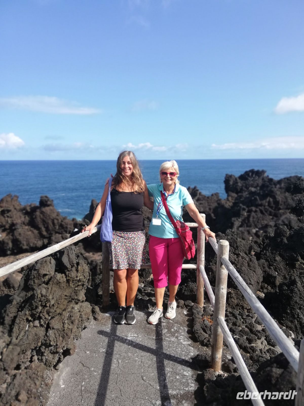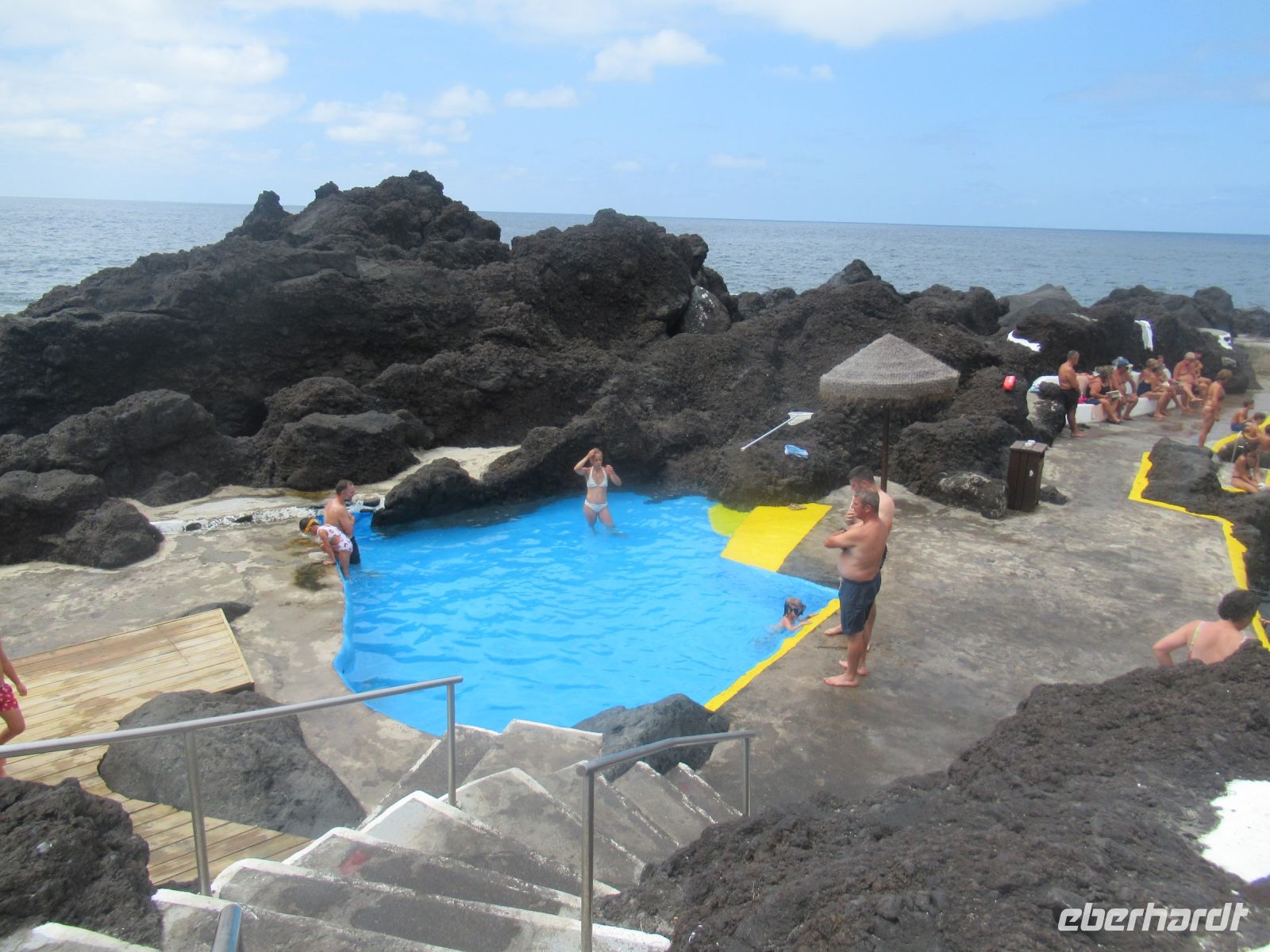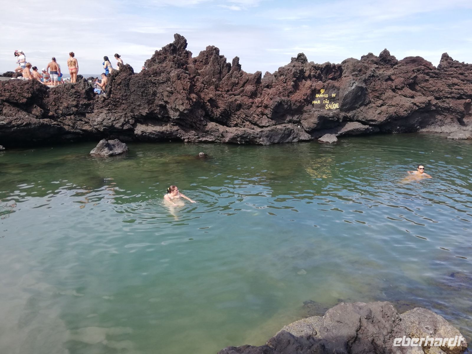 Unweit bleiben wir bei Ausflugslokal stehen, wo wir eine Mittagspause einlegen. Manche Gäste laufen runter an die zerklüftete Küste mit Meeresschwimmbecken– „Varadouro natural swimming pools“, einige nutzen zum Schluss die Möglichkeit einer kleiner Erfrischung, bevor wir das zweite Highlight des Tages ansteuern.