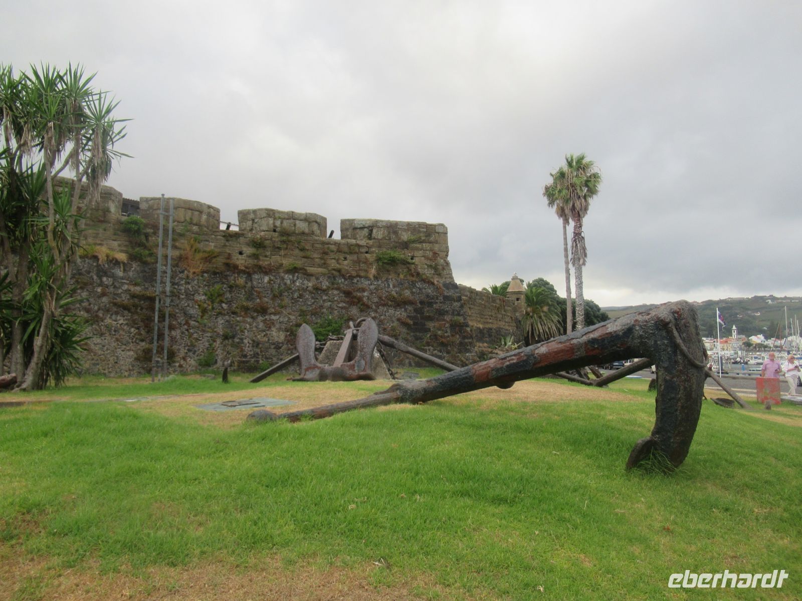 Als erstes fahren wir zu der Festung über der Stadt auf der Halbinsel Monte Brasil. Hier schafft unserer Fahrer das Meisterstück über das enge Tor durchzufahren – Zentimeter Arbeit… Angekommen auf dem Monte sehen wir die weitläufige Festung São João.
