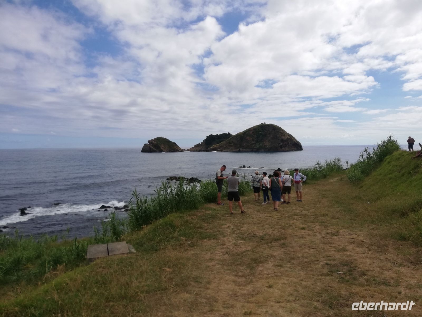 Die Sonne brennt, so steigen wir in unseren angenehm klimatisierten Bus und machen noch einen Stopp am Miradouro do Ilhéu mit Aussicht auf zwei kleine Inseln, die Ilhéu de Vila Franca. Hier nutze ich den friedlichen und einsamen Ort zu einer Vorstellungsrunde der Teilnehmer, verbunden mit einem Welcome Drink und Verkostung einer der typischen azorischen Liköre.