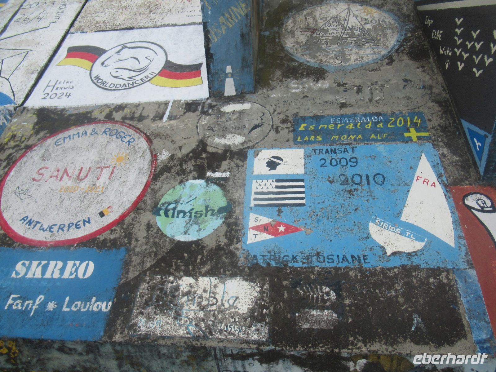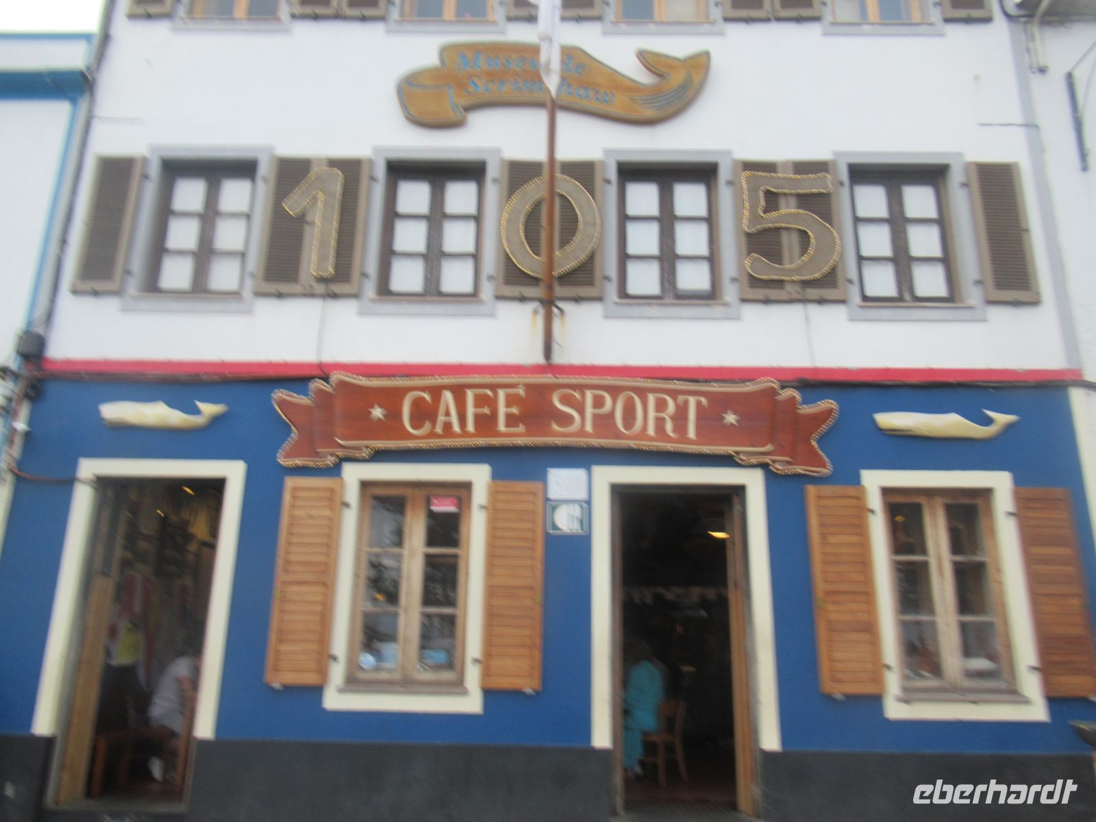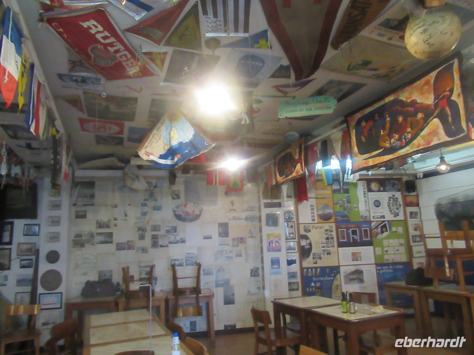 Jetzt landen wir aber in dem traditionsreichen Peter`s Café Sport. Das Café ist für seine Geschichte als Zwischenstopp für Weltumsegler bekannt, aber auch für Gin Tonic mit Maracujageschmack. Der Innenraum ist sehr schön eingerichtet, mit vielen Flaggen aus der ganzen Welt - Besuch ist ein “Muss“ in Horta.