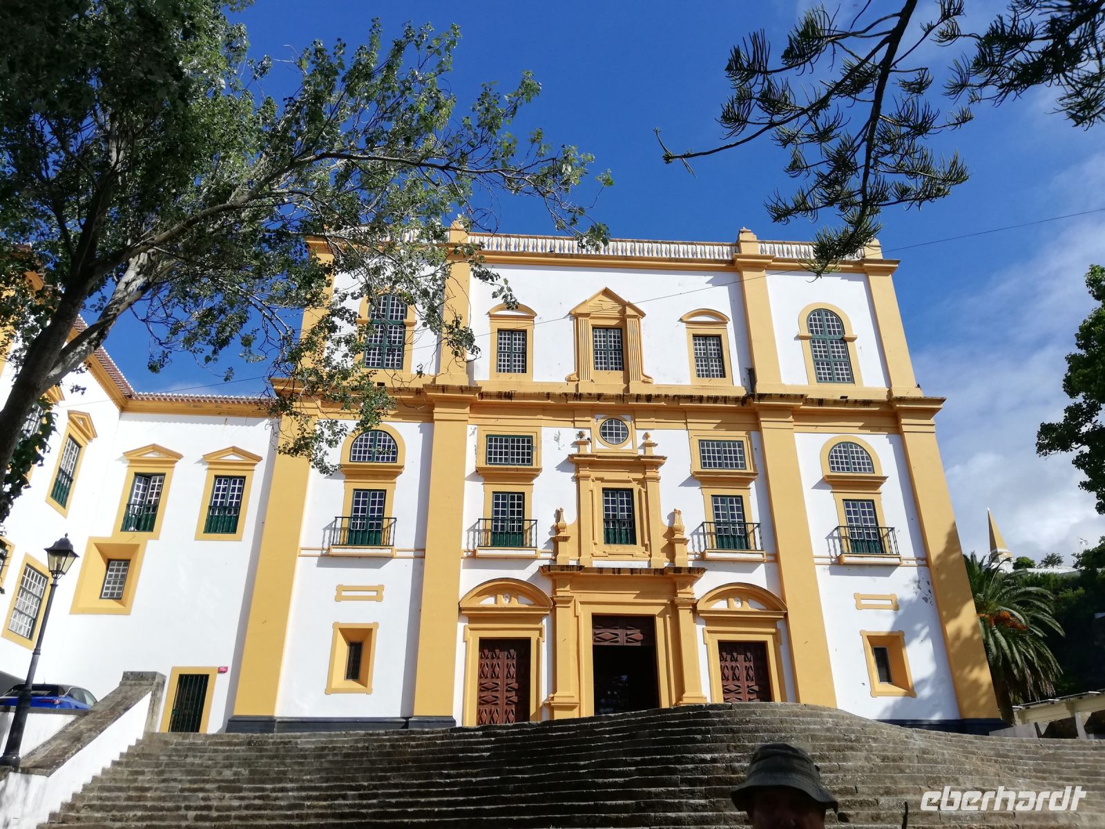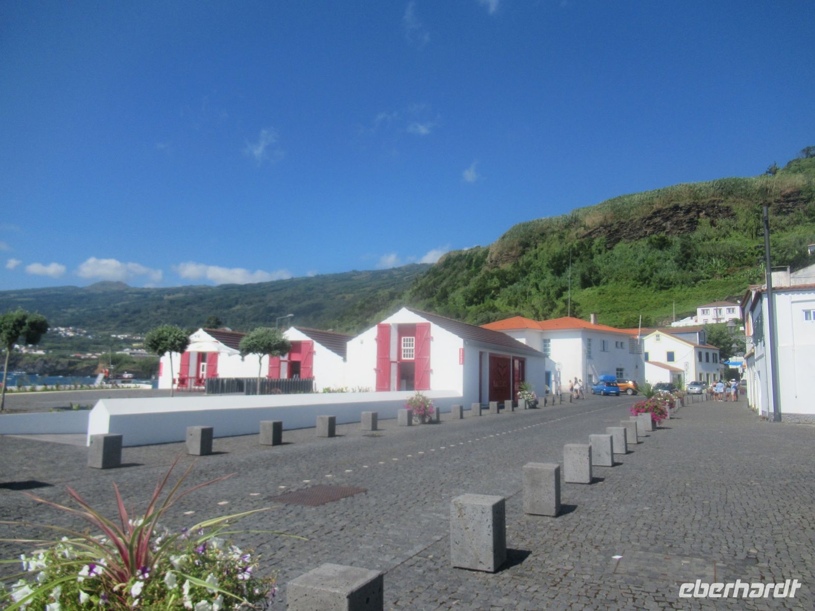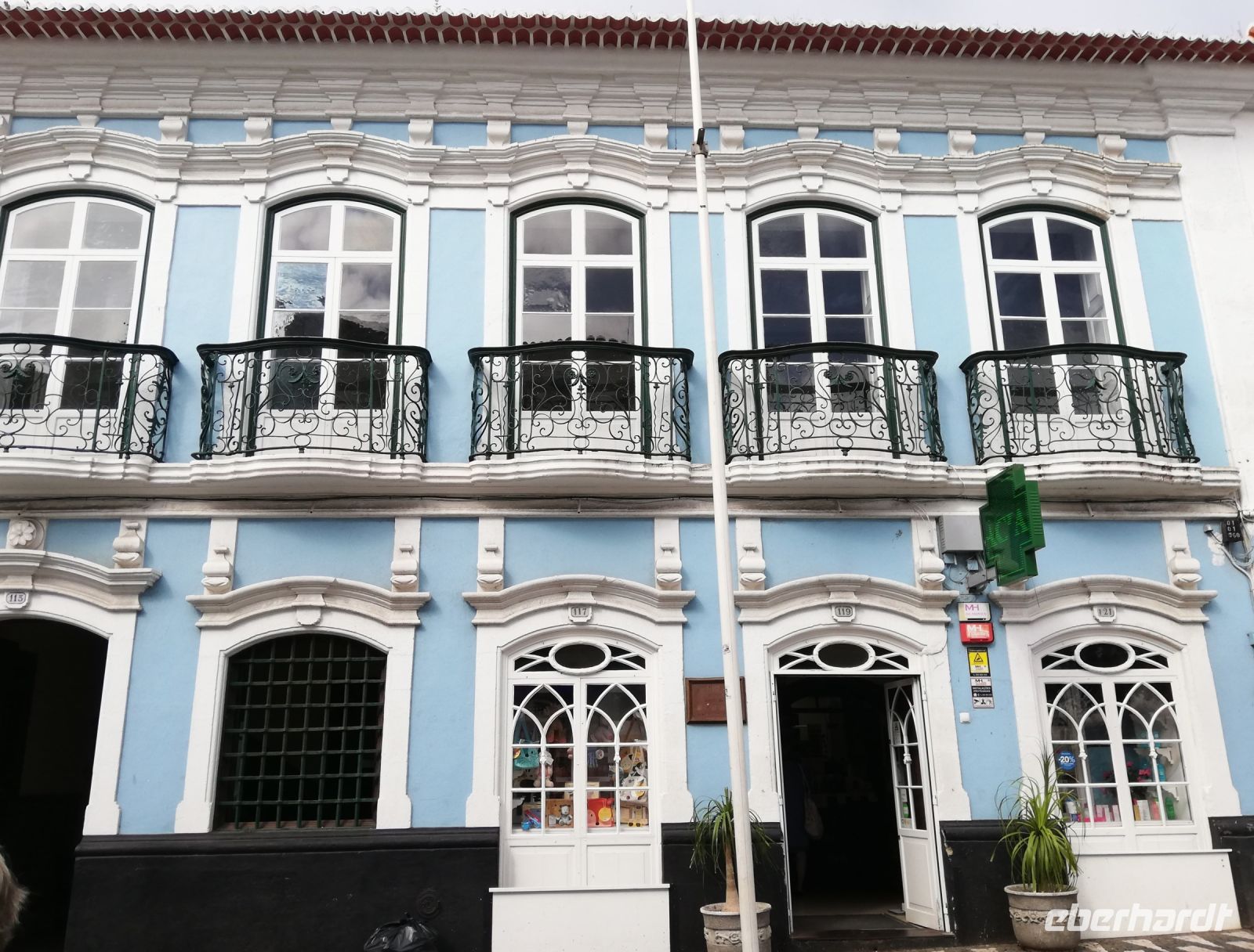 Wir fahren jetzt weiter in das Städtchen, Vila de São Sebastião. Vor der örtlichen Kirche versammelt sich gerade eine Hochzeitsgesellschaft. Die kleine schmucke Kapelle des heiligen Geistes ist mit der Tradition des Heiligen Geistes verbunden, der als Symbol für Solidarität, Wohltätigkeit verehrt wird. Er steht für Frieden und das Teilen mit anderen, insbesondere mit den Armen und Bedürftigen.