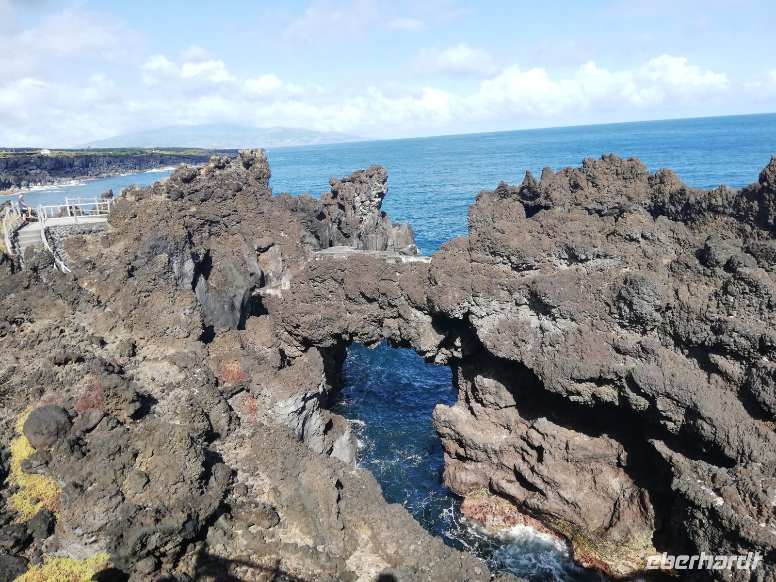 Voller Eindrücke machen wir uns wieder auf den Weg Richtung Horta und machen einen Halt an einem besonders schönen Abschnitt der Küste - "Miradouro Ponta Furada" mit Felsentor und tollen Ausblicken, die die Natur hier gezaubert hat.