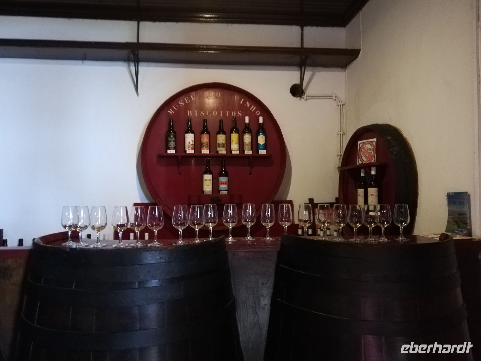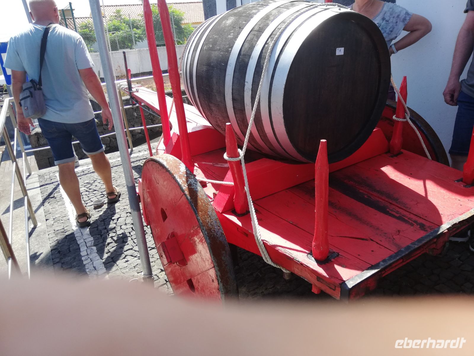 Aber wir trinken heute nachmittags keine Milch, bevorzugen ein Gläschen von Azoren-Wein. Wir fahren zu der letzten Station des Tages – in das Wine Museum im Ort Biscoitos. Hier mussten wir eine Weile warten, dann kommen wir aber in einem sehr schönen Weinkeller und verkosten zwei Weine.