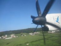 Zurück im Hotel nutzen wir noch die Gelegenheit sich vor dem Flug in zwei Zimmern frisch zu machen. Hier treffen wir die anderen Gäste, die den Vormittag ruhig verbracht haben oder mit Anja noch kleine Erkundungstour durch Horta. Der Bus wartet auf uns und wir fahren zu Flughafen Horta und fliegen auf die Insel Terceira. Wir verabschieden uns von unserer lieben Reiseleiterin Anja, die uns auf Faial und Pico begleitet hat und dem heutigen Fahrer. Diesmal klappt alles pünktlich. Wir haben noch Zeit, oben in der Snackbar zu sitzen oder von der Terrasse die ankommende Propellermaschinen zu betrachten.