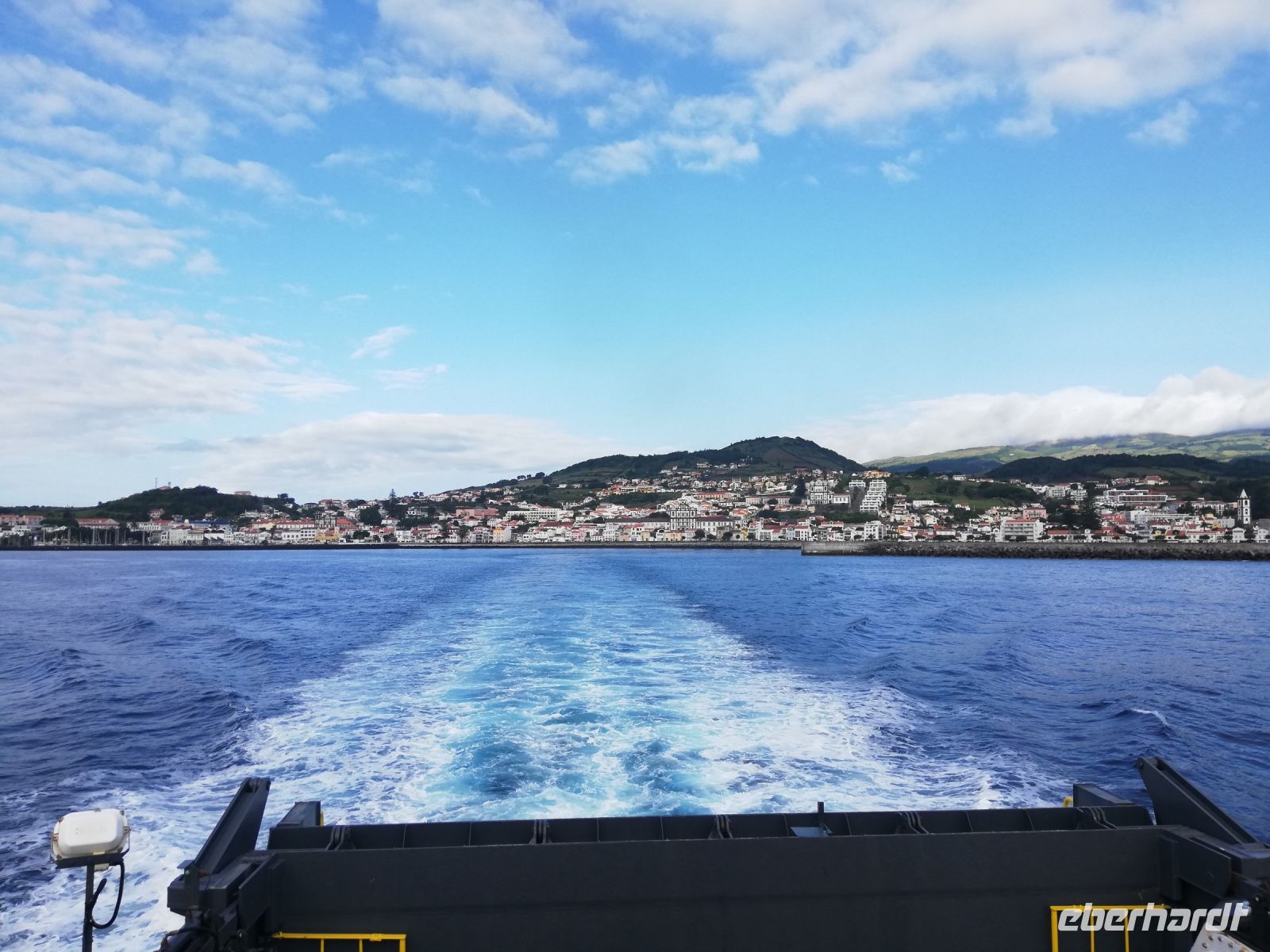 Die Insel Pico hat eine Fläche von etwa 447 km² mit einer Küstenlänge von etwa 110 km und ist die zweitgrößte Insel der Azoren. Wir fahren ca. 25 Minuten mit der Fähre und schon sind wir auf der Insel Pico. Von Faial sind es nur 6 km. Die Insel wird auch „Ilha Preta“ genannt – „Schwarze Insel“.