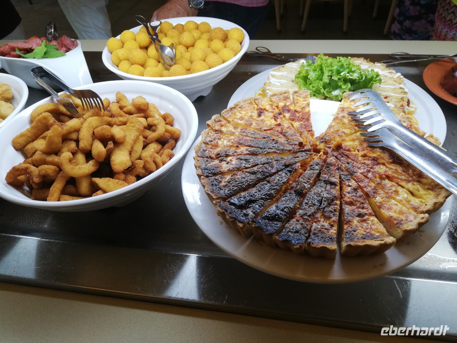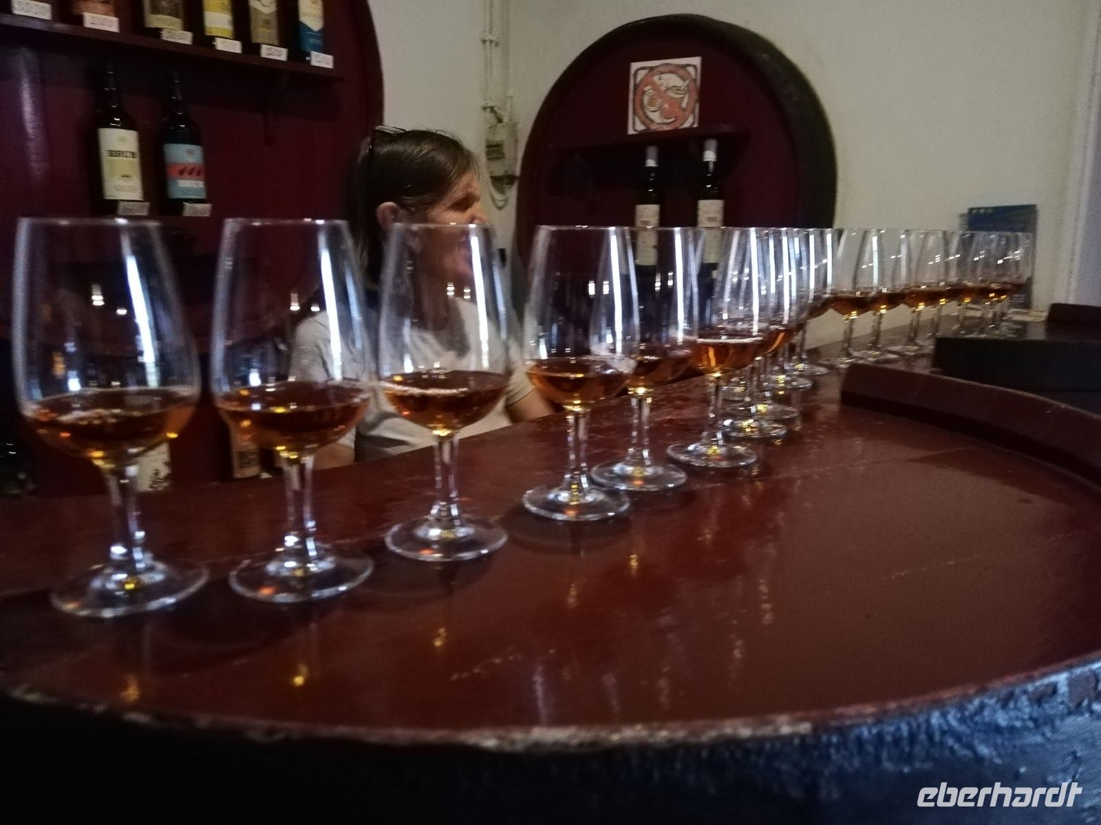 Jetzt dürfen wir die Spezialitäten verkosten und den ersten Wein probieren. Nach dem Essen gibt es noch den Verdelho Wein und wer wollte zum Abschluss ein Likör…die meisten haben bei der Wärme auf den Likör verzichtet…