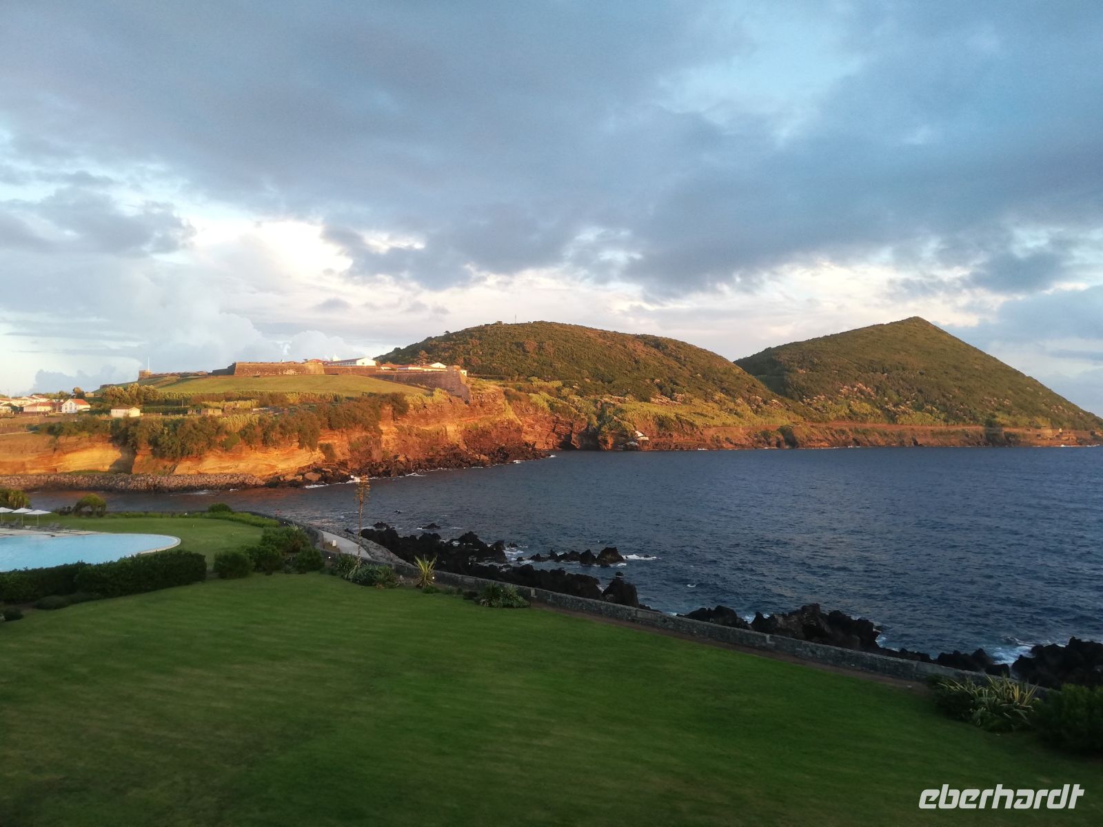 Die Sonne über dem Monte Brasil geht unter und wir nehmen Abschied von den Azoren, die uns so verzaubert haben.