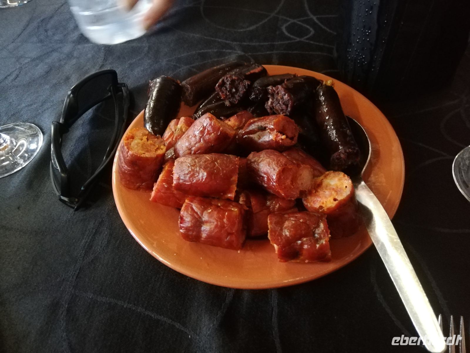 Es werden uns große Platten mit Hähnchen, Rind- und Schweinefleisch, Blutwurst, Chorizo Wurst, diverses Gemüse und Süßkartoffeln serviert – alles in recht großen Stücken. So probieren wir nach und nach die Köstlichkeiten und genießen dazu Wein oder Bier. Alle werden satt, aber wir konnten längst nicht alles Essen, was hier aufgetischt wurde. Etwas schade…
