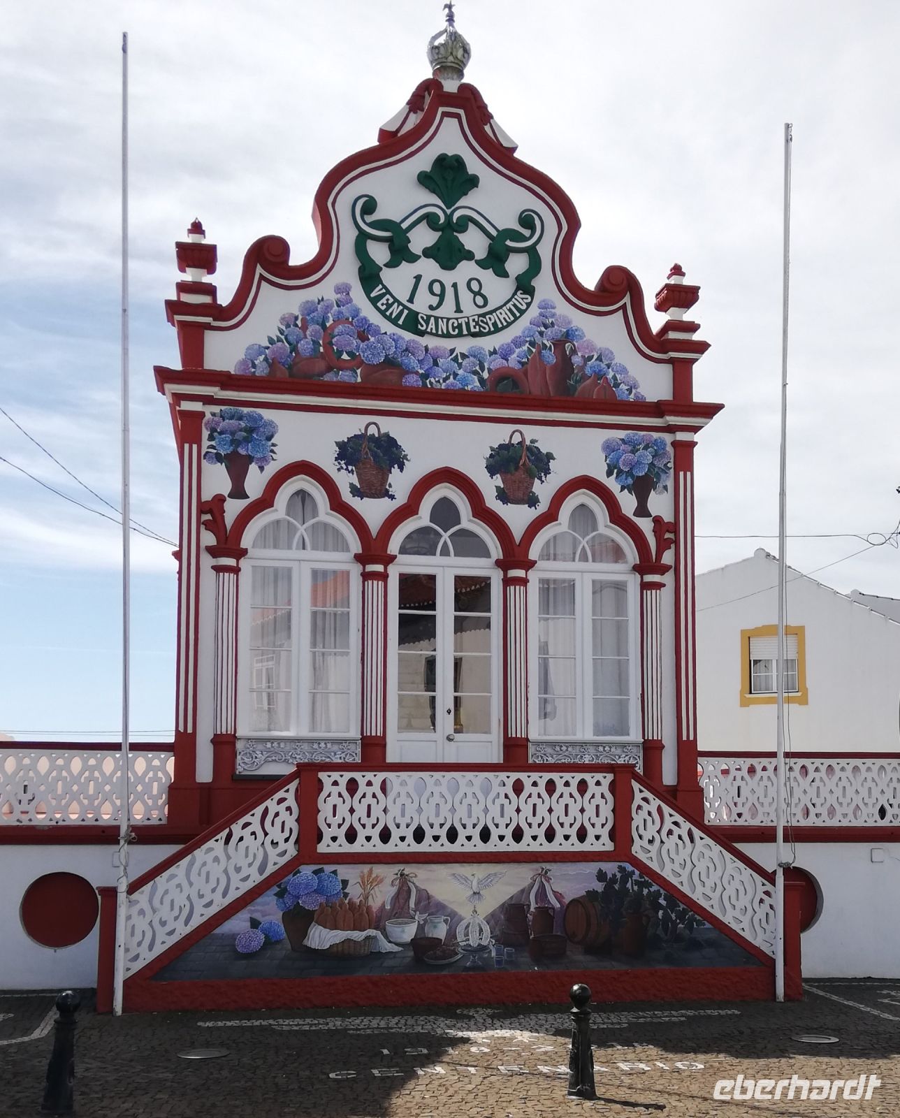 Diese Tradition ist auf Terceira immer noch sehr lebendig und einmal im Jahr darf eine Person ein Fest für die Bedürftigen ausrichten – auf eigene Kosten oder auch Spenden. – und es ist eine große Ehre. Diese Heilig Geist Kapellen sind in mehreren Orten auf Terceira zu finden.