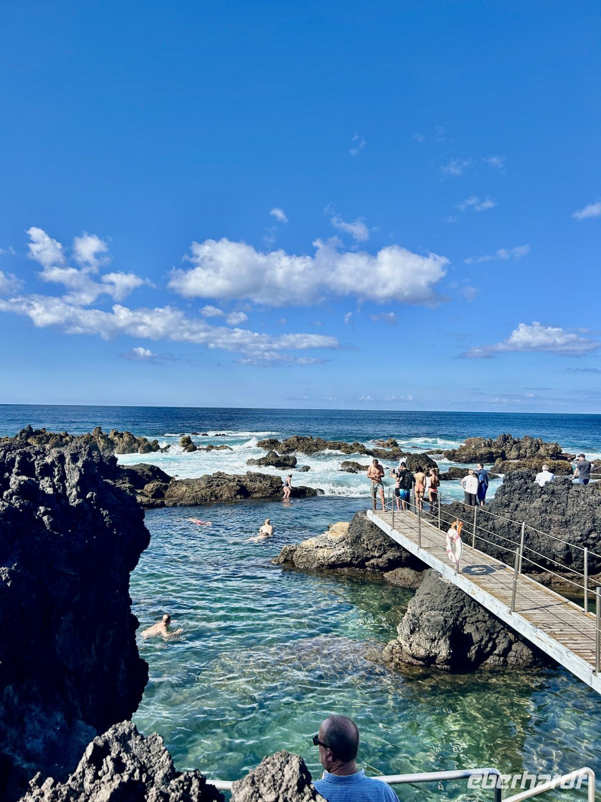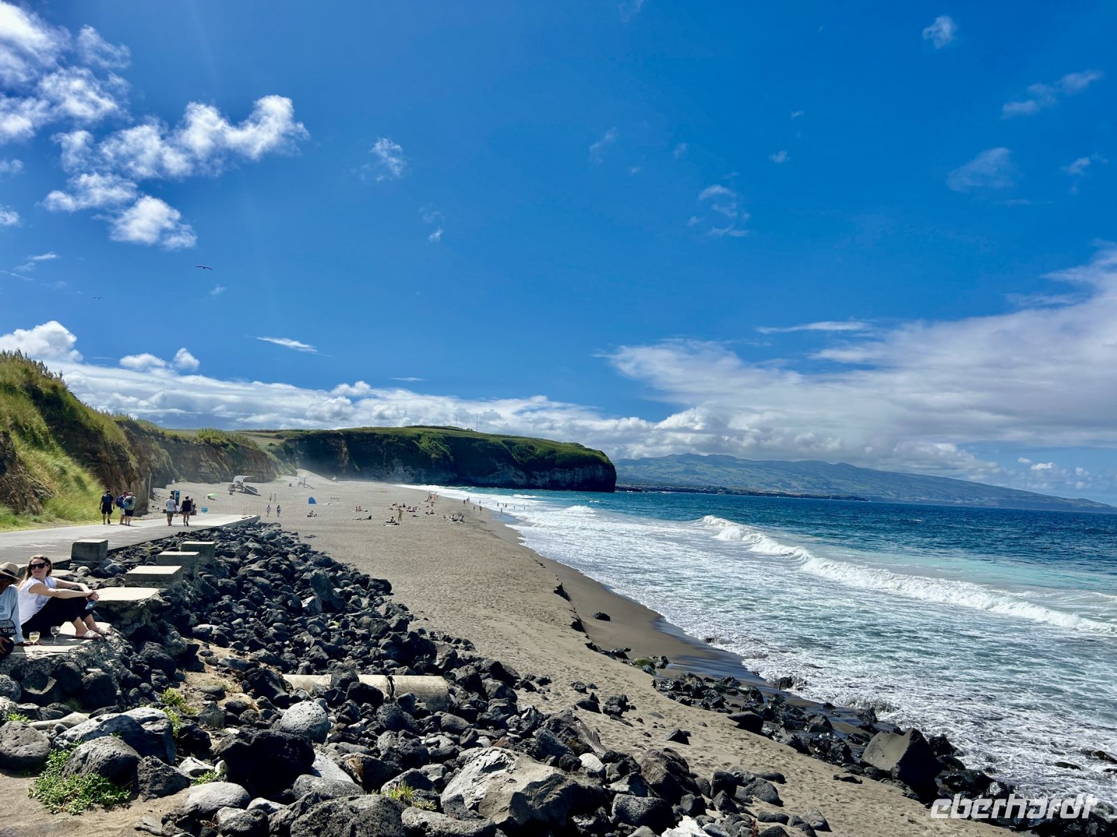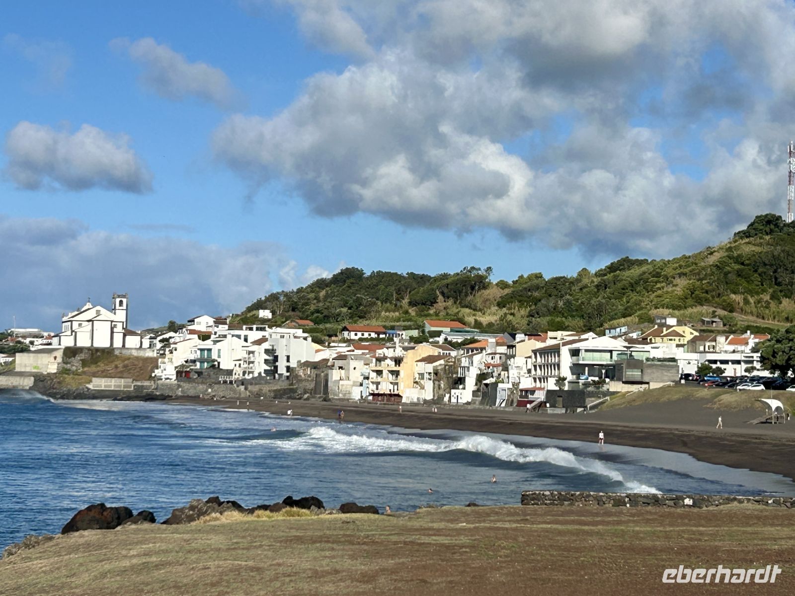 Und nun stand ein Abstecher an den schwarzen Sandstrand an - natürlich - ein Bad in den warmen Fluten des Atlantik durfte nicht fehlen. Und was war das für ein Spass! Die riesigen Wellen rollten heran und überschlugen sich und man musste schon richtig standfest sein, um nicht umgeworfen zu werden. Doch der Strandabschnitt ist bewacht und so ist das Baden ungefährlich möglich. Eine tolle Erfahrung!