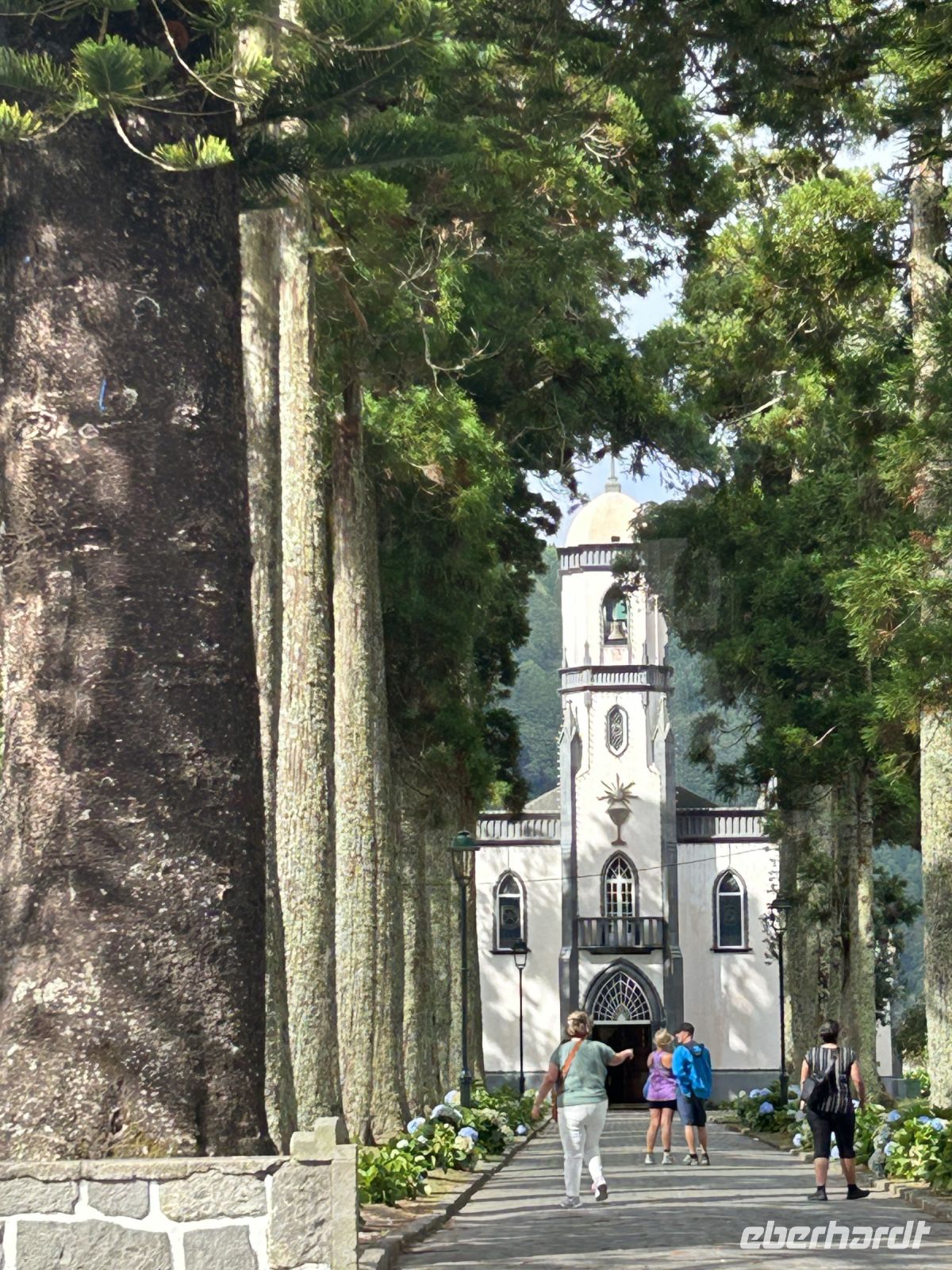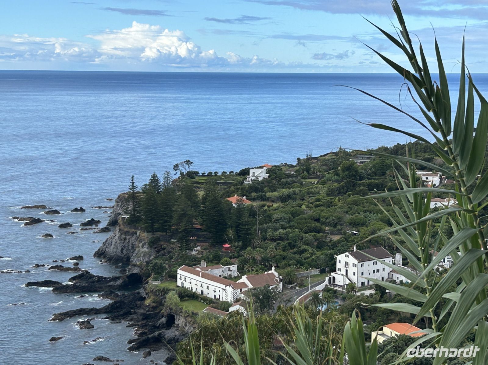 Unser vierter Tag begann mit einem Ausflug zu den beeindruckenden Kraterseen Lagoa Azul und Lagoa Verde, die in der Region Sete Cidades liegen. Diese beiden Seen, die je nach Lichtverhältnissen in verschiedenen Grün- und der andere in Blautönen schimmert, sind von einer Legende umwoben, die uns Frederick natürlich zum Besten gab. Sie boten uns auch mit Wolken einen unvergesslichen Anblick, wenngleich weniger farbintensiv. Im Örtchen Sete Cidade war Zeit für einen Spaziergang. Am Aussichtspunkt Miradouro do Escalvado dann eine wunderbare Aussicht (und mit Sonne) auf das westlichste Dorf der Insel: Mosteiros - sowie auf die Felsen im Meer, genannt das „Kloster“ und der Priester mit seinen Nonnen.