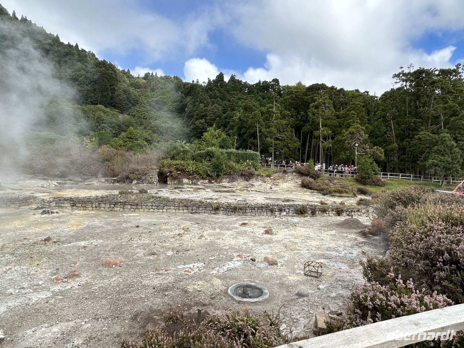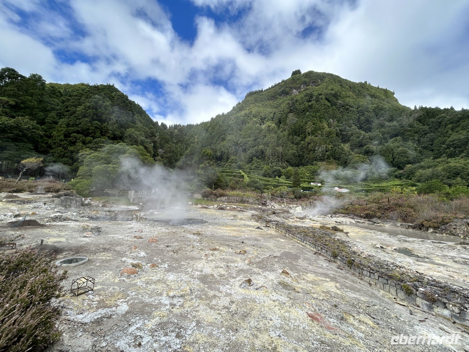 Über Serpentinen ging es danach bergauf und bergab, weiter nach Furnas, ein Tal voller geothermischer Aktivitäten. Bei einem ausgedehnten Spaziergang um den gleichnamigen See erreichten wir schließlich das Feld mit den brodelnden Geysiren und Wasserlöchern. Der Geruch von Schwefel in der Luft und die dampfenden Quellen verliehen dem Ort eine mystische Atmosphäre.