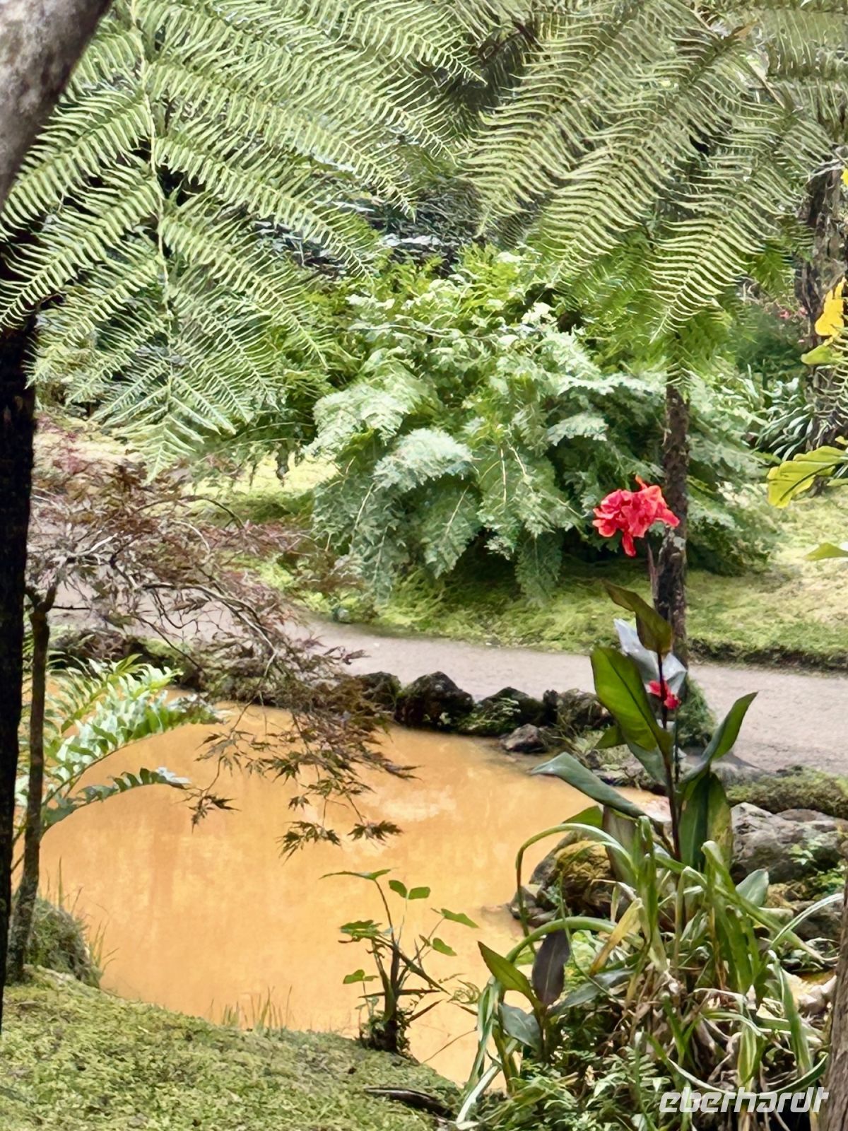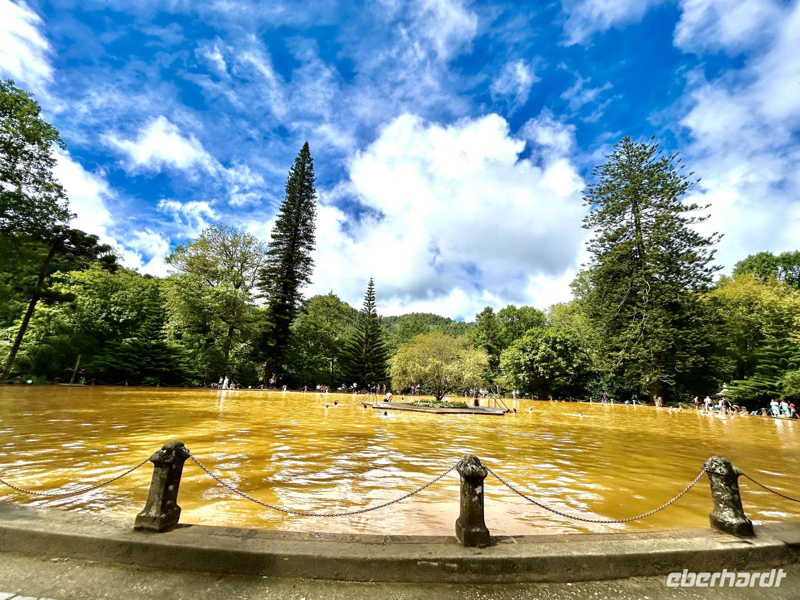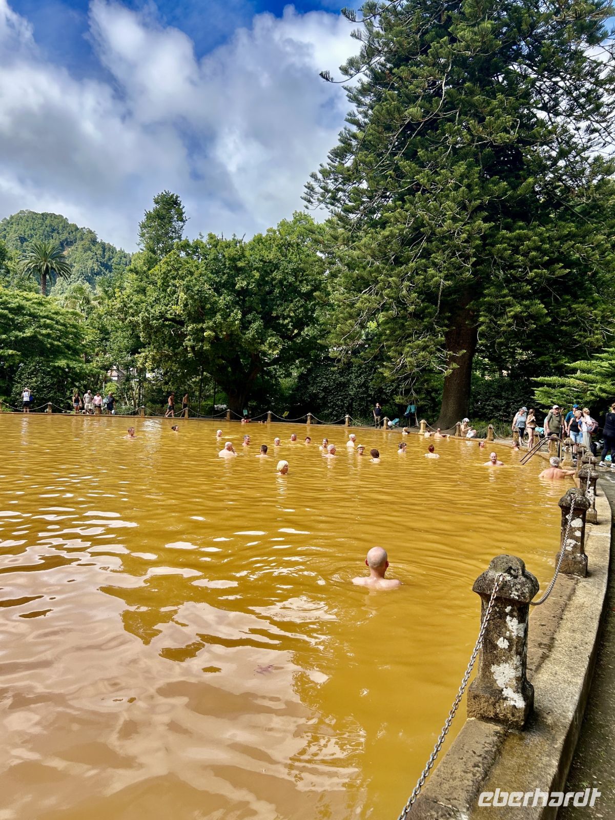 Am Nachmittag besuchten wir den Park Terra Nostra, einen der schönsten botanischen Gärten der Azoren, der schon gut 150 Jahre besteht. Bei einem Spaziergang durch das satte Grün mit unzähligen Farnen, Palmen und exotischen Pflanzen fühlten wir uns wie am anderen Ende der Welt. Eine wunderbare Abwechslung waren die thermischen Becken, die zum Entspannen einluden. Ein Bad im warmen, eisenhaltigen Wasser des Thermalbeckens war der perfekte Abschluss dieses erlebnisreichen Tages. Und manche sahen danach doch tatsächlich jünger aus ;-)