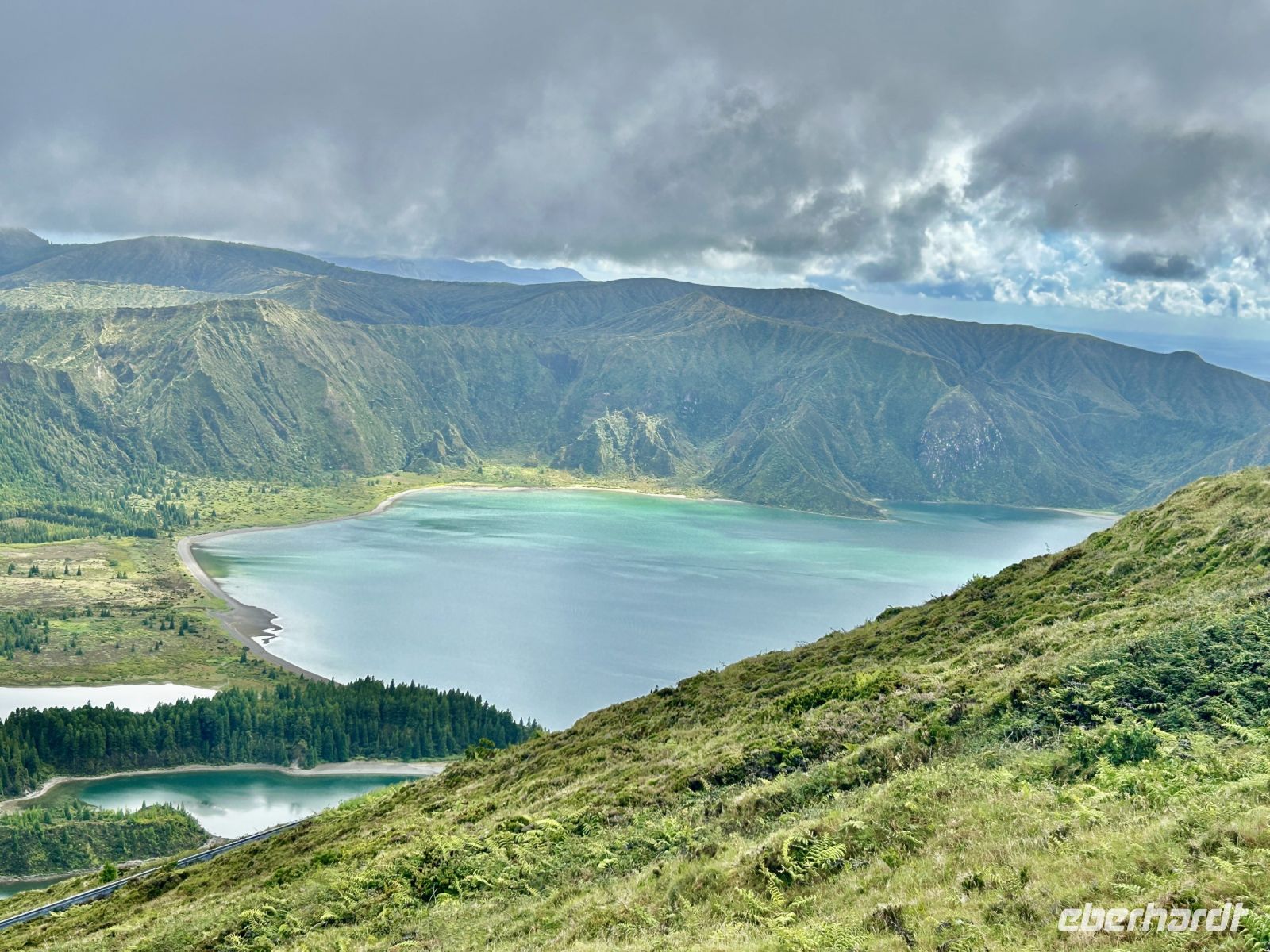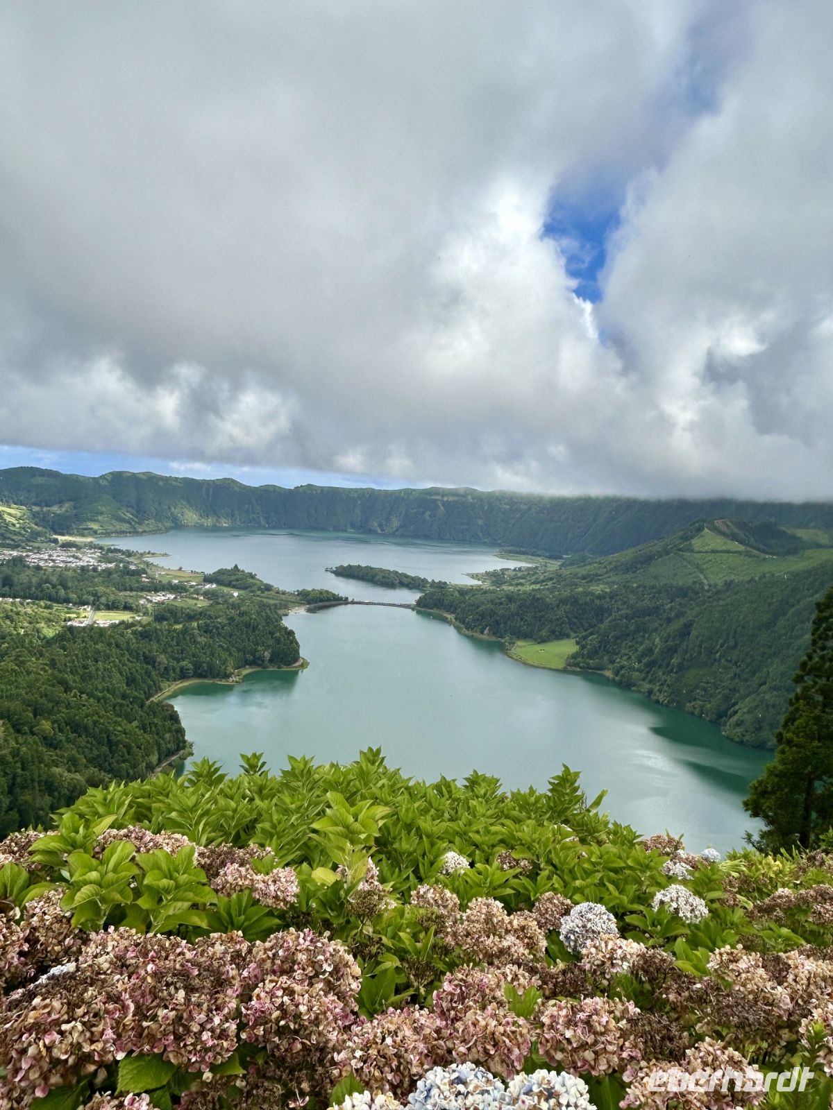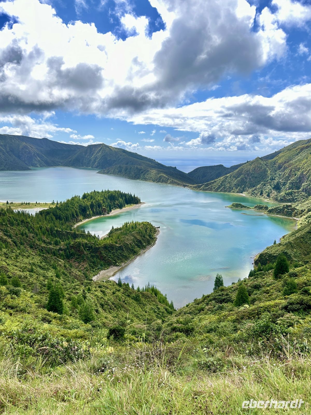 Natürlich erkundeten wir die Region um Lagoa und den beeindruckenden Lagoa do Fogo (Feuersee). Der Kratersee, eingebettet in eine unberührte Landschaft, bot uns einen spektakulären Anblick. Das Wetter spielte mit und der See begeisterte mit seiner türkisen Farbe. Vom Kraterrand in 910m Höhe ergatterten wir unvergessliche Fotomotive. Wir konnten gar nicht stoppen, immer wieder stellten wir uns in Pose und zahlreiche Selfies wurden gleich verschickt.