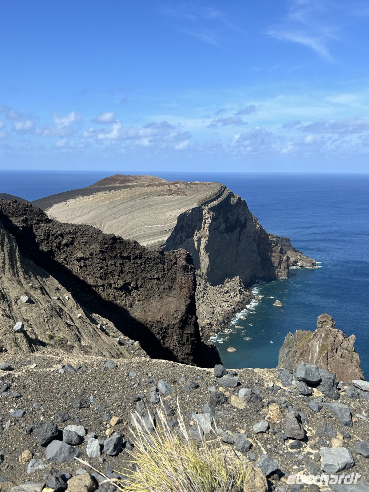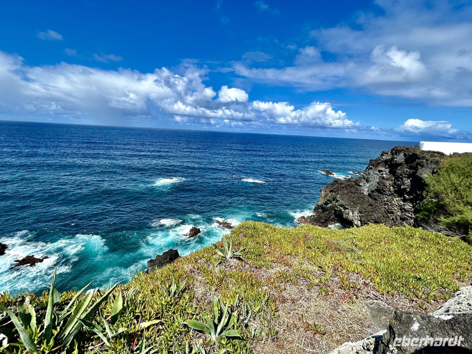 In Capelas war Zeit für die Mittagspause und ausgerechnet jetzt ging ein Wolkenbruch hernieder. Doch kurz darauf schon wieder Sonnenschein und Zeit für eine Überraschung: am Aussichtspunkt mit Blick auf den Elefantenfelsen genossen wir? „Bolachas Maria“, die typisch portugiesischen Kekse und Likör mit diesem Geschmack.