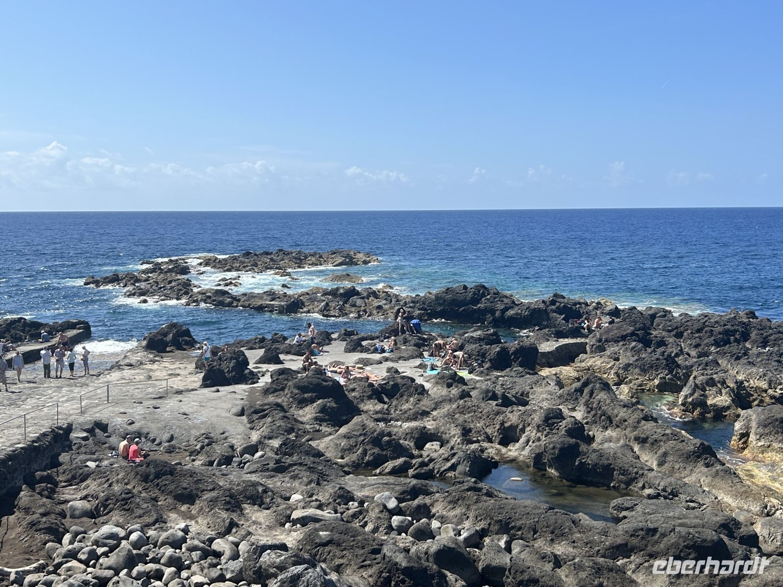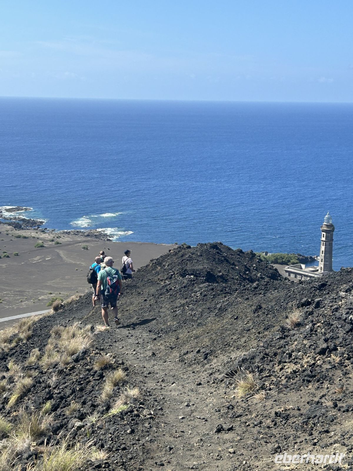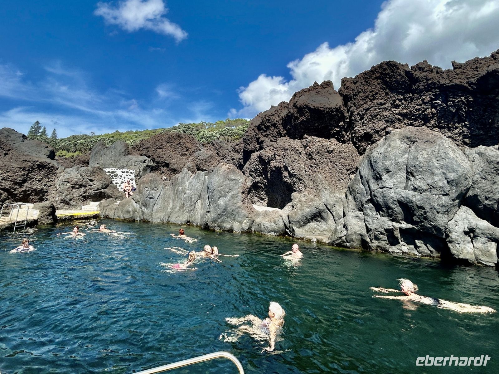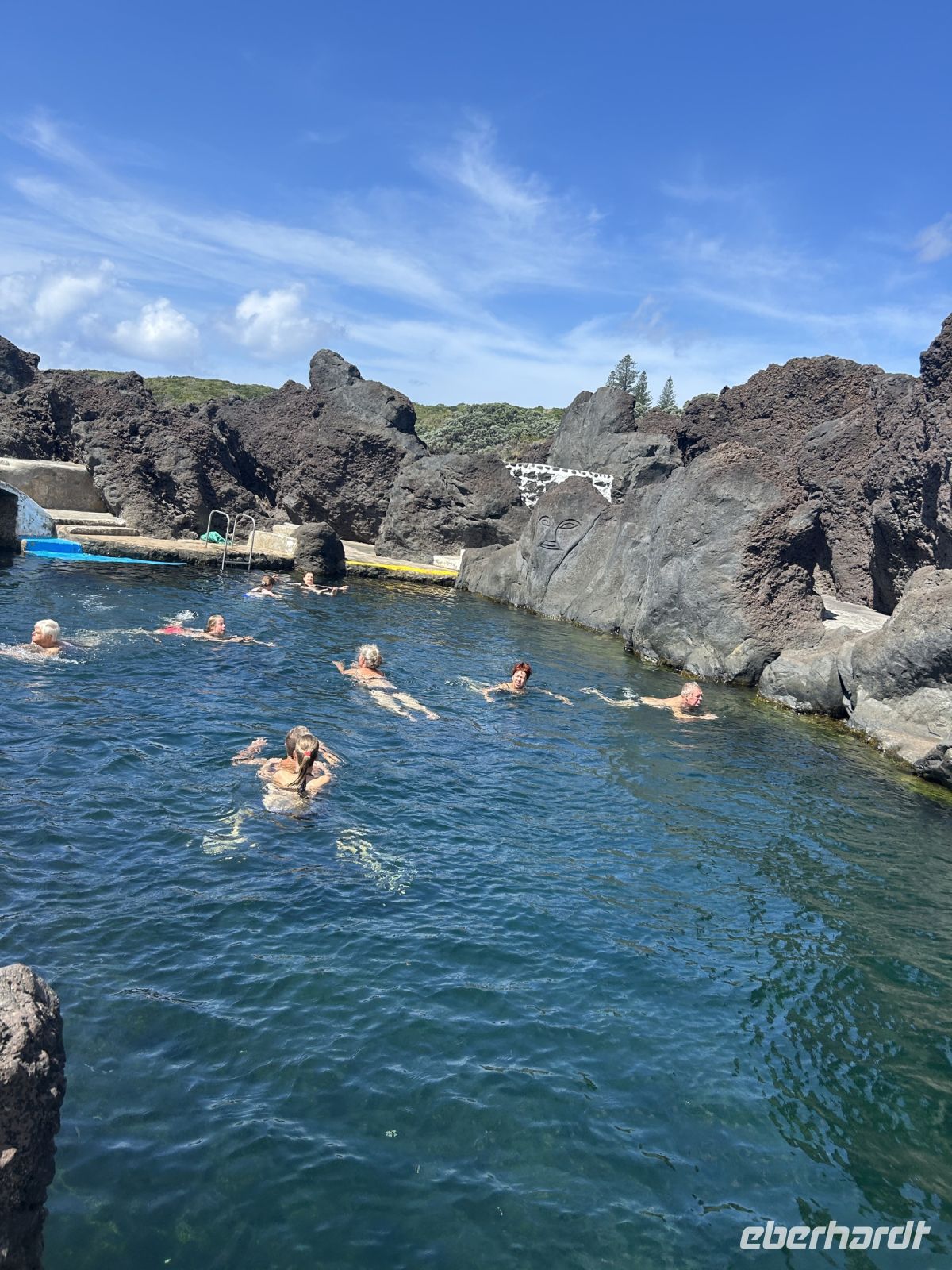 Ganz unerwartet folgt ein besonderer Höhepunkt der Reise: wir unternehmen spontan eine kleine Wanderung im Capelinhos Vulkanfeld und laufen durch das dunkle Vulkangeröll bis zu den steilen Klippen. Man spürt fast die Wärme unter den Füßen. Wir sehen den Capelinhos-Vulkan, dessen letzter Ausbruch im Jahr 1957 die Insel stark veränderte und ein Dorf unter sich begrub. Die karge, mondähnliche Landschaft war beeindruckend, die neu entstandene Landzunge ragt ins Meer und zeigt die ungezähmte Kraft der Natur. Man sieht neben dem Leuchtturm die Reste eines verschütteten Dorfes.?Dort werfen wir auch einen Blick auf den Capelas Badestrand (in den Klippen angelegt) und in ein Haus mit Walfängerboot.?Auf uns wartet dann die Mittagspause und eine Erfrischung bei den Varadoura Piscinas. Wieder genießen einige die Badefreuden und erfüllt geht es wieder ins Hotel zurück. Letzter Stopp noch am Miradouro Feteira mit Blick auf ein Felsentor im Meer.