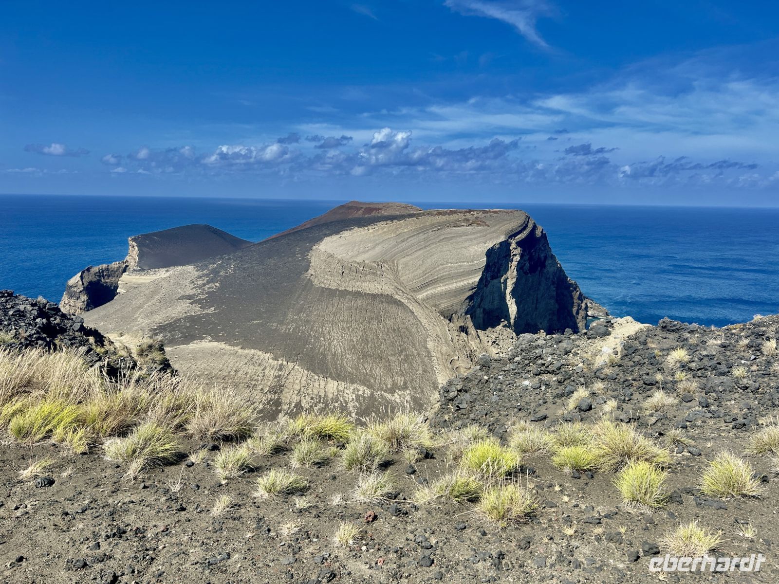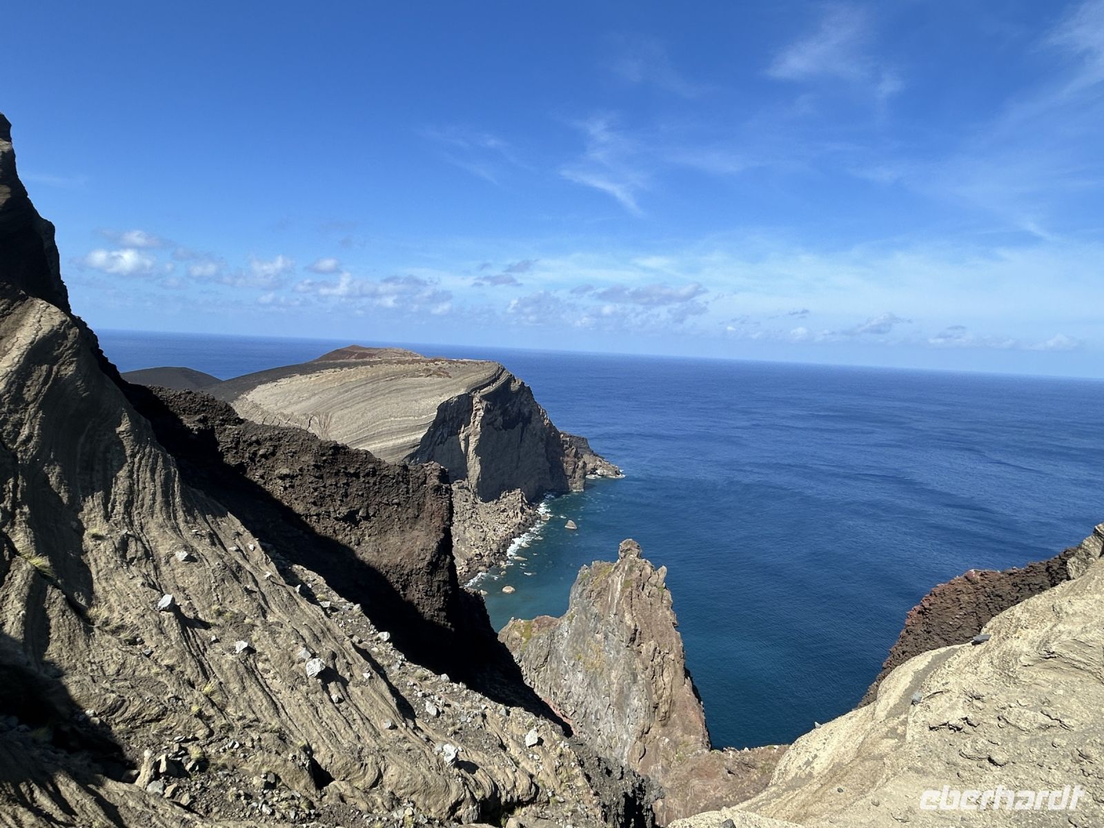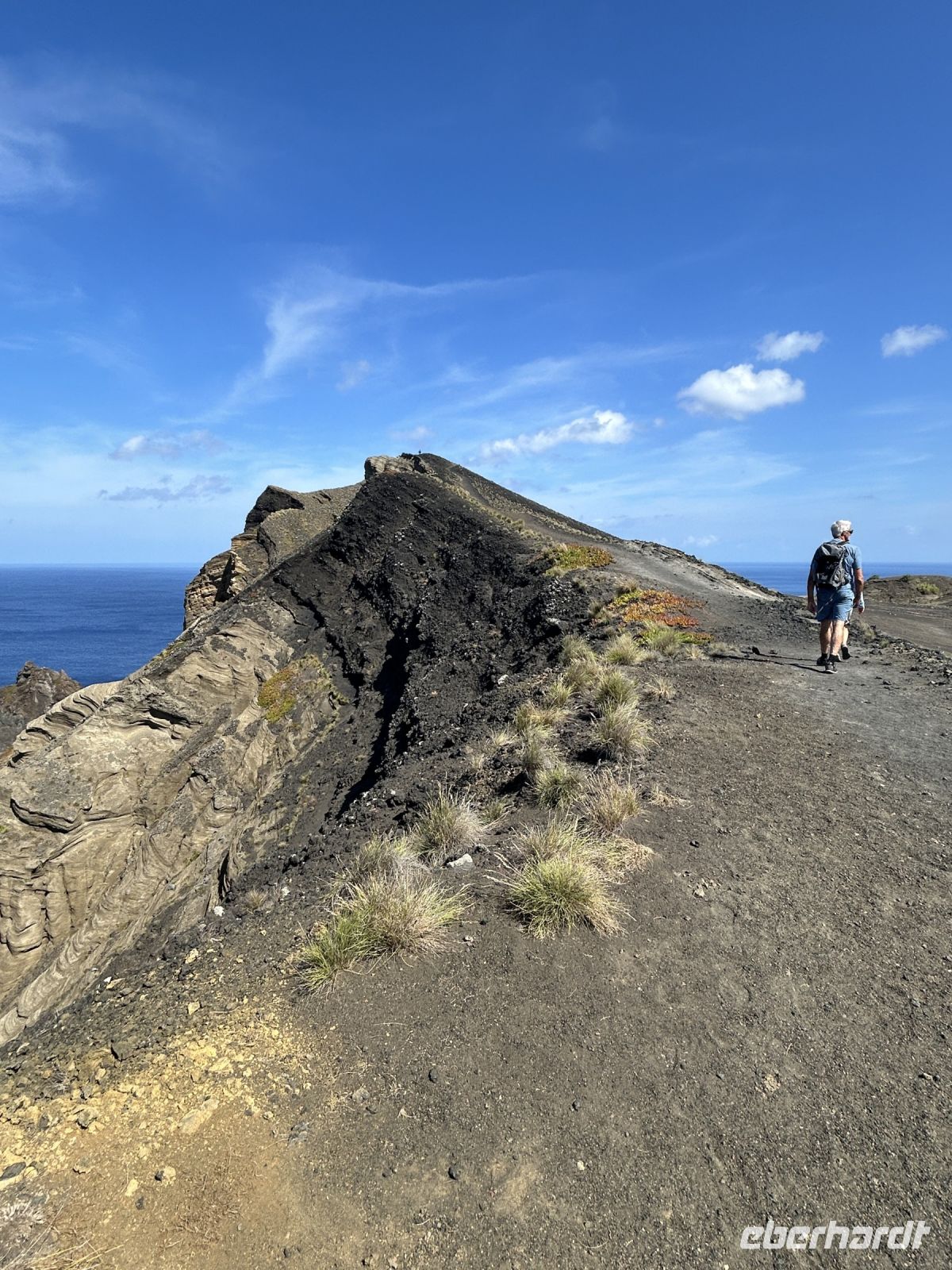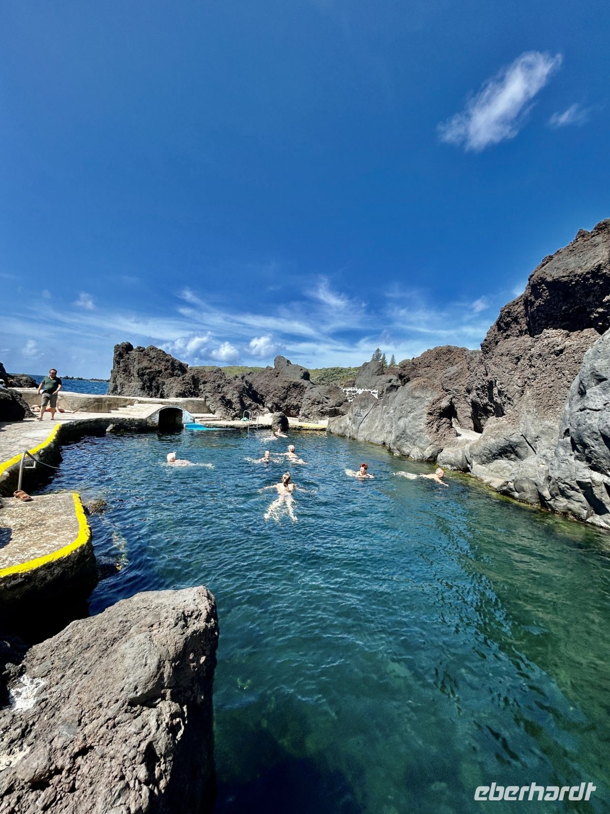 Ganz unerwartet folgt ein besonderer Höhepunkt der Reise: wir unternehmen spontan eine kleine Wanderung im Capelinhos Vulkanfeld und laufen durch das dunkle Vulkangeröll bis zu den steilen Klippen. Man spürt fast die Wärme unter den Füßen. Wir sehen den Capelinhos-Vulkan, dessen letzter Ausbruch im Jahr 1957 die Insel stark veränderte und ein Dorf unter sich begrub. Die karge, mondähnliche Landschaft war beeindruckend, die neu entstandene Landzunge ragt ins Meer und zeigt die ungezähmte Kraft der Natur. Man sieht neben dem Leuchtturm die Reste eines verschütteten Dorfes.?Dort werfen wir auch einen Blick auf den Capelas Badestrand (in den Klippen angelegt) und in ein Haus mit Walfängerboot.?Auf uns wartet dann die Mittagspause und eine Erfrischung bei den Varadoura Piscinas. Wieder genießen einige die Badefreuden und erfüllt geht es wieder ins Hotel zurück. Letzter Stopp noch am Miradouro Feteira mit Blick auf ein Felsentor im Meer.