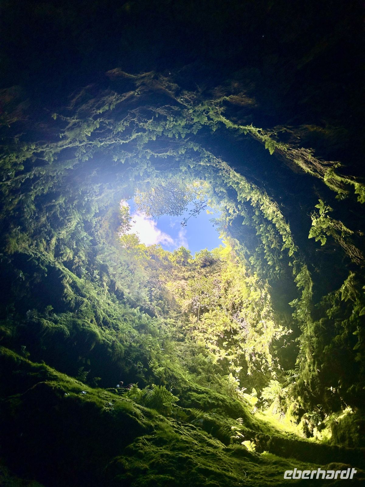 Danach geht die Fahrt weiter zur Vulkanhöhle "Algar do Carvão", deren beeindruckender grün bewachsener Schlund und die Gesteinsformationen uns in Staunen versetzten.