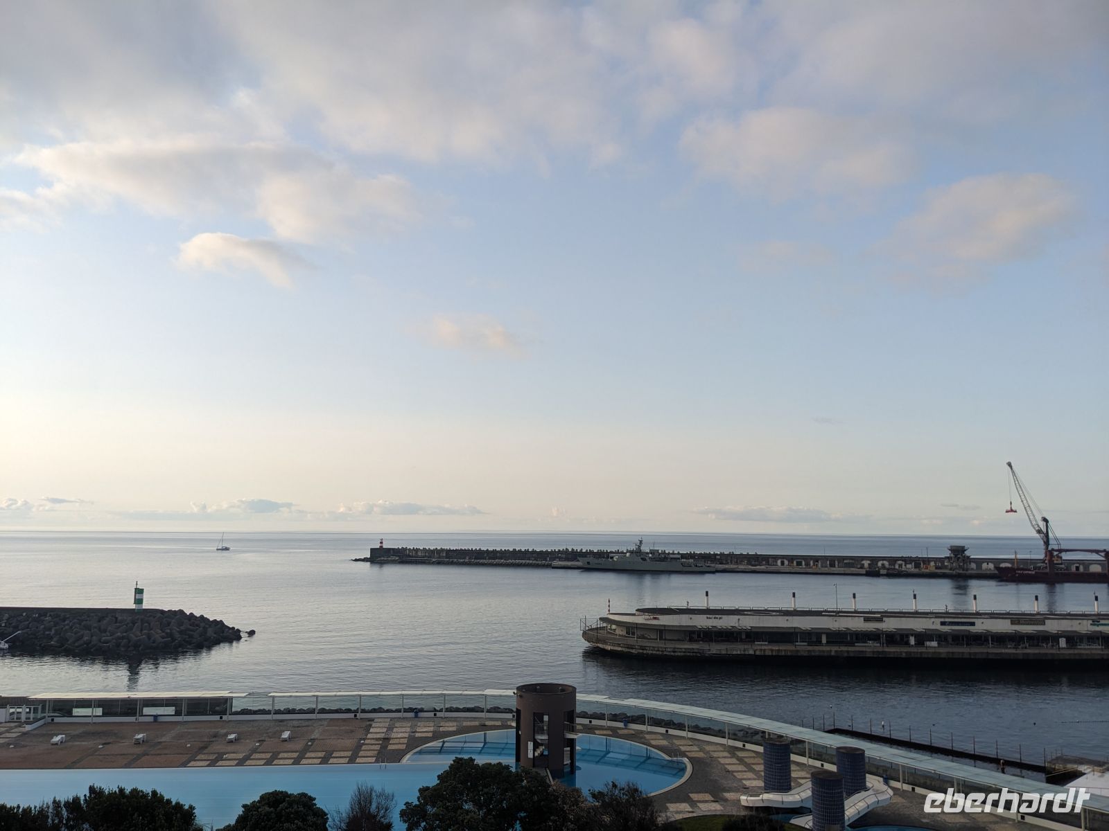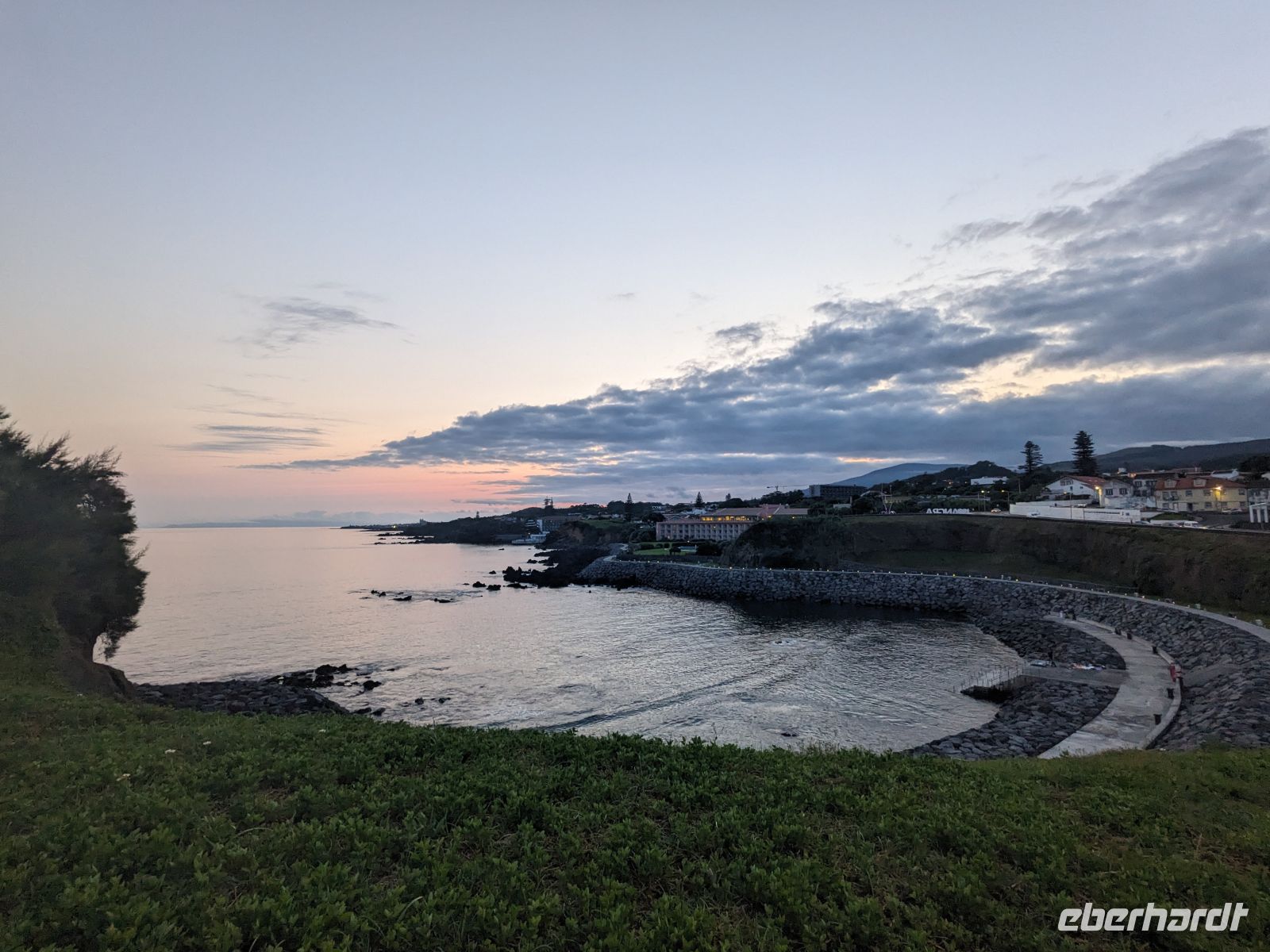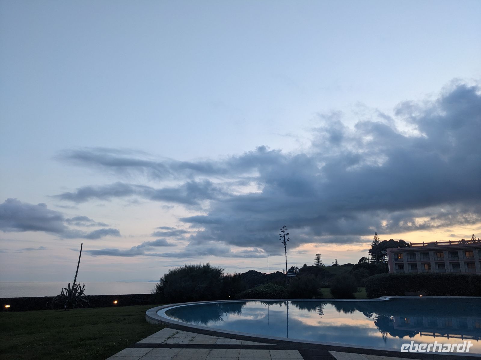 Nach der frühen Anreise und einiger Verspätung aus Berlin erreichten wir erst am späten Nachmittag Ponta Delgada mit milder Atlantikluft und einem ersten Blick aufs weite Meer. Im Hotel Marina Atlântico angekommen, fielen vor allem die zentrale Lage und der Blick auf den Hafen ins Auge. Trotz der Müdigkeit war die Neugier groß: Ein kleiner Spaziergang, erste Blicke auf die Altstadt und ein gemeinsames Abendessen unter freiem Himmel sorgten für einen gelungenen Einstieg. Das Restaurant lag direkt am Wasser, die Sonne versank langsam hinter den Dächern der Stadt, während gute Gespräche den Tag ausklingen ließen. Wer wollte, erkundete danach noch die abendlich beleuchtete Innenstadt, die sich stimmungsvoll und ruhig zeigte.