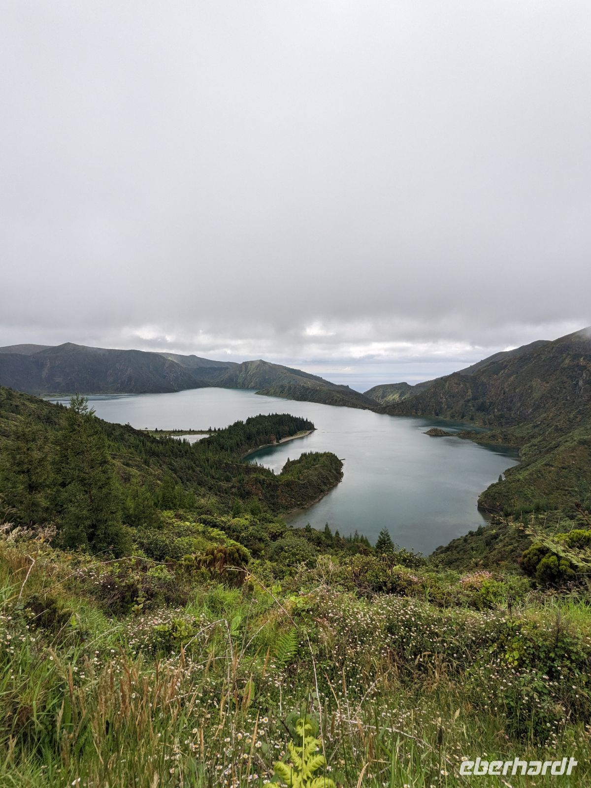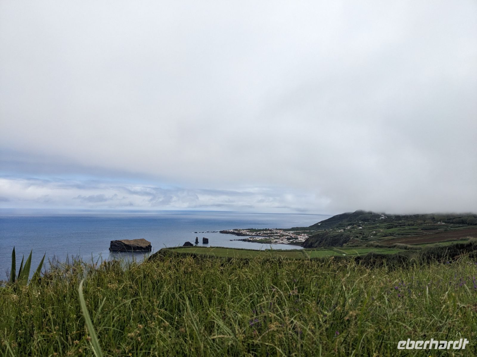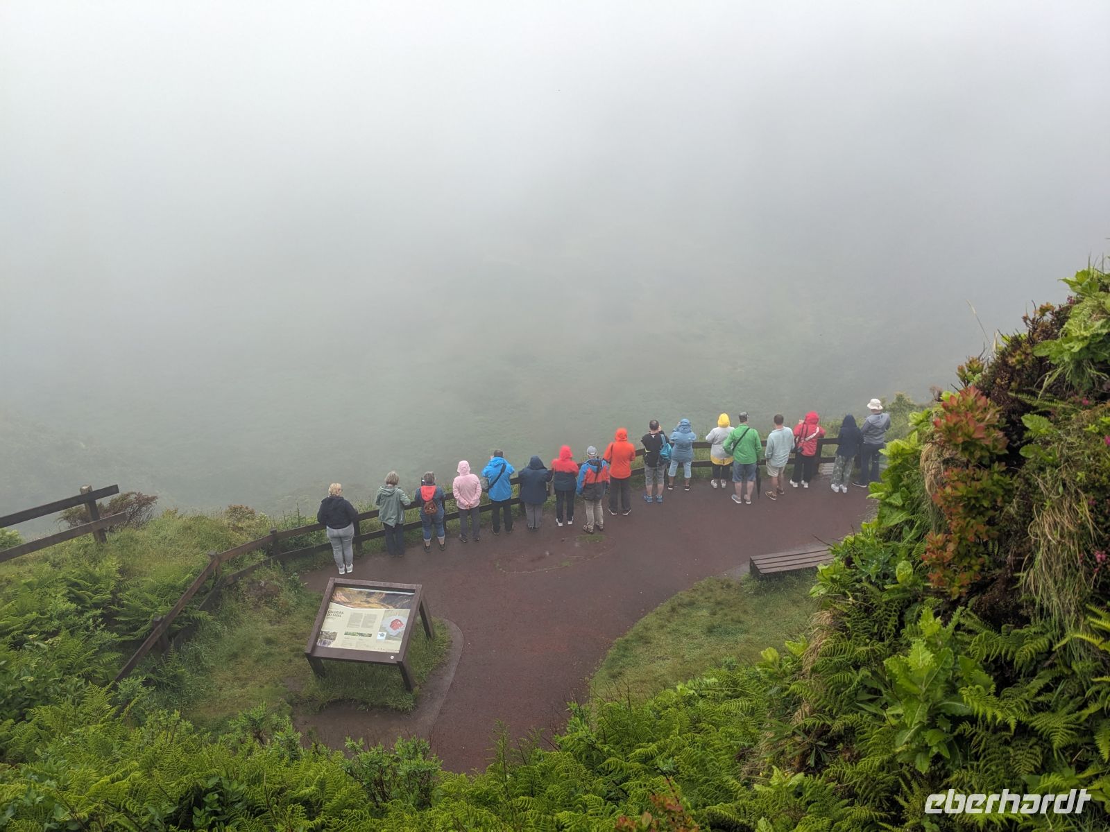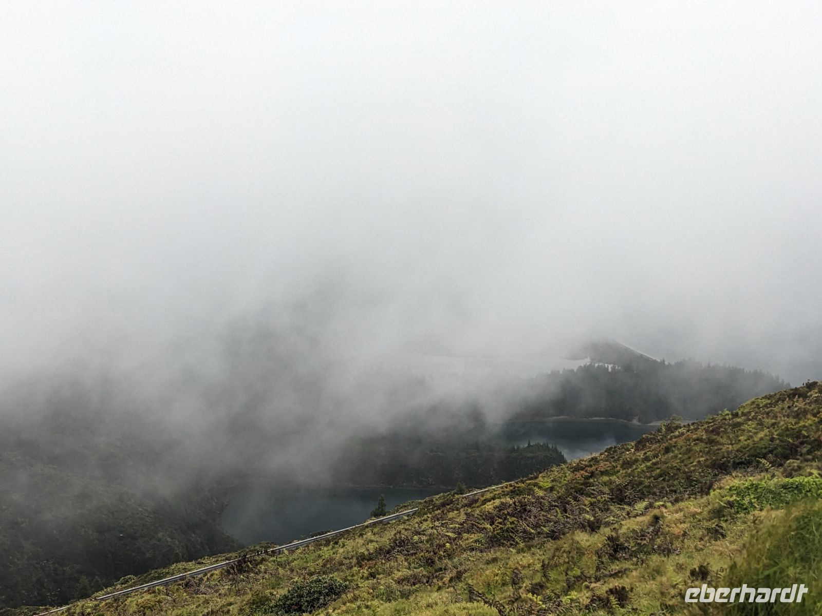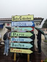 Weiter ging es in Richtung Westen, zu den berühmten Kraterseen von Sete Cidades. Doch heute hatte sich der Nebel tief über das Tal gelegt – der Blick blieb uns verwehrt. Wir machten mehrere Stopps an Aussichtspunkten, wo sich die Konturen der Landschaft nur schemenhaft zeigten. In Sete Cidades selbst regnete es kräftig, doch wir wagten trotzdem einen Gang zur kleinen Kirche oder ans Seeufer.