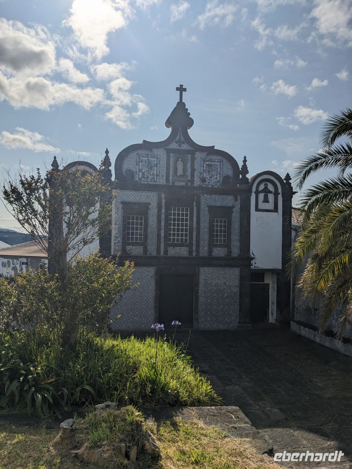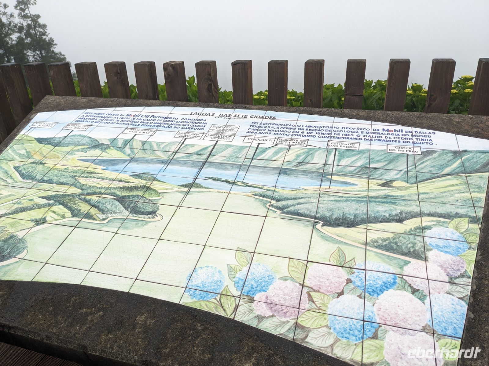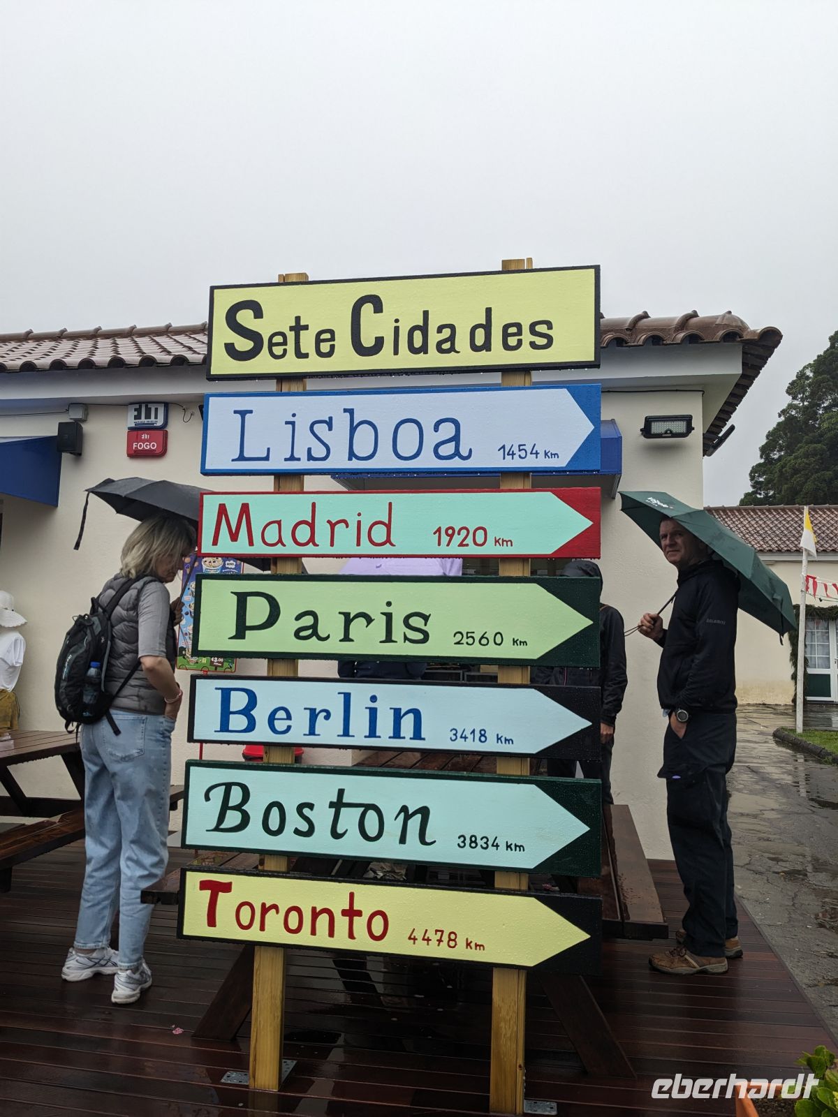 Weiter ging es in Richtung Westen, zu den berühmten Kraterseen von Sete Cidades. Doch heute hatte sich der Nebel tief über das Tal gelegt – der Blick blieb uns verwehrt. Wir machten mehrere Stopps an Aussichtspunkten, wo sich die Konturen der Landschaft nur schemenhaft zeigten. In Sete Cidades selbst regnete es kräftig, doch wir wagten trotzdem einen Gang zur kleinen Kirche oder ans Seeufer.
