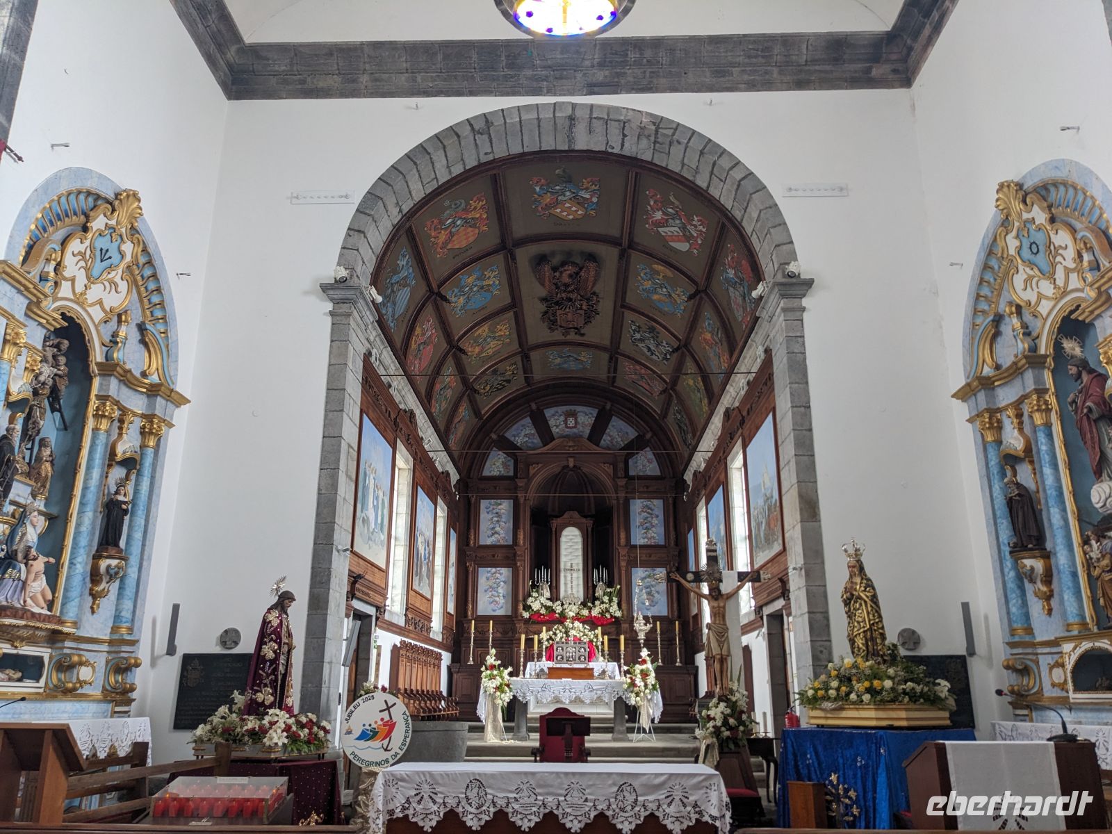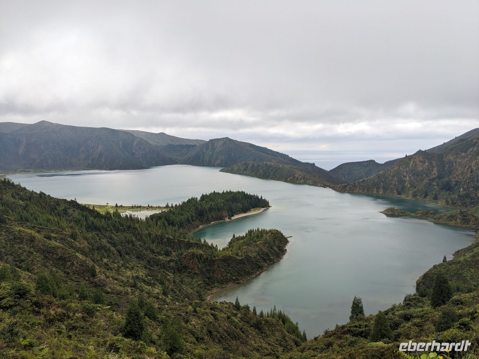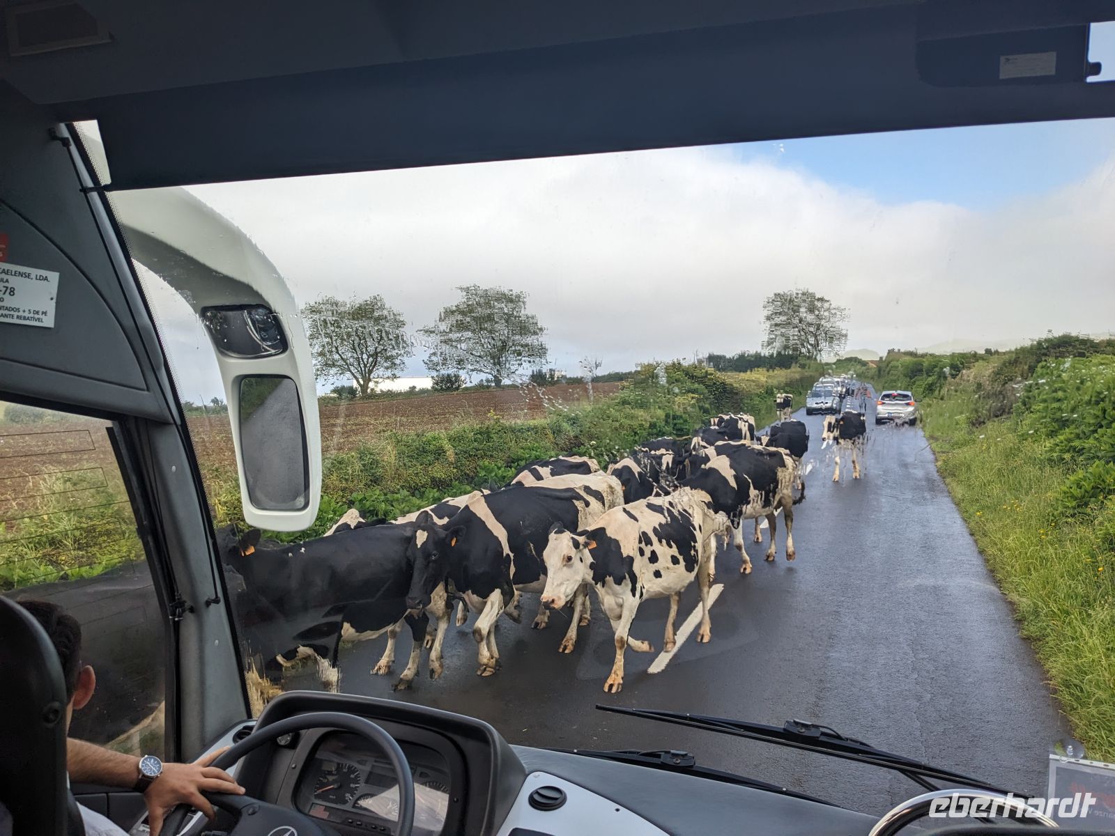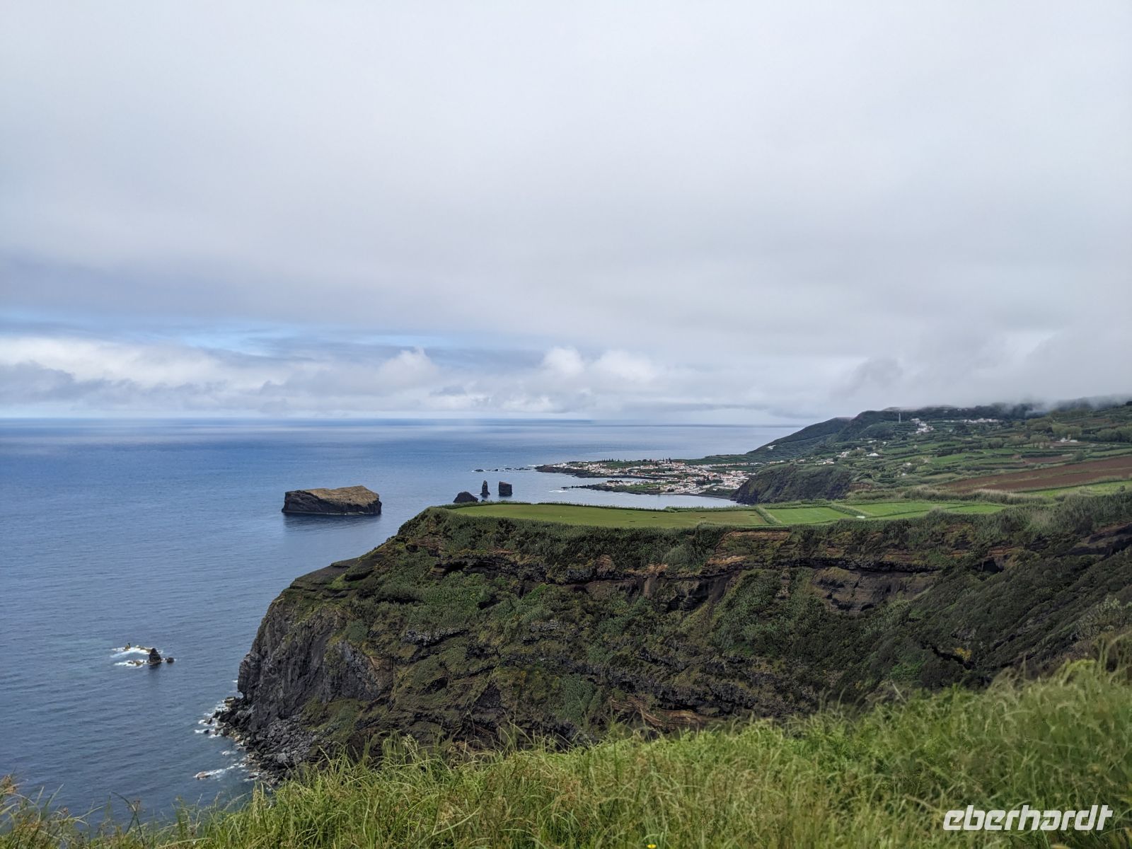 Weiter ging es in Richtung Westen, zu den berühmten Kraterseen von Sete Cidades. Doch heute hatte sich der Nebel tief über das Tal gelegt – der Blick blieb uns verwehrt. Wir machten mehrere Stopps an Aussichtspunkten, wo sich die Konturen der Landschaft nur schemenhaft zeigten. In Sete Cidades selbst regnete es kräftig, doch wir wagten trotzdem einen Gang zur kleinen Kirche oder ans Seeufer.
