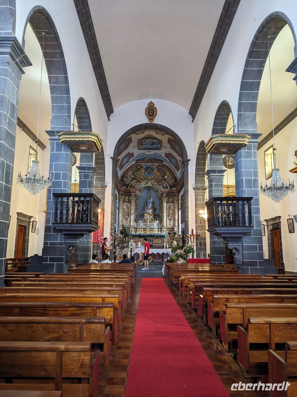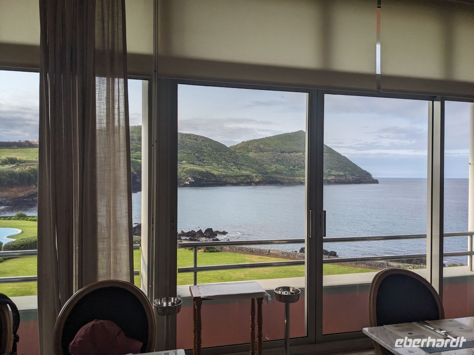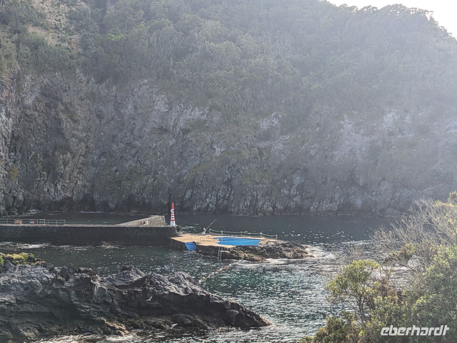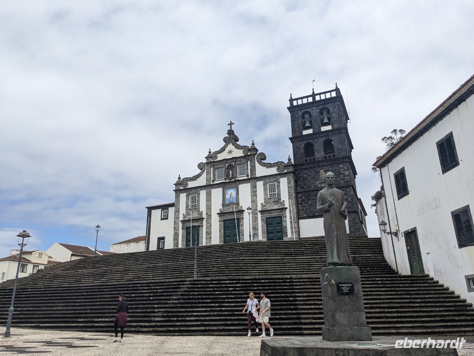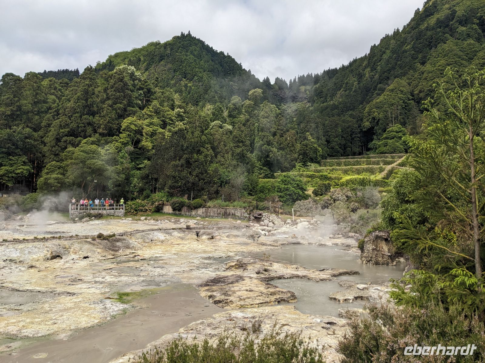 Der Tag begann mit der Auffahrt zum Lagoa do Fogo, der sich jedoch hinter einer dichten Nebeldecke versteckte. Dafür war die Stimmung fast mystisch, als wir versuchten durch düsteren Wald und Nebel einen Blick zu erhaschen. Nachdem die Keramikfabrik aufgrund des Feiertags geschlossen hatte, besuchten wir alternativ den Naturparks Caldeira Velha mit seinen dampfenden Becken mitten im Dschungelgrün. Im Städtchen Ribeira Grande entdeckten wir dann ein anderes Gesicht der Insel: eindrucksvolle Kirchen, gepflasterte Straßen, koloniale Architektur. Nach einer Mittagspause erkundeten wir die Innenstadt zu Fuß und genossen den Blick vom Kirchplatz auf das Meer. Zum Abschluss des Tages ließen wir am schwarzen Sandstrand von Santa Bárbara die Seele baumeln.