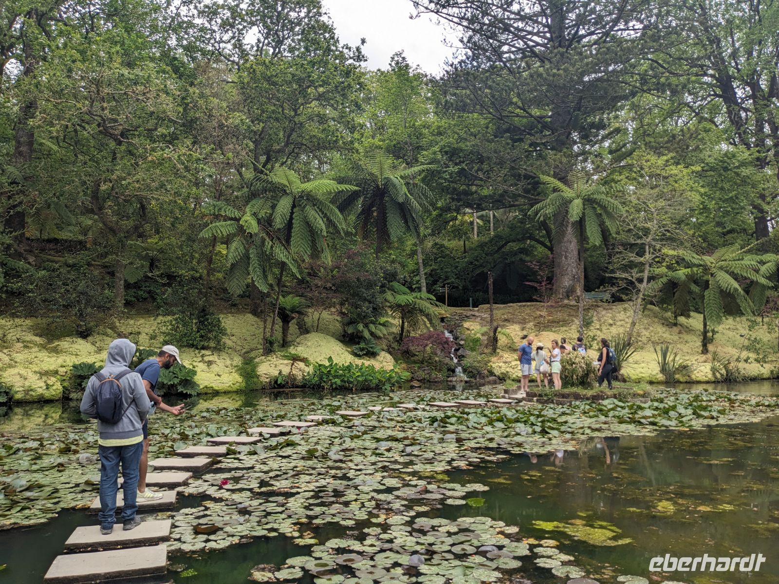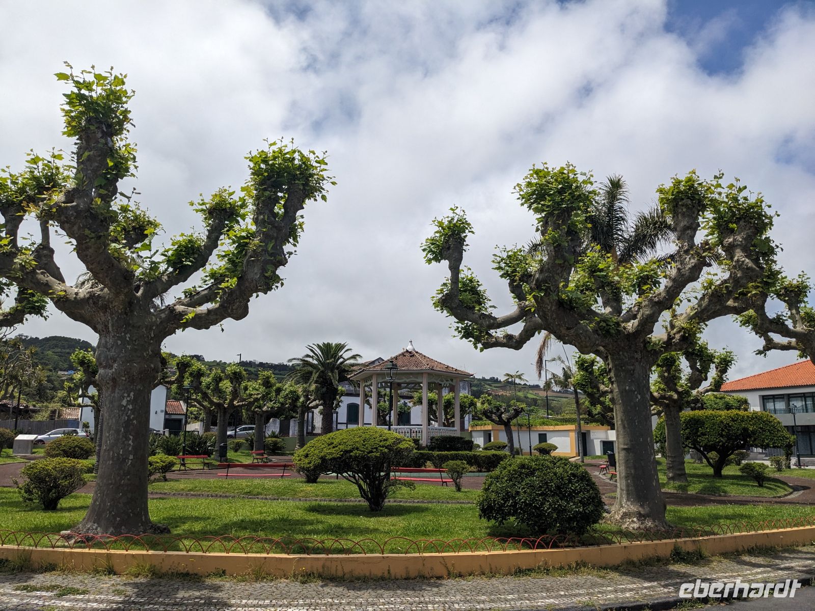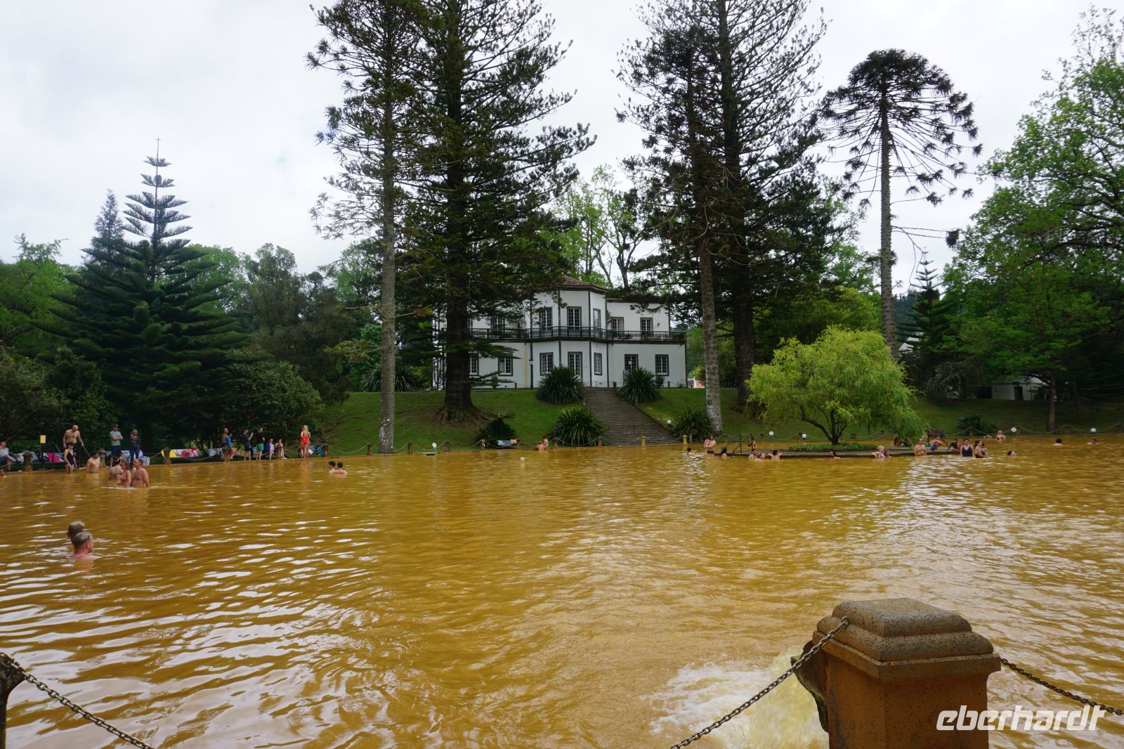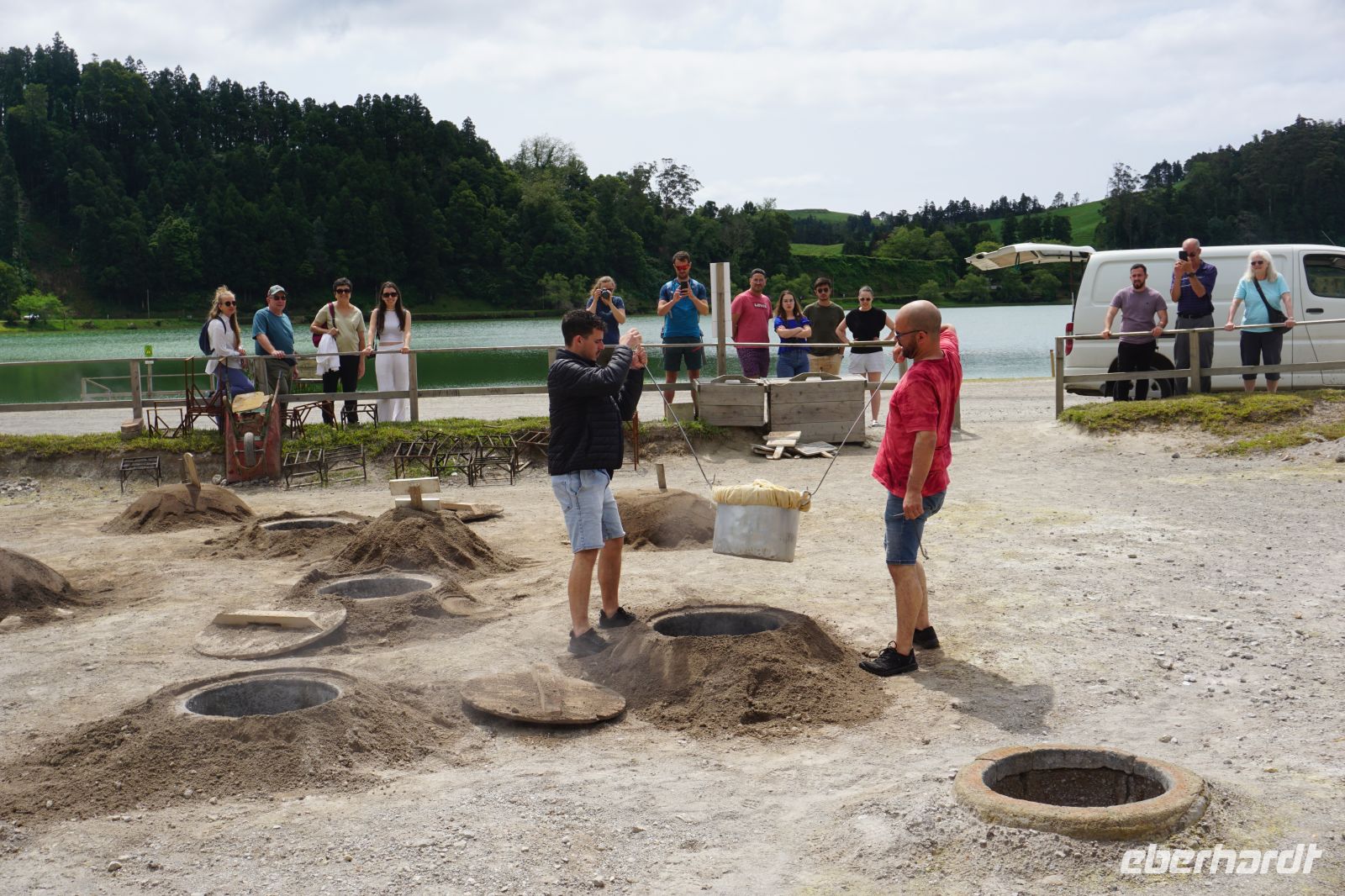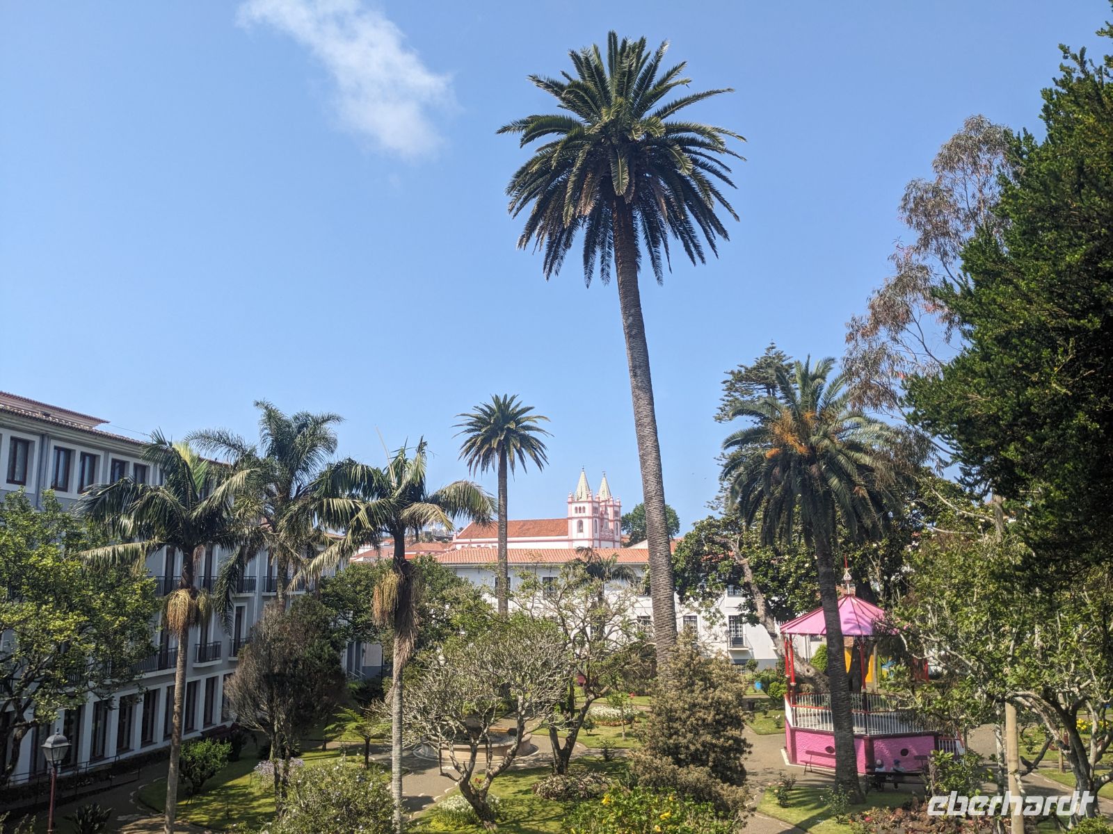 Der Tag begann mit der Auffahrt zum Lagoa do Fogo, der sich jedoch hinter einer dichten Nebeldecke versteckte. Dafür war die Stimmung fast mystisch, als wir versuchten durch düsteren Wald und Nebel einen Blick zu erhaschen. Nachdem die Keramikfabrik aufgrund des Feiertags geschlossen hatte, besuchten wir alternativ den Naturparks Caldeira Velha mit seinen dampfenden Becken mitten im Dschungelgrün. Im Städtchen Ribeira Grande entdeckten wir dann ein anderes Gesicht der Insel: eindrucksvolle Kirchen, gepflasterte Straßen, koloniale Architektur. Nach einer Mittagspause erkundeten wir die Innenstadt zu Fuß und genossen den Blick vom Kirchplatz auf das Meer. Zum Abschluss des Tages ließen wir am schwarzen Sandstrand von Santa Bárbara die Seele baumeln.