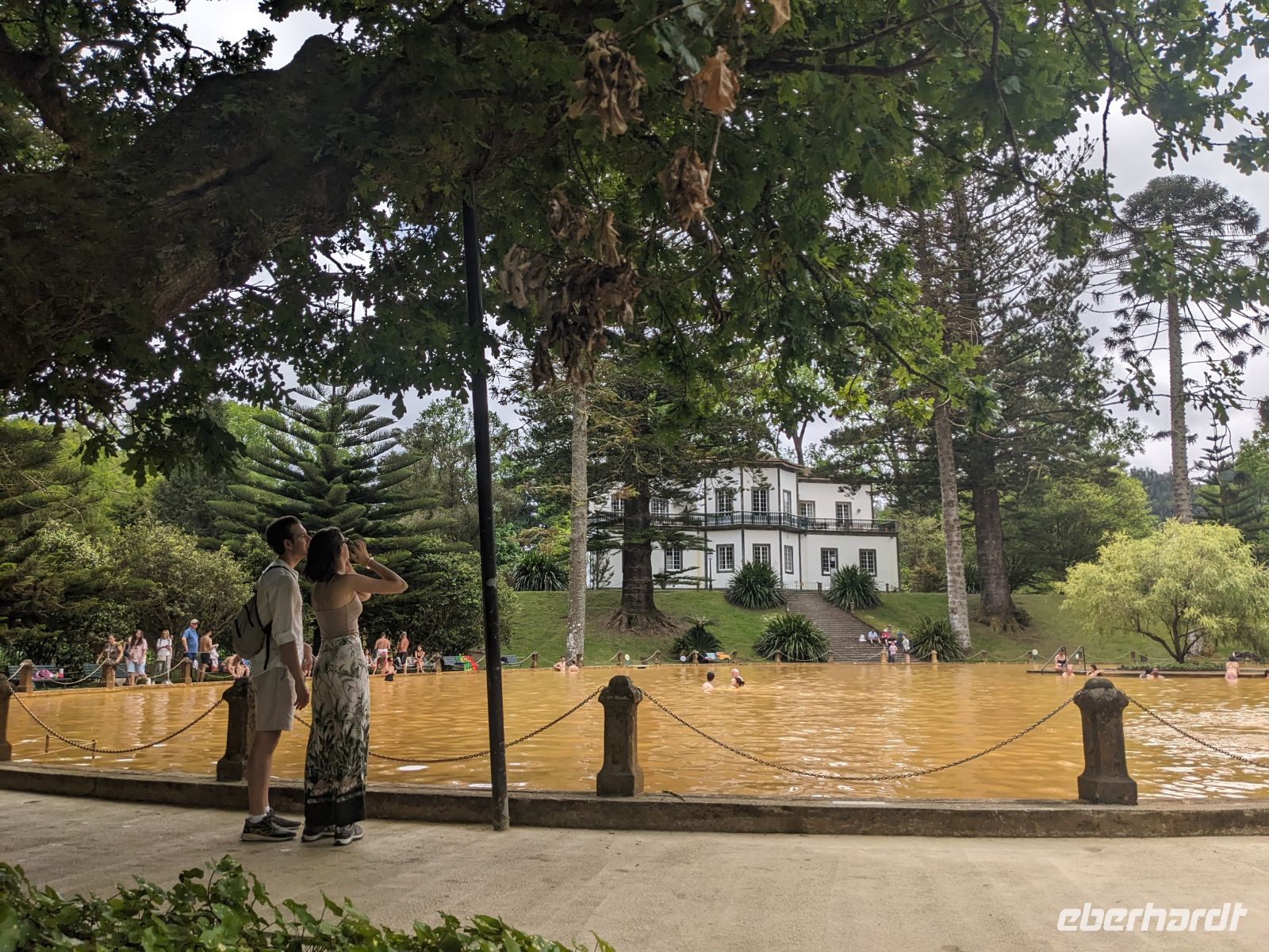 Heute ging es hinaus aufs Land, entlang der südlichen Küstenstraße Richtung Caloura. Das kleine Fischerdorf wirkte wie aus der Zeit gefallen: stille Gassen, ein alter Anleger und das Rauschen des Meeres begleiteten unseren Spaziergang. In Vila Franca do Campo, einem traditionsreichen Hafenort, schlenderten wir über die Promenade und genossen die Ruhe des Sonntags. Am Lagoa das Furnas sahen wir, wie Dampf aus der Erde aufstieg und wie unser Mittagessen in heißer Vulkanerde gegart wurde. Später statteten wir dem Terra Nostra Park einen Besuch ab: zwischen uralten Bäumen und blühenden Wegen luden das eisenhaltige Thermalbecken und die verwunschenen Gartenpfade zur Erholung ein. Der Tag endete mit einem Exkurs in die Teeherstellung der Insel sowie einer kleinen Verkostung.